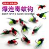 Rojo y Verde Alas Pequeñas Set de Anzuelos para Mosca Mosquito Venenoso Micro Señuelo Cebo Anzuelo Boca de Caballo Tira de Comida Tira Blanca Cebo Falso Biónico