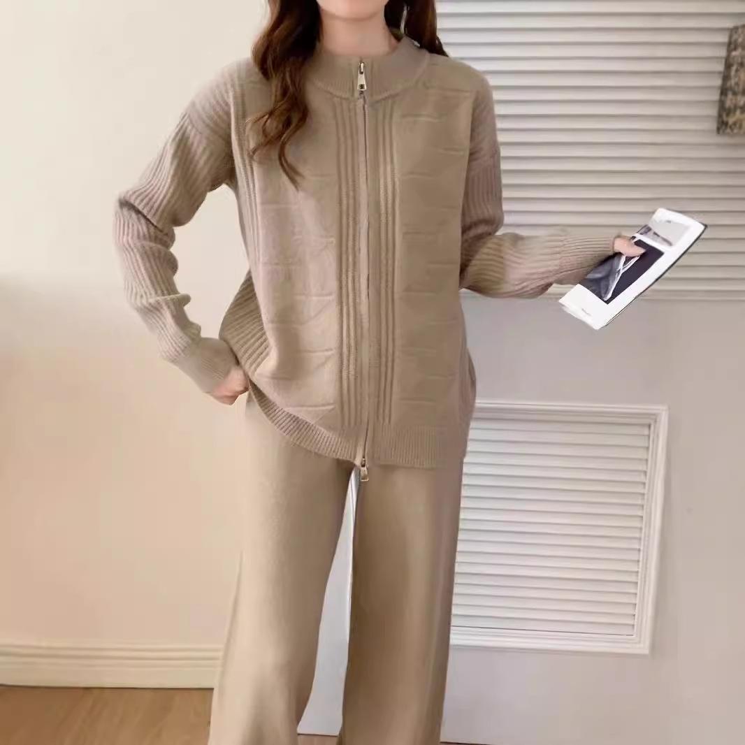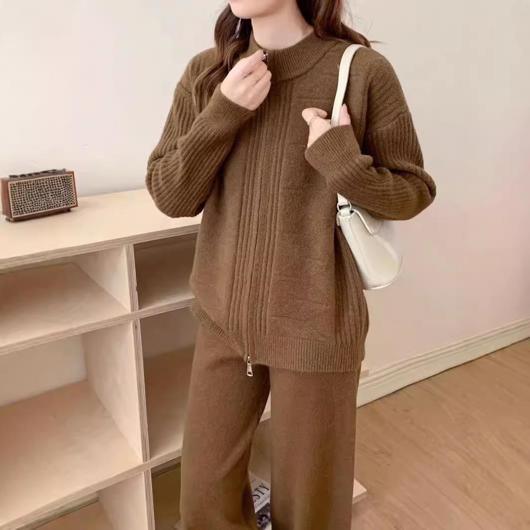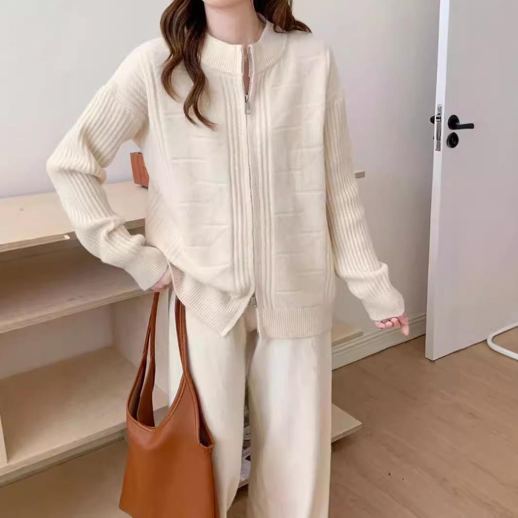 Suéter elegante con doble cremallera para mujer, conjunto de dos piezas sencillo, estilo coreano holgado y perezoso, otoño e invierno 2024