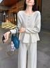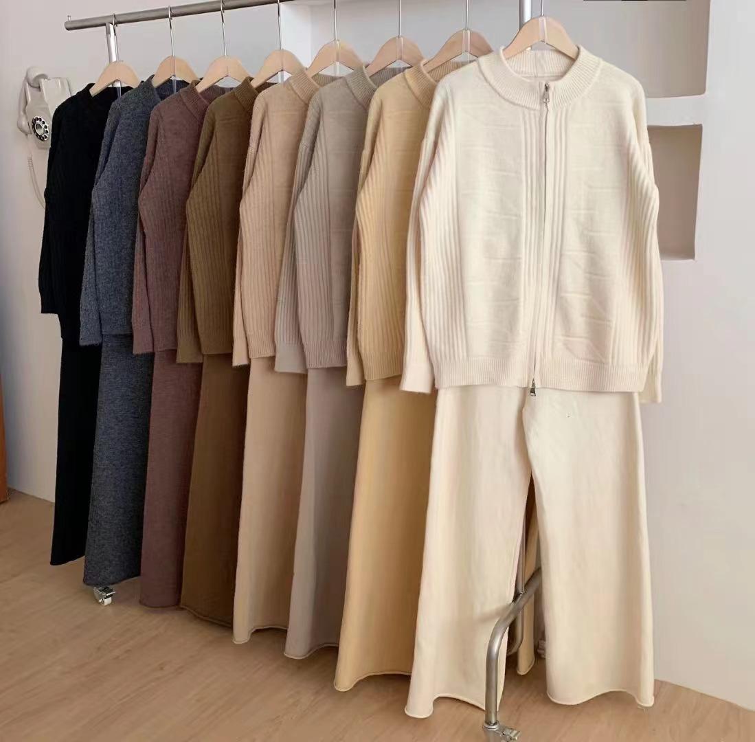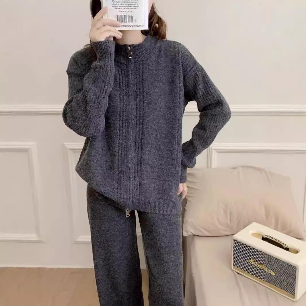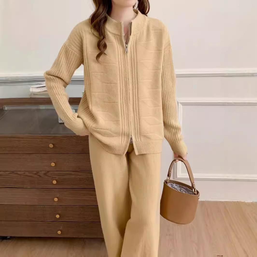 Suéter elegante con doble cremallera para mujer, conjunto de dos piezas sencillo, estilo coreano holgado y perezoso, otoño e invierno 2024