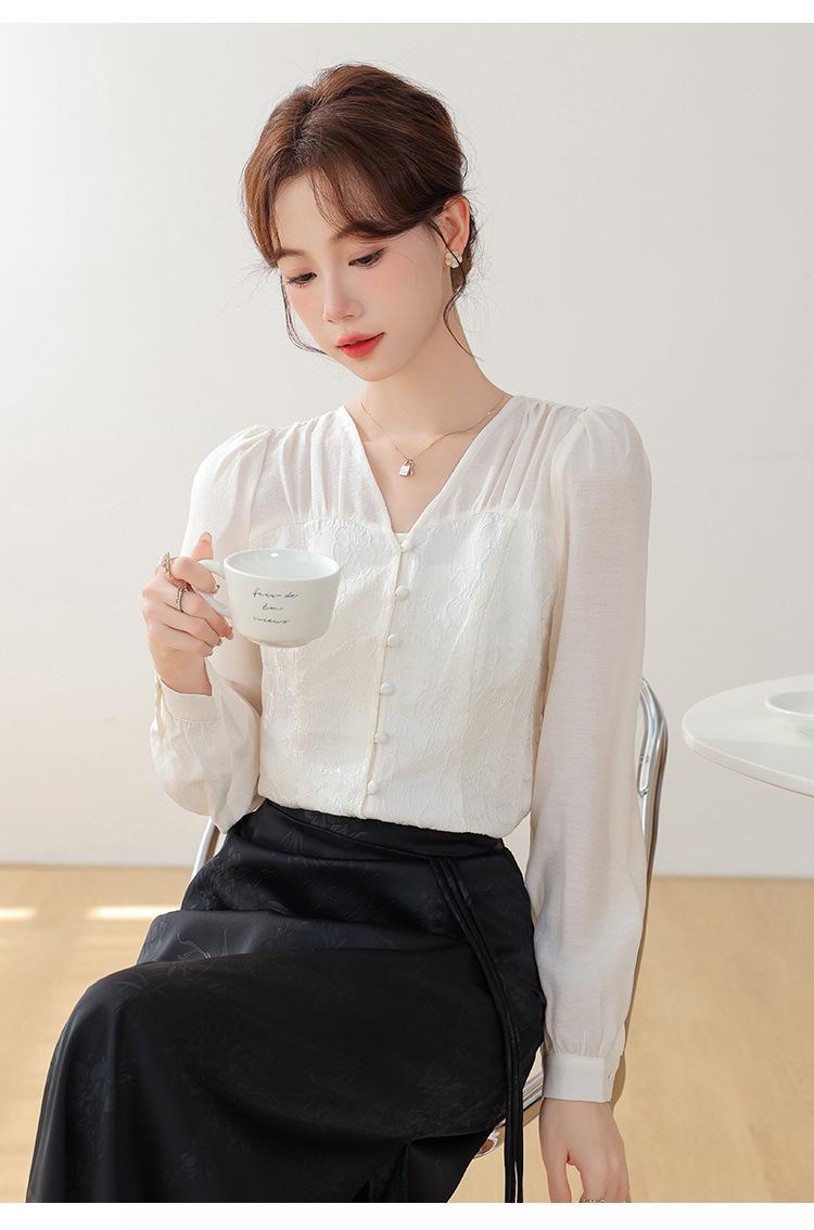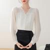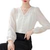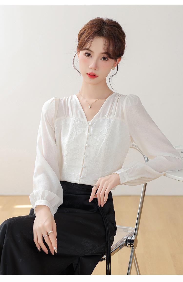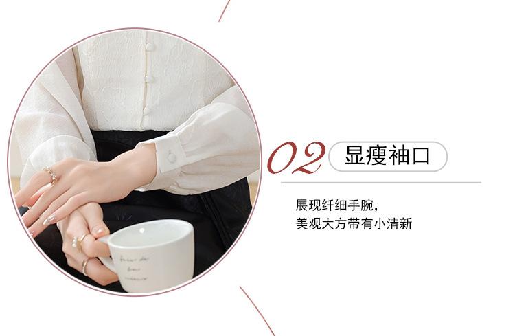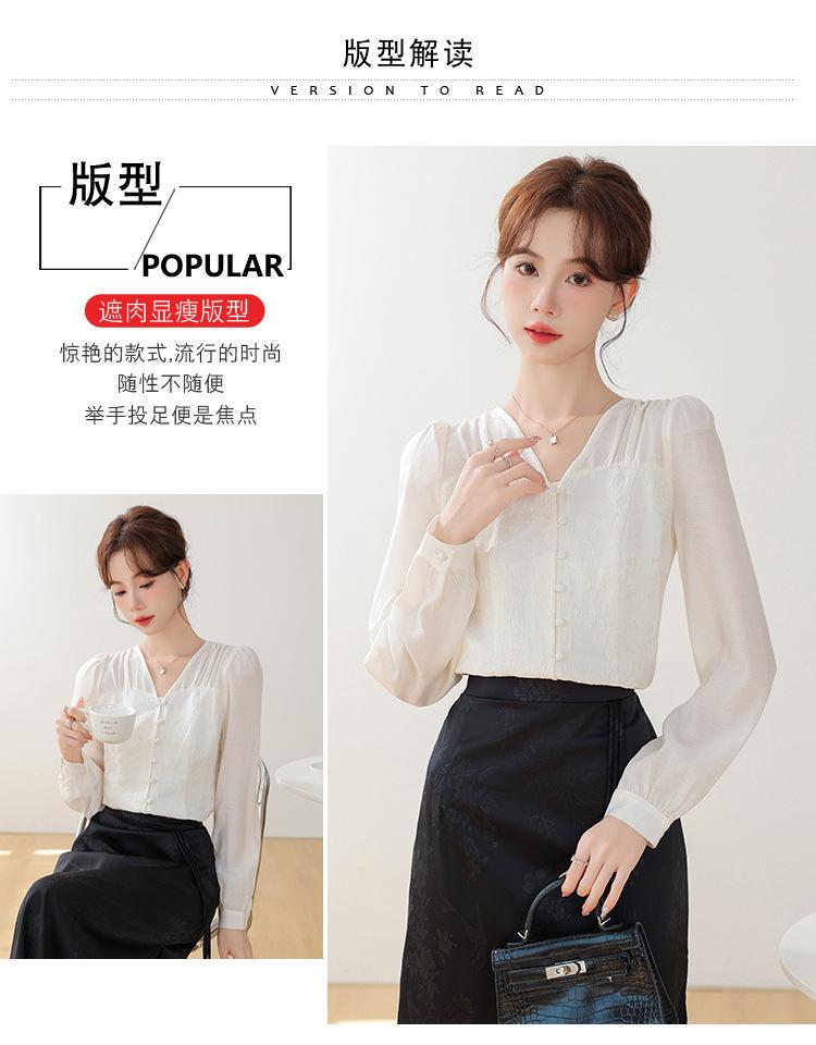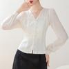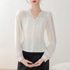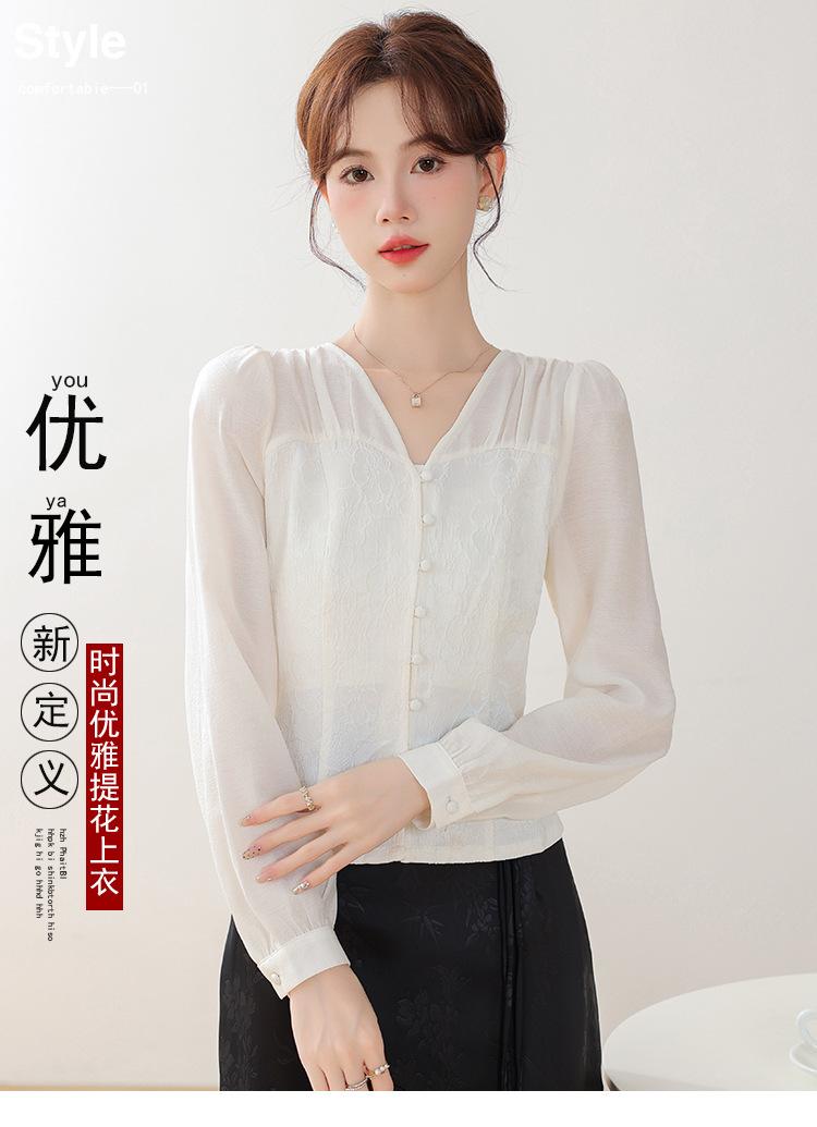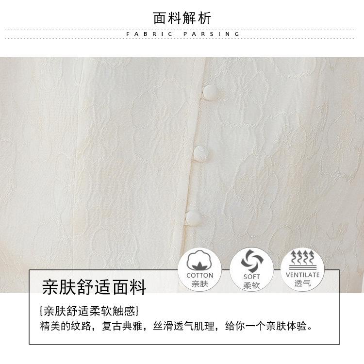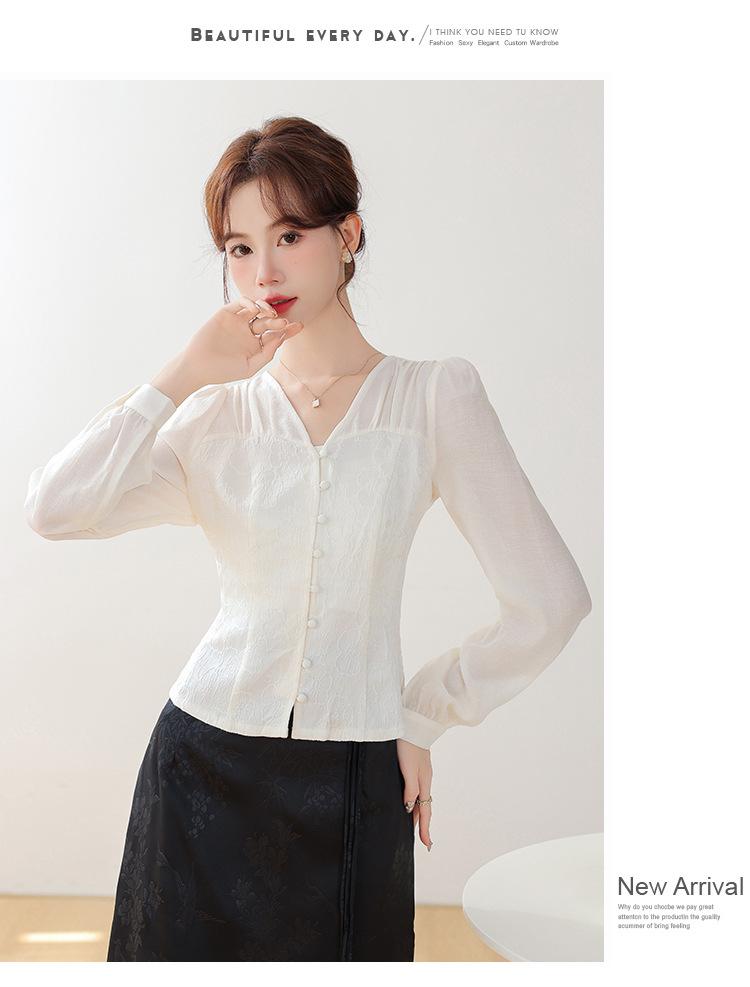 Camisa de gasa jacquard china con relieve para mujer, nueva, transpirable, blanca, para principios de otoño 2024