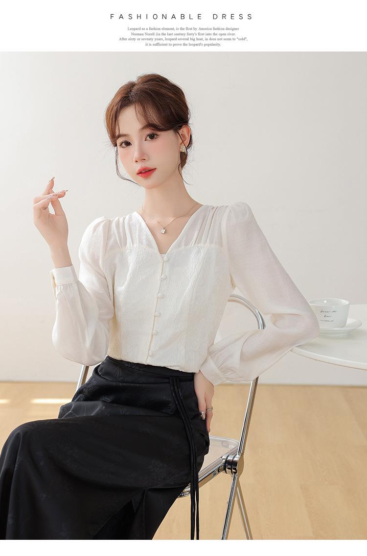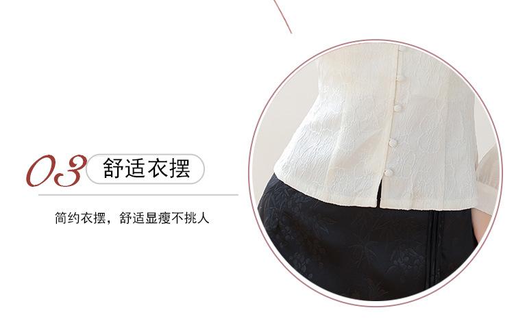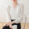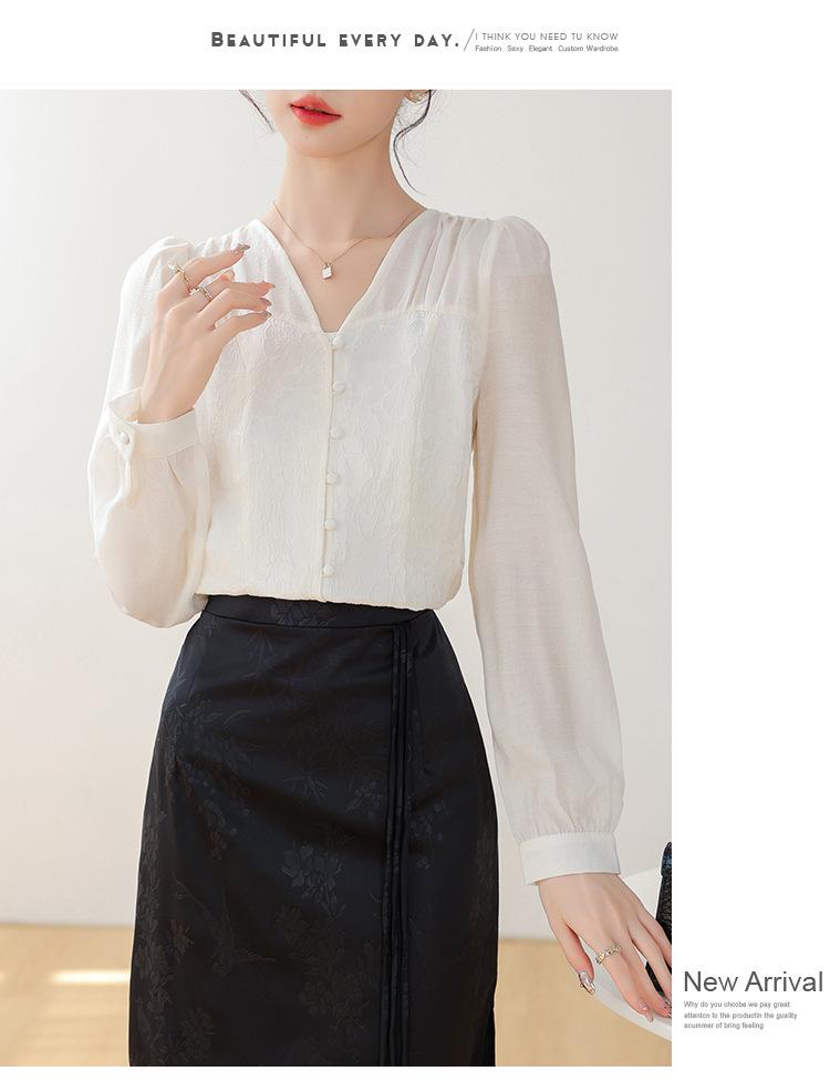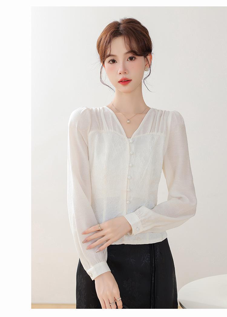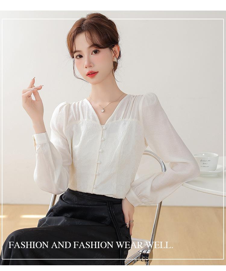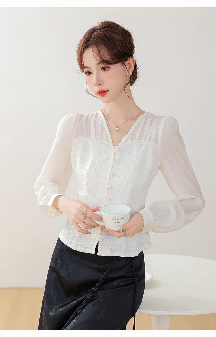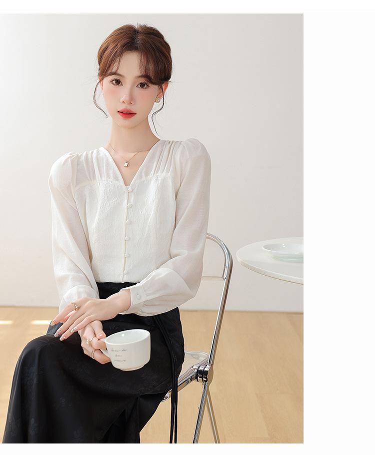 Camisa de gasa jacquard china con relieve para mujer, nueva, transpirable, blanca, para principios de otoño 2024