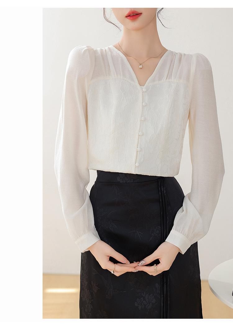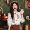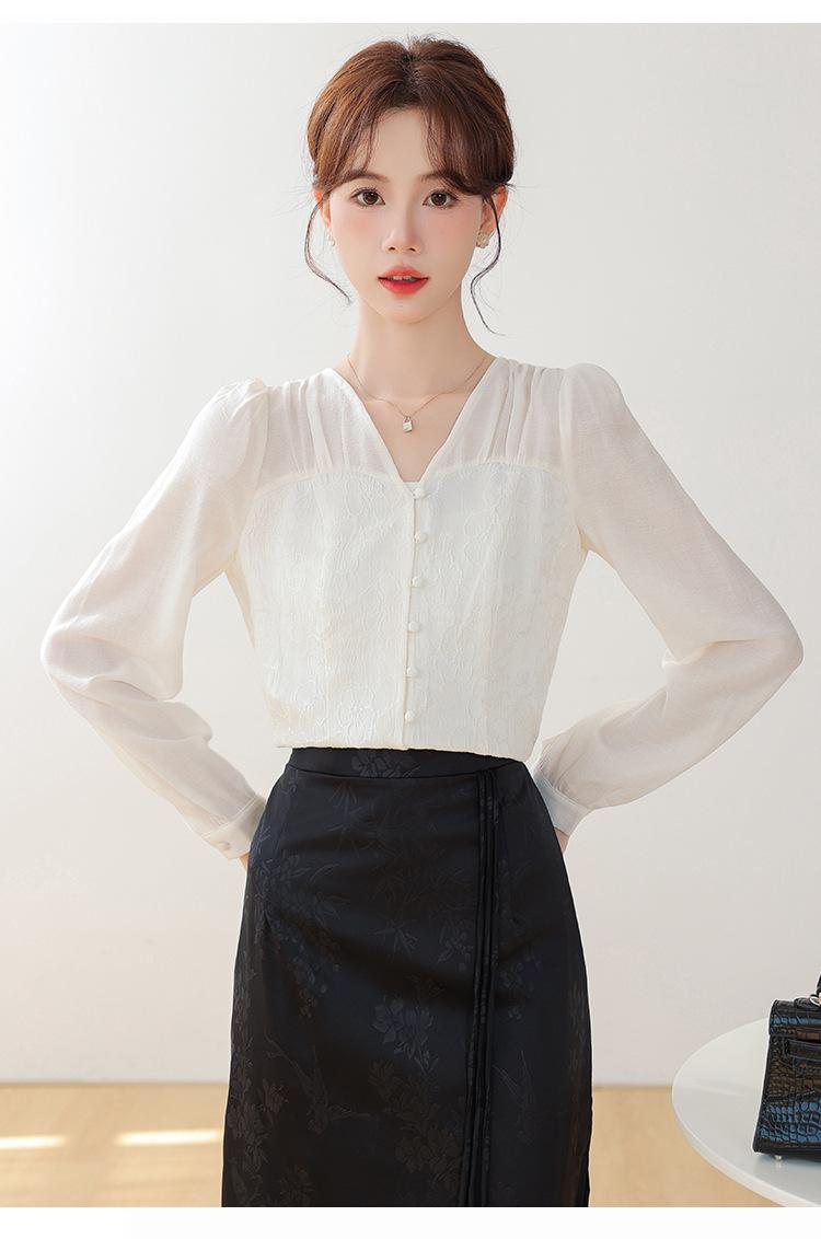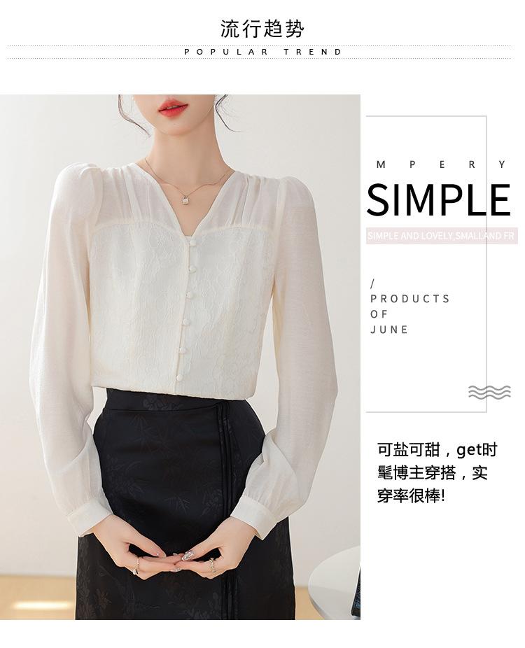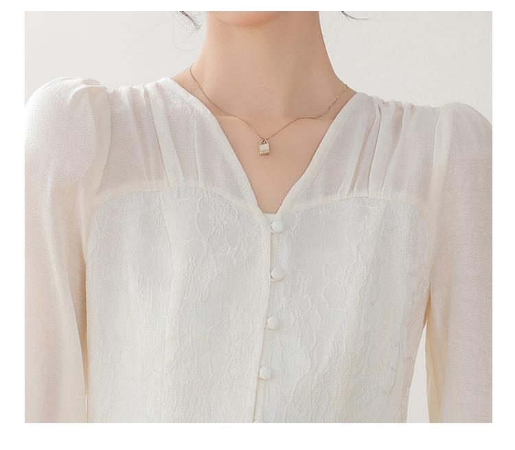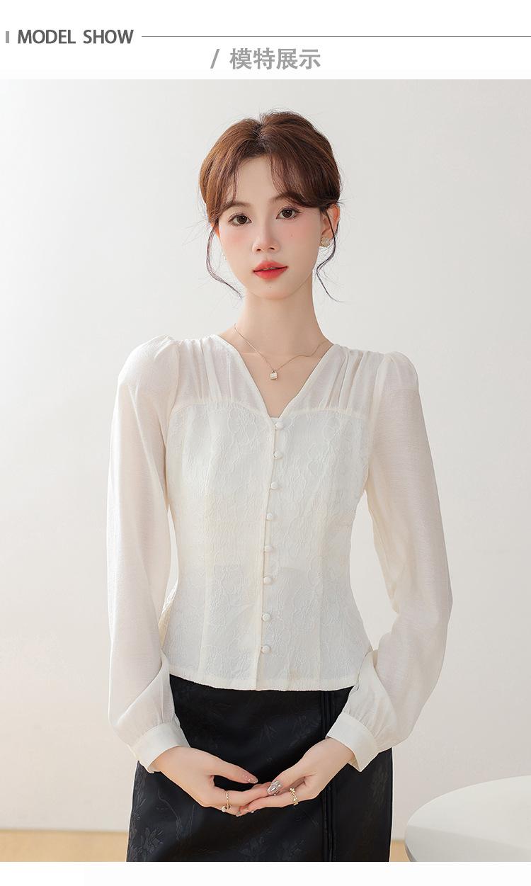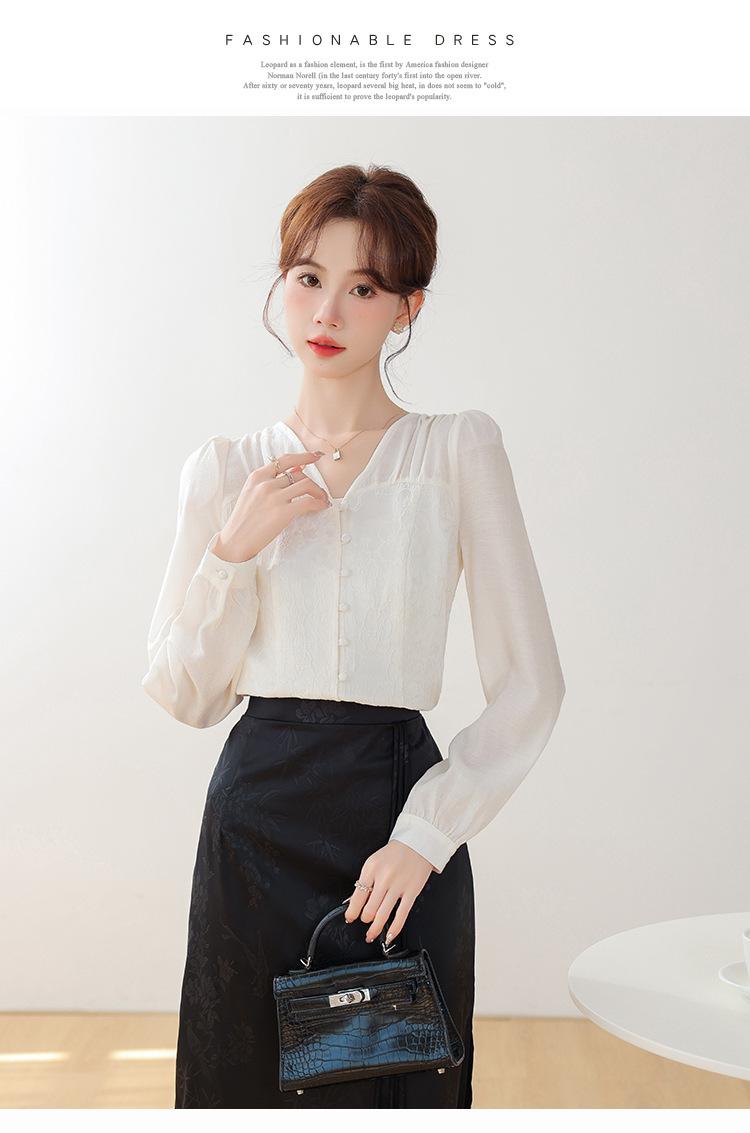 Camisa de gasa jacquard china con relieve para mujer, nueva, transpirable, blanca, para principios de otoño 2024