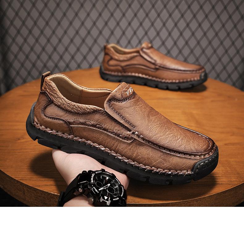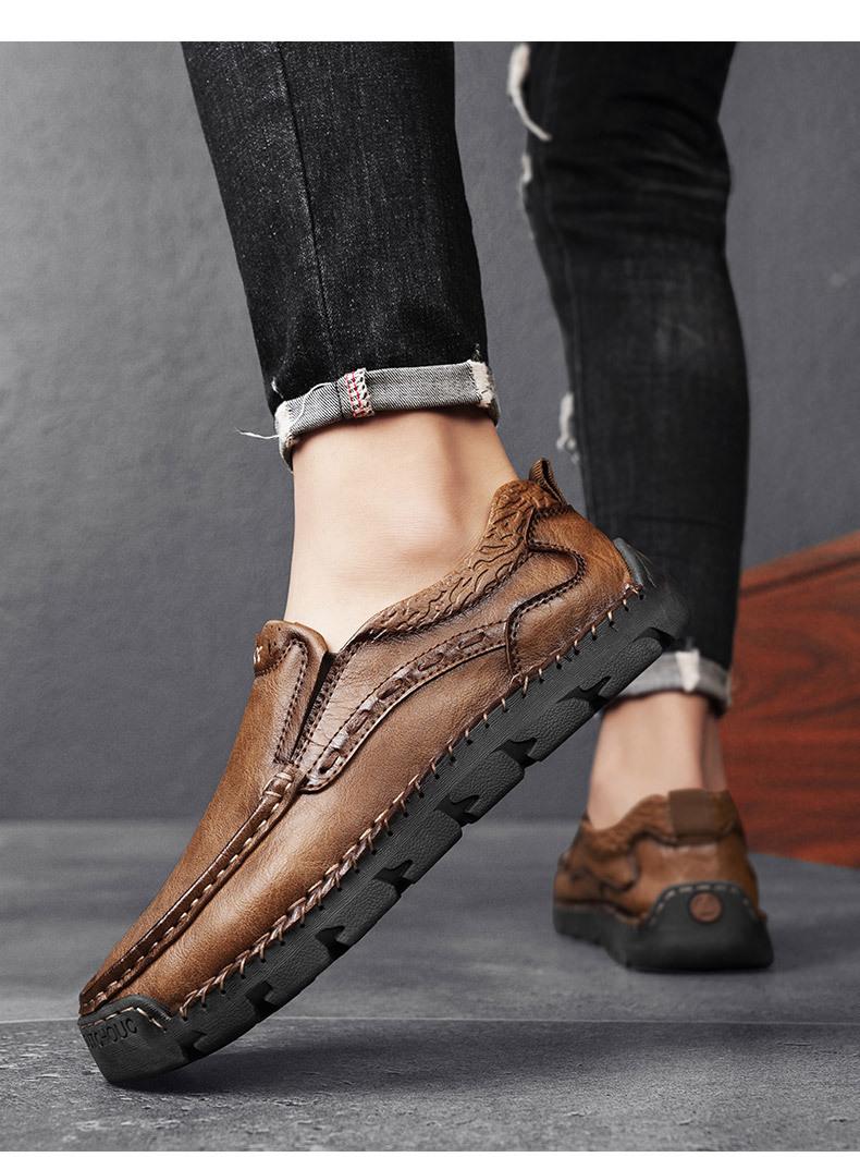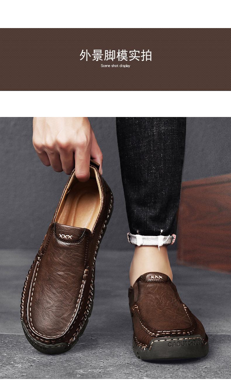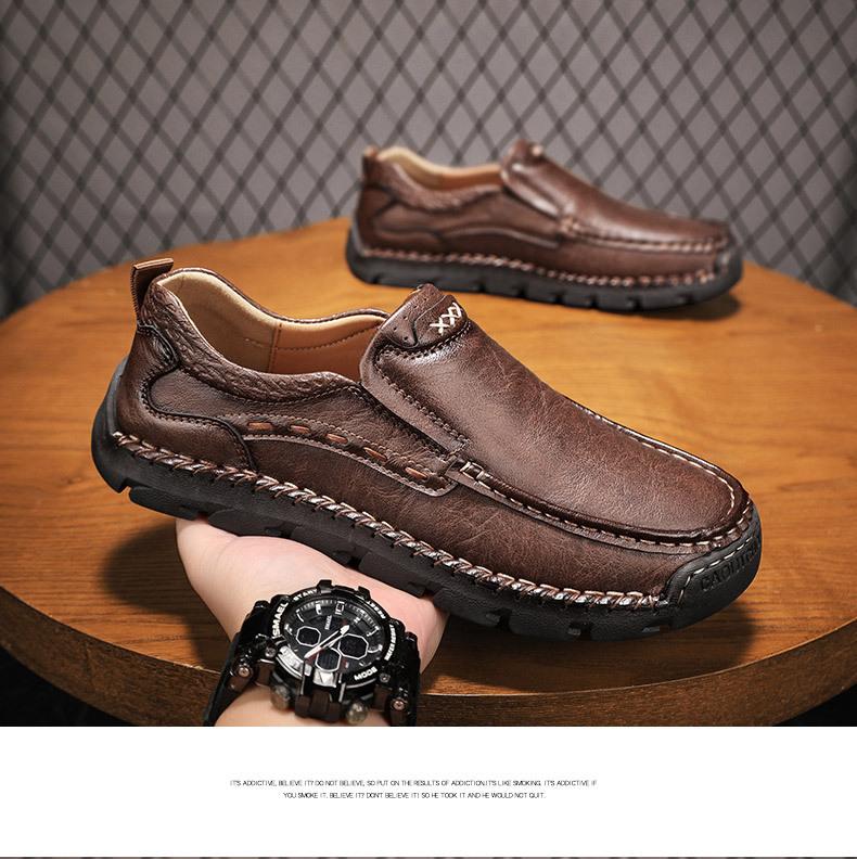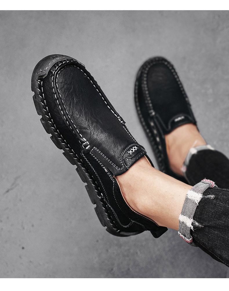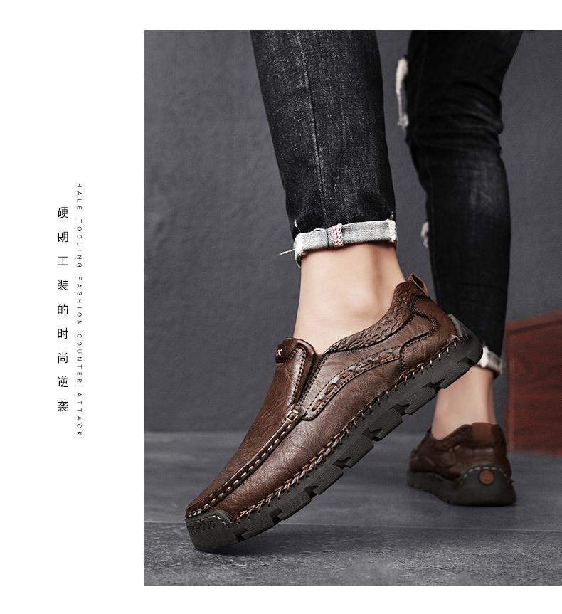 Zapatos de Hombre Casuales de Talla Grande para las Cuatro Estaciones, Hechos a Mano, para Exterior, Casuales de Cuero, Tipo Slip-On para Conducir