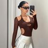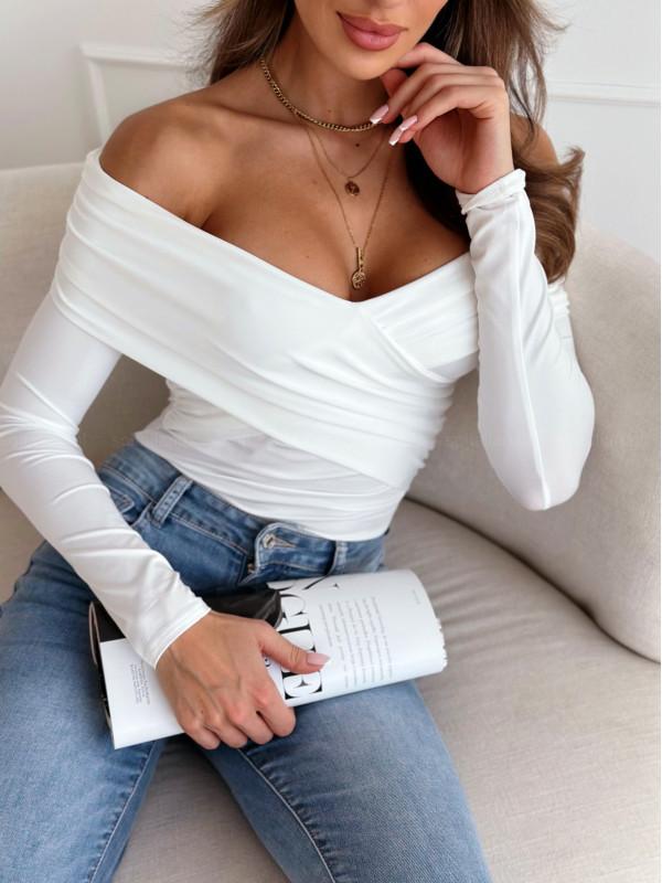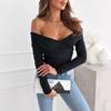 Comercio exterior transfronterizo Ropa de mujer europea y americana Amazon AliExpress 2024 otoño e invierno moda sexy chaqueta de camiseta de manga larga con hombros descubiertos