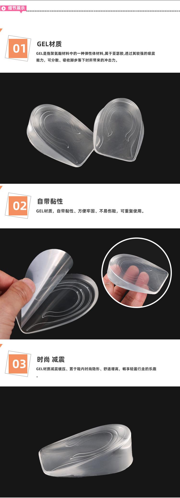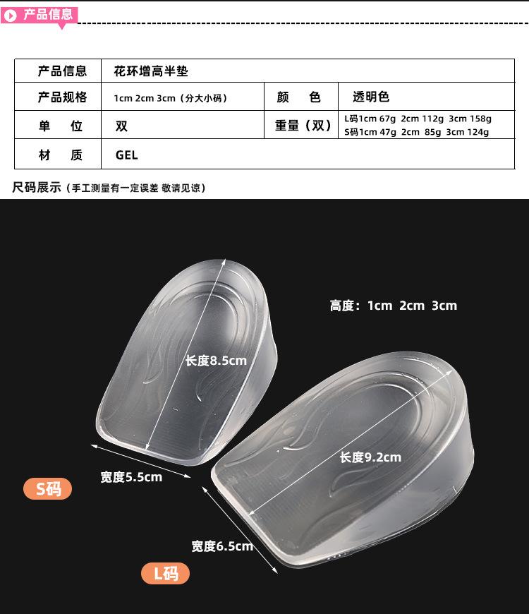 Material de calzado al por mayor PVC7CM plantilla interior invisible ajustable de tres capas que aumenta la altura plantilla invisible que aumenta la altura