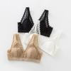 Sencillo Brocado Seda Hilada Copa Triángulo Japonesa Ropa Interior Sin Sentido Sujetador de Seda de Morera para Dormir de Verano Fino Sin Aro de Acero para Mujer