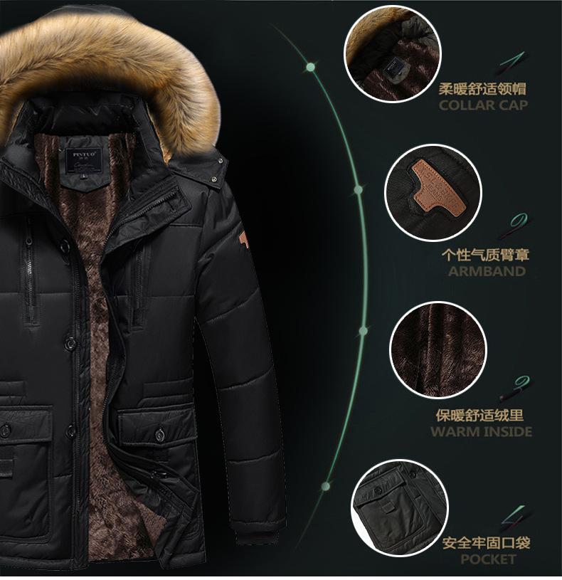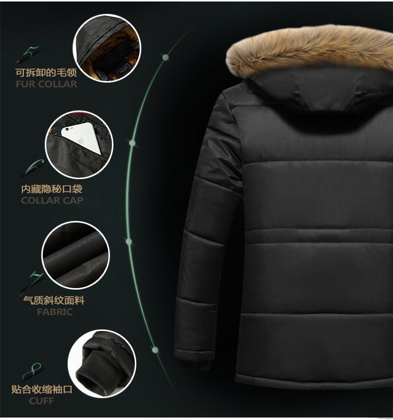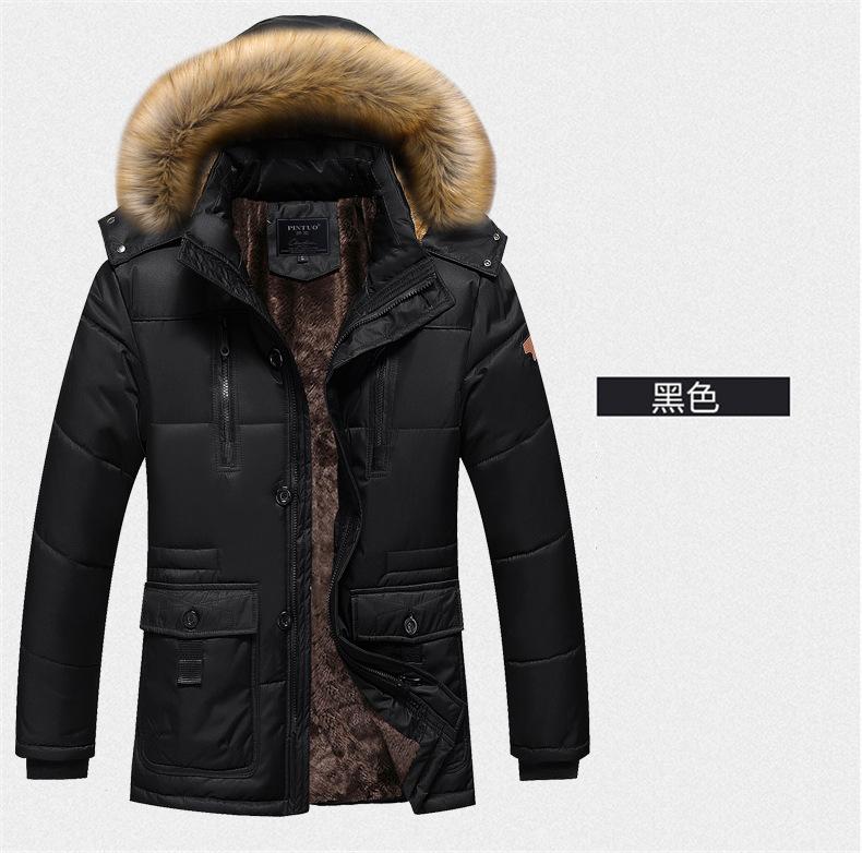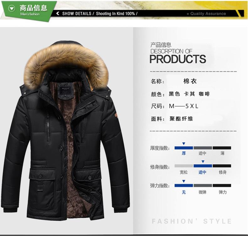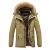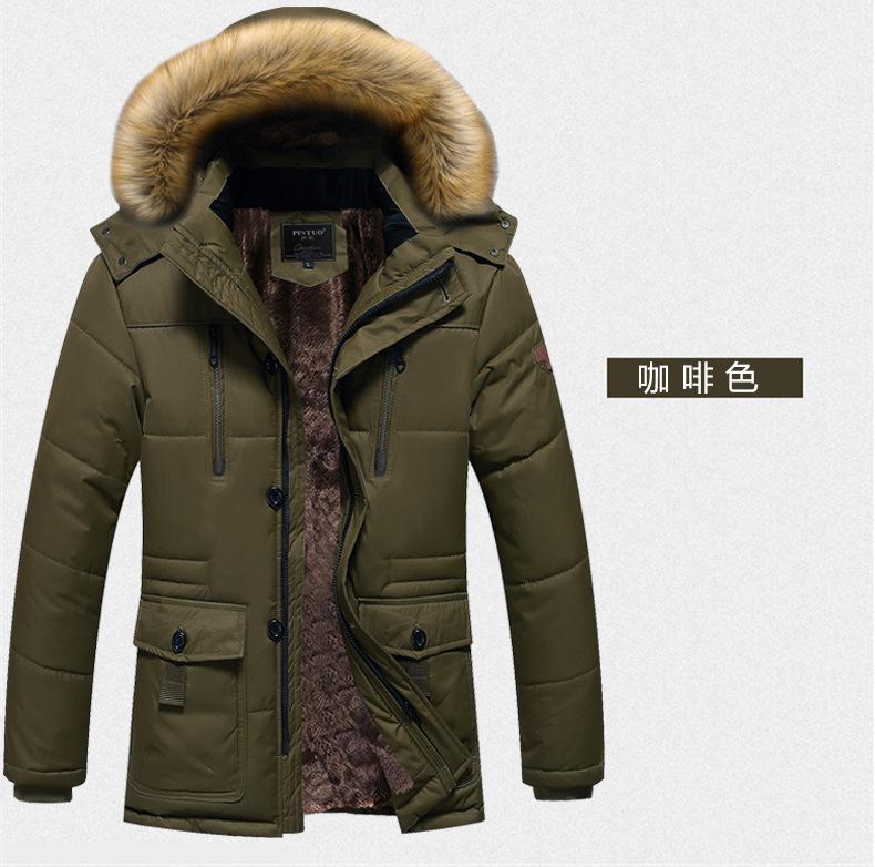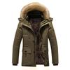 Compra Abrigo acolchado de algodón grueso de gran tamaño para hombres de mediana edad y ancianos, chaqueta acolchada de algodón informal para hombres, abrigo de cuello de piel con capucha desmontable y cálido de invierno al por mayor en Joom.pro