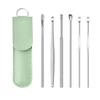 Juego de 6 palas de acero inoxidable para oídos, con espiral, para limpieza de oídos, herramientas portátiles, venta al por mayor de fábrica