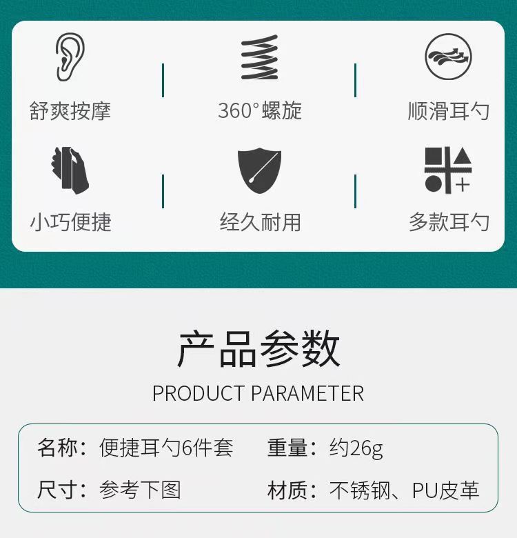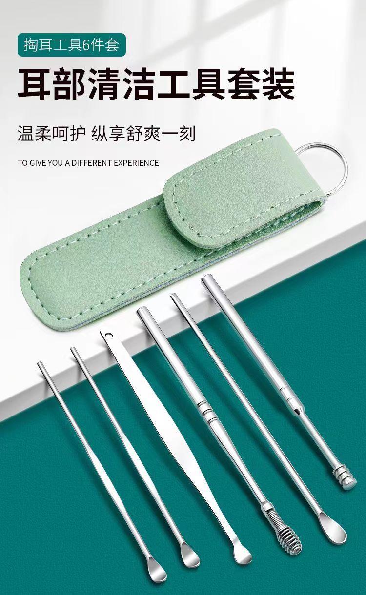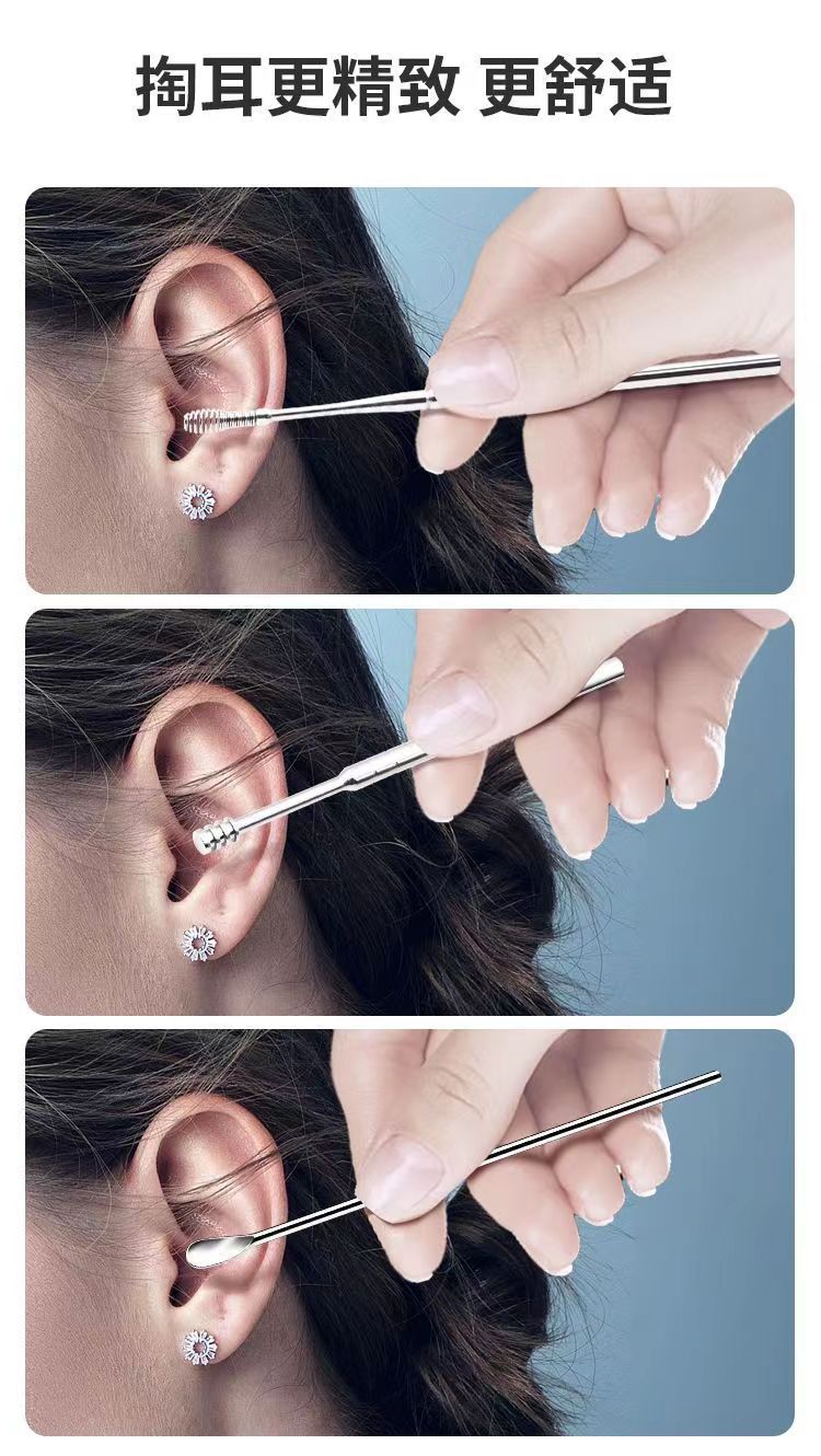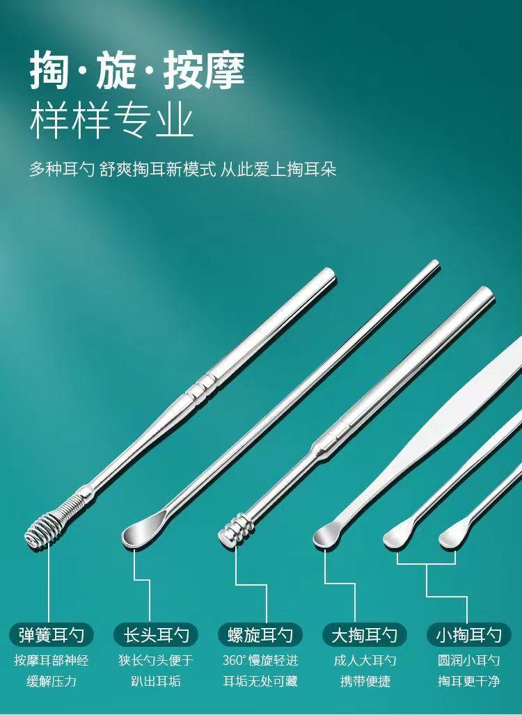 Compra Juego de 6 palas de acero inoxidable para oídos, con espiral, para limpieza de oídos, herramientas portátiles, venta al por mayor de fábrica al por mayor en Joom.pro