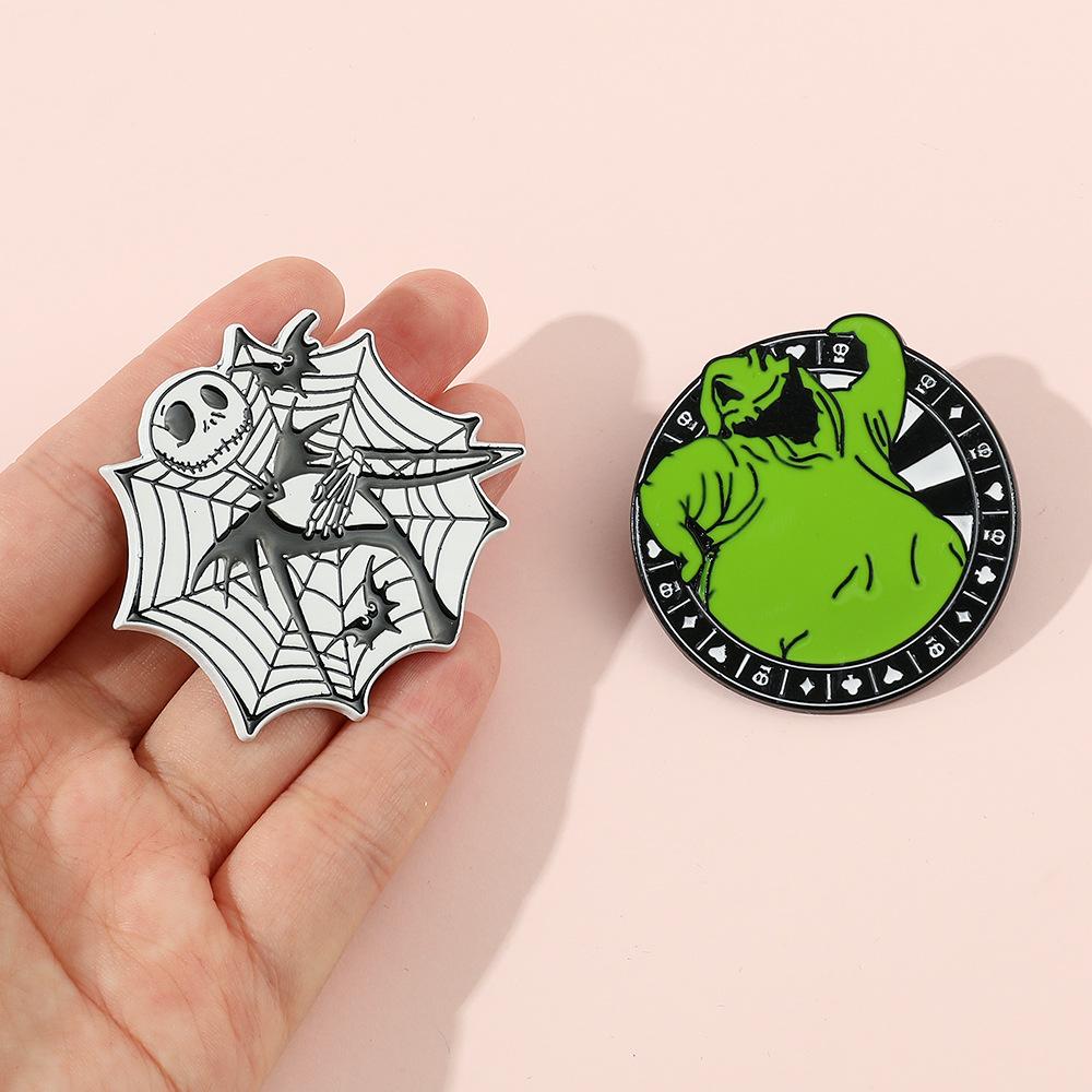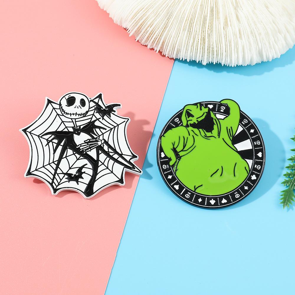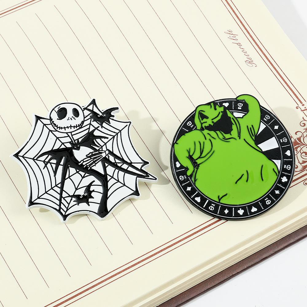 Broche de Dibujos Animados Creativo Pesadilla antes de Navidad Serie Halloween Calavera Jack Pin Esmaltado con Base de Tela Adorno