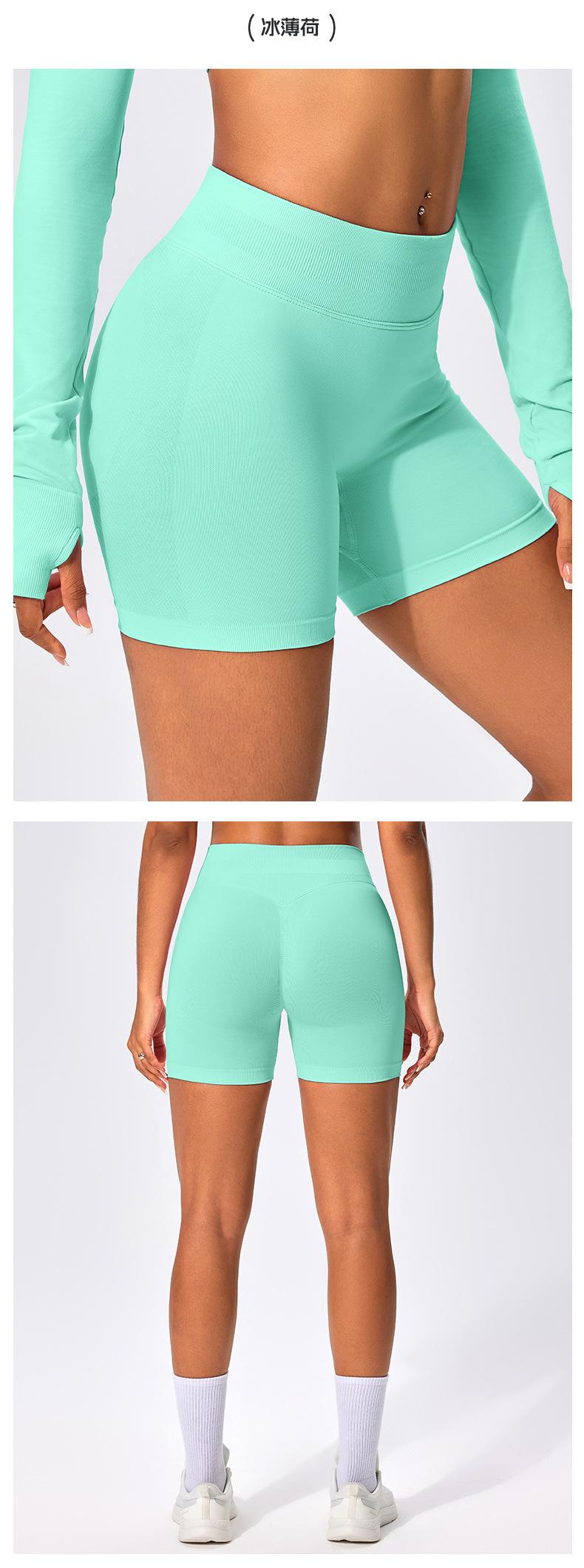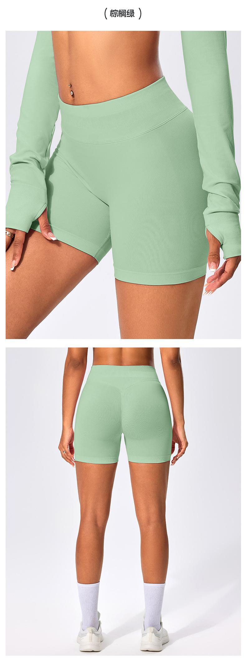 Pantalones Europeos y Americanos de Tiro Bajo de Tres Puntos, Pantalones Cortos de Yoga Fitness Sin Costuras con Pliegues de Cadera de Alta Elasticidad, Pantalones Ajustados Deportivos