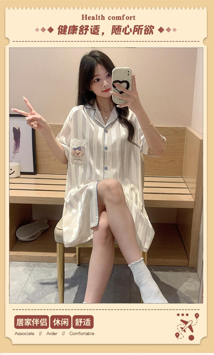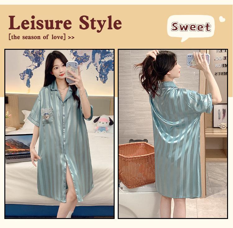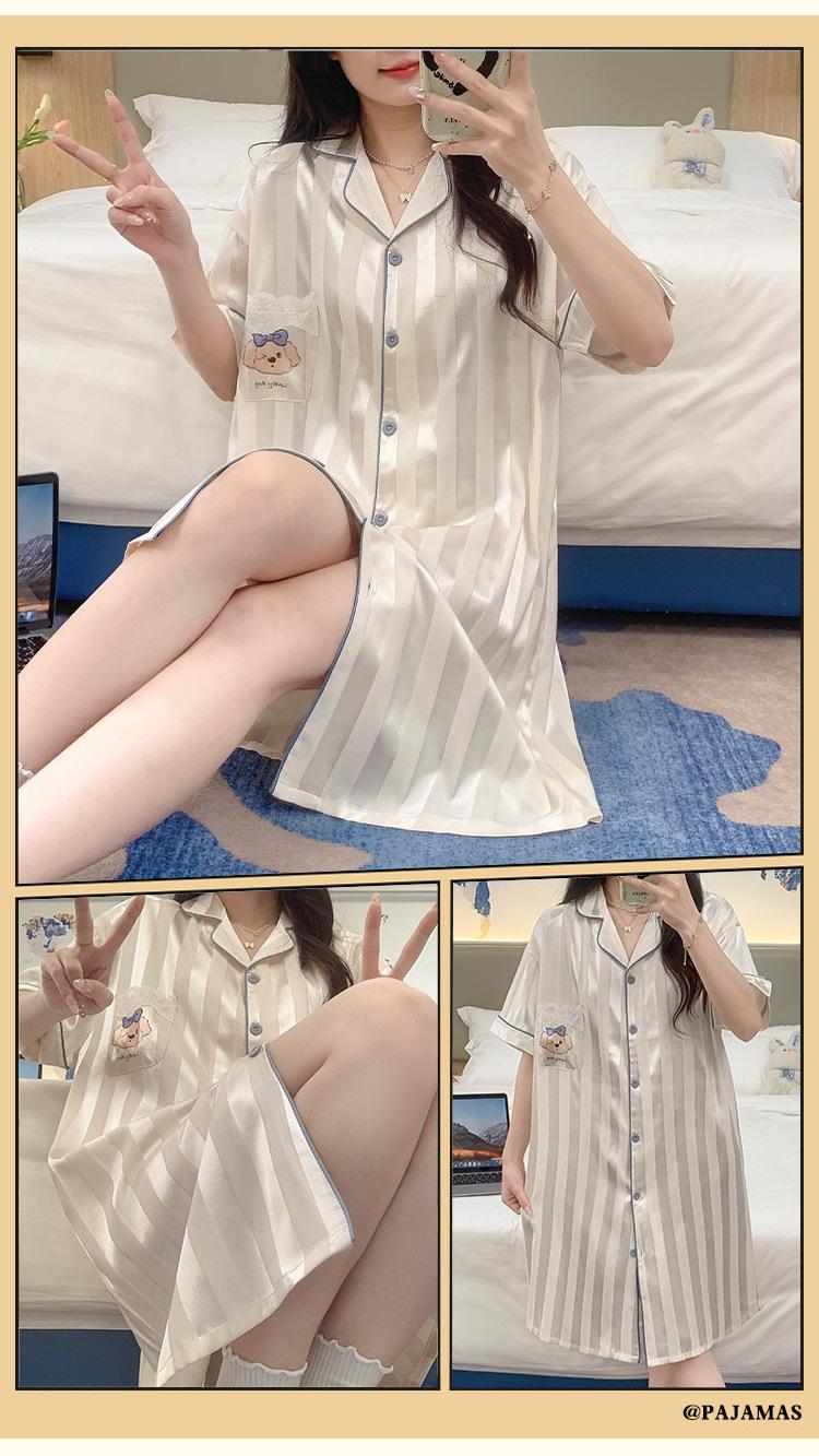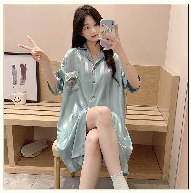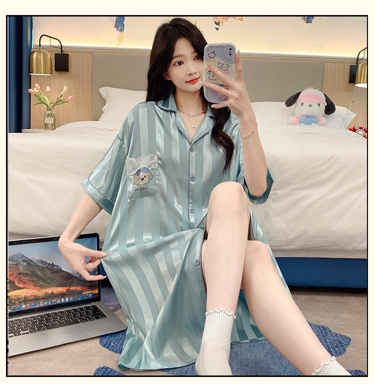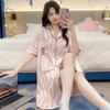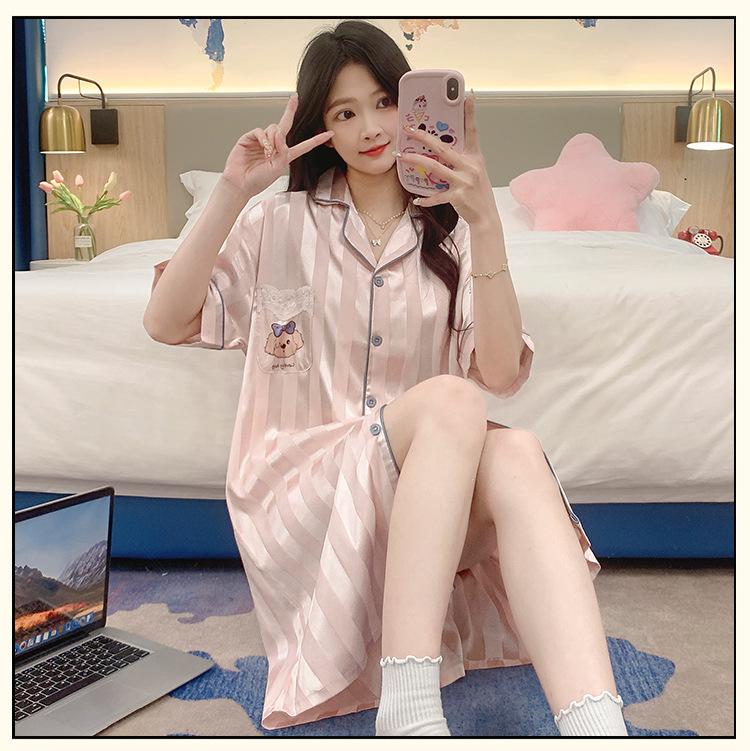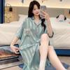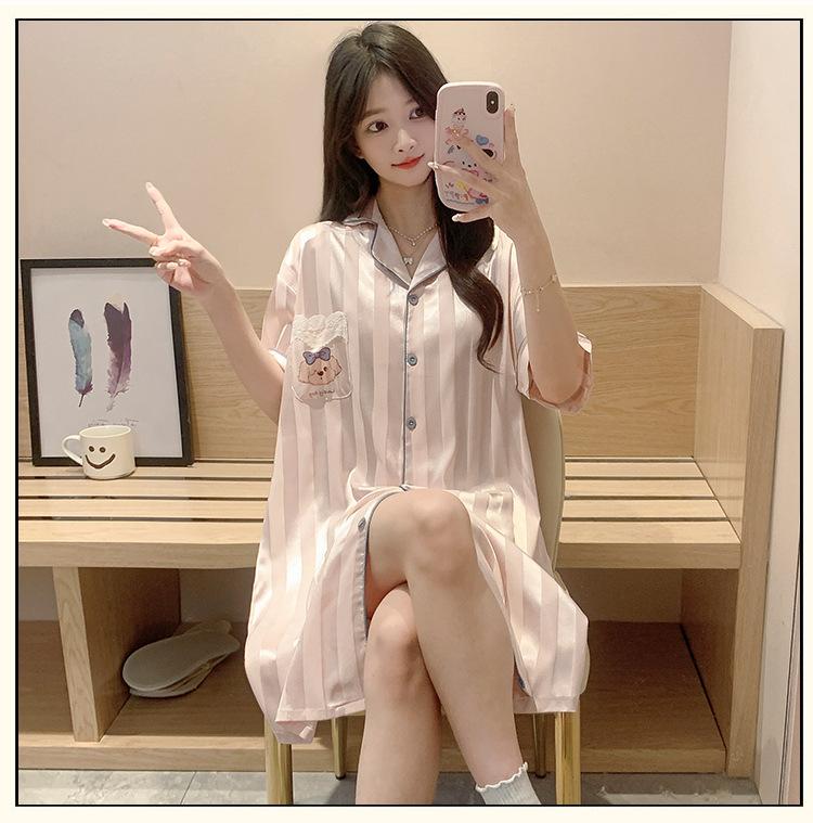 Pijama de verano para mujer, de seda fina, de manga corta, tipo cárdigan, camisón, suelto, dulce, con falda, para usar en casa.