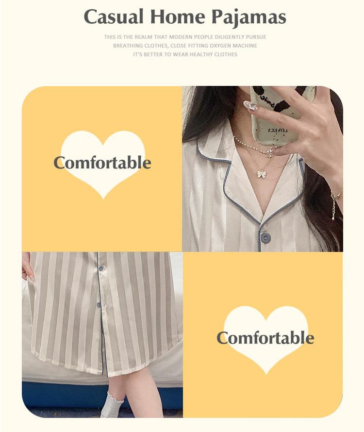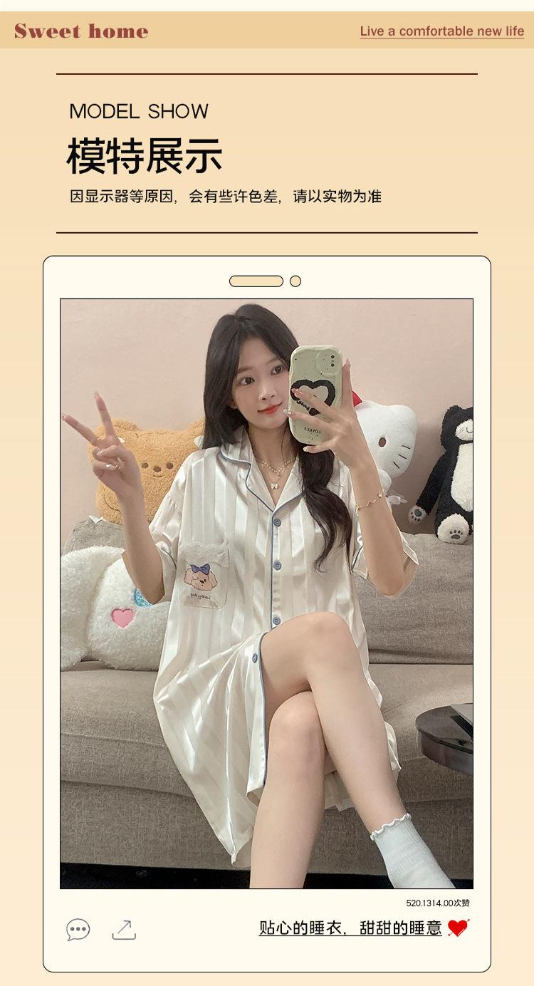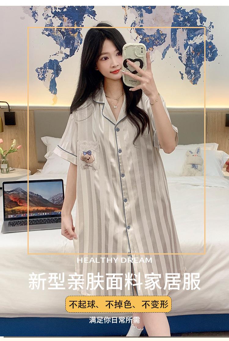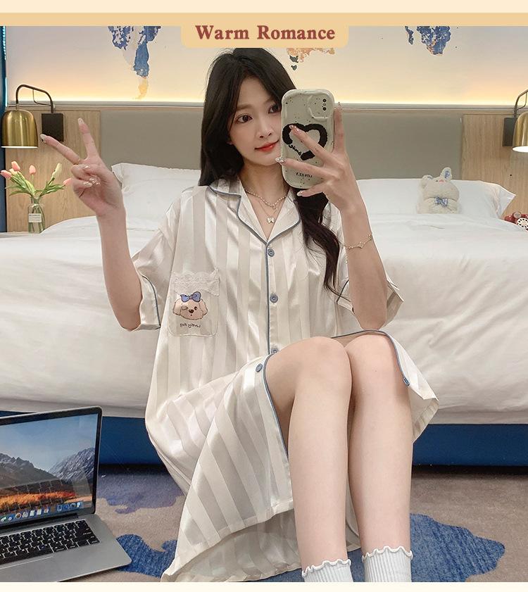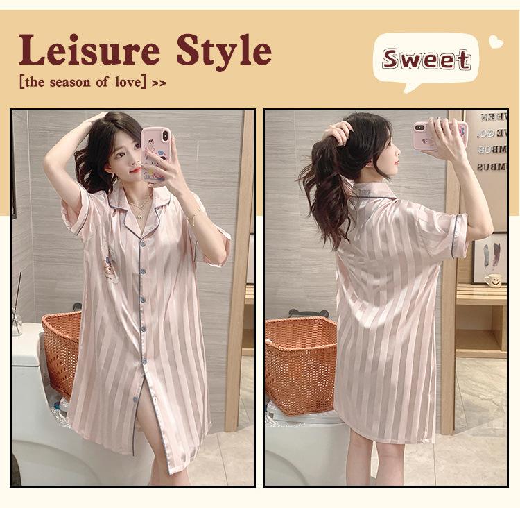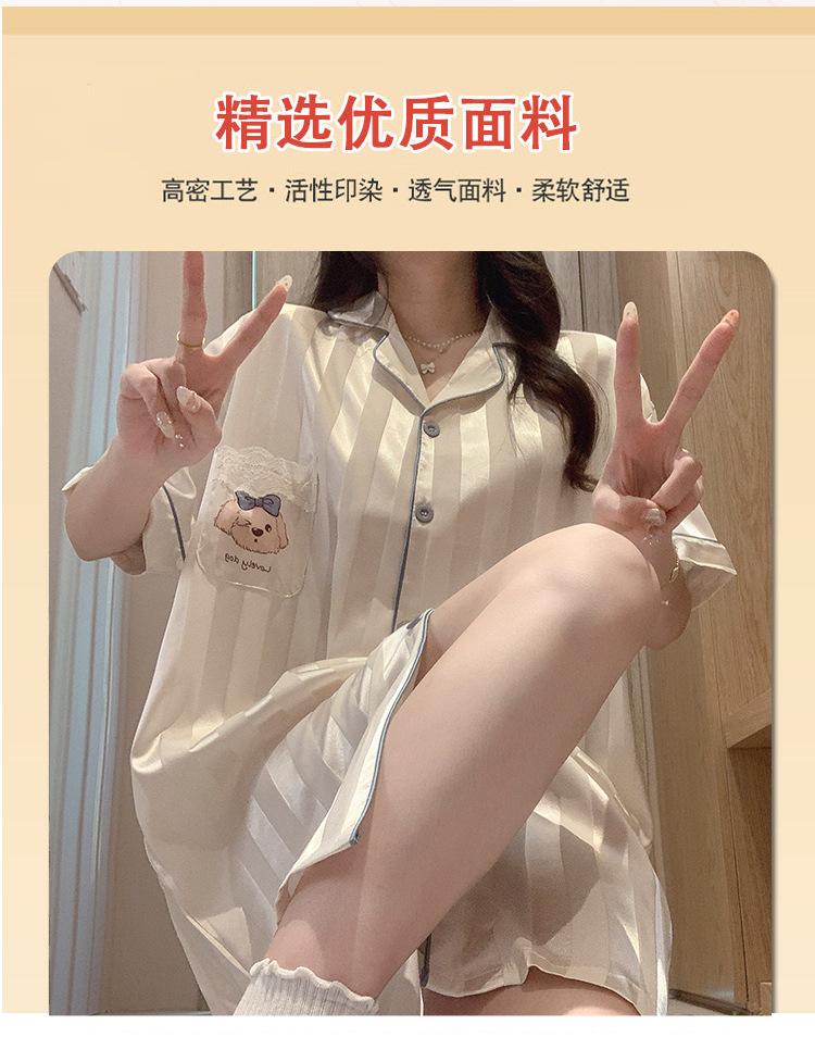 Pijama de verano para mujer, de seda fina, de manga corta, tipo cárdigan, camisón, suelto, dulce, con falda, para usar en casa.