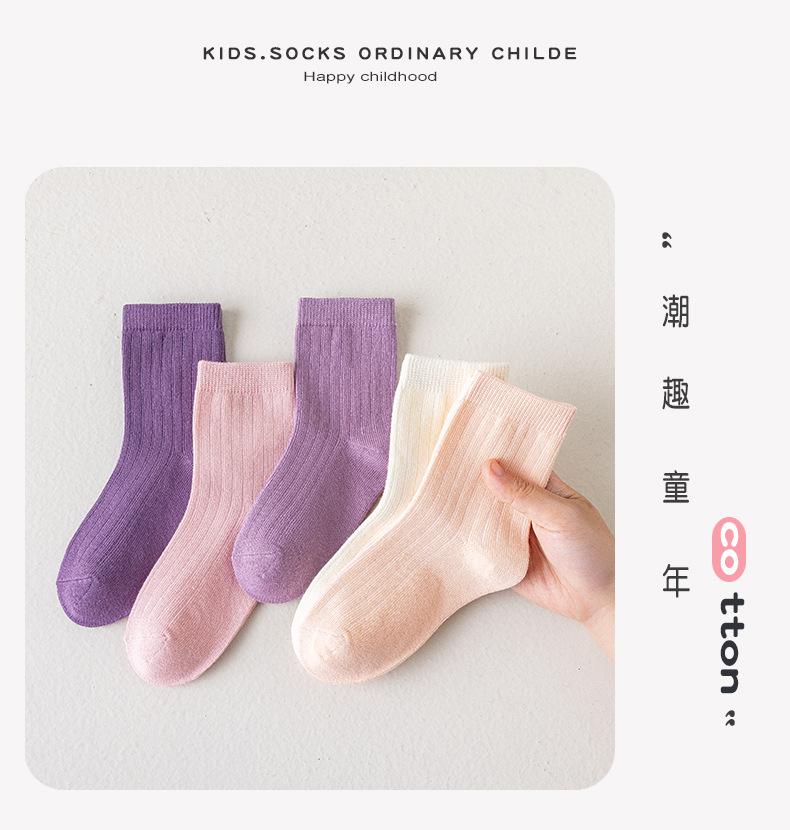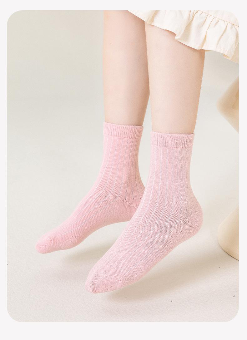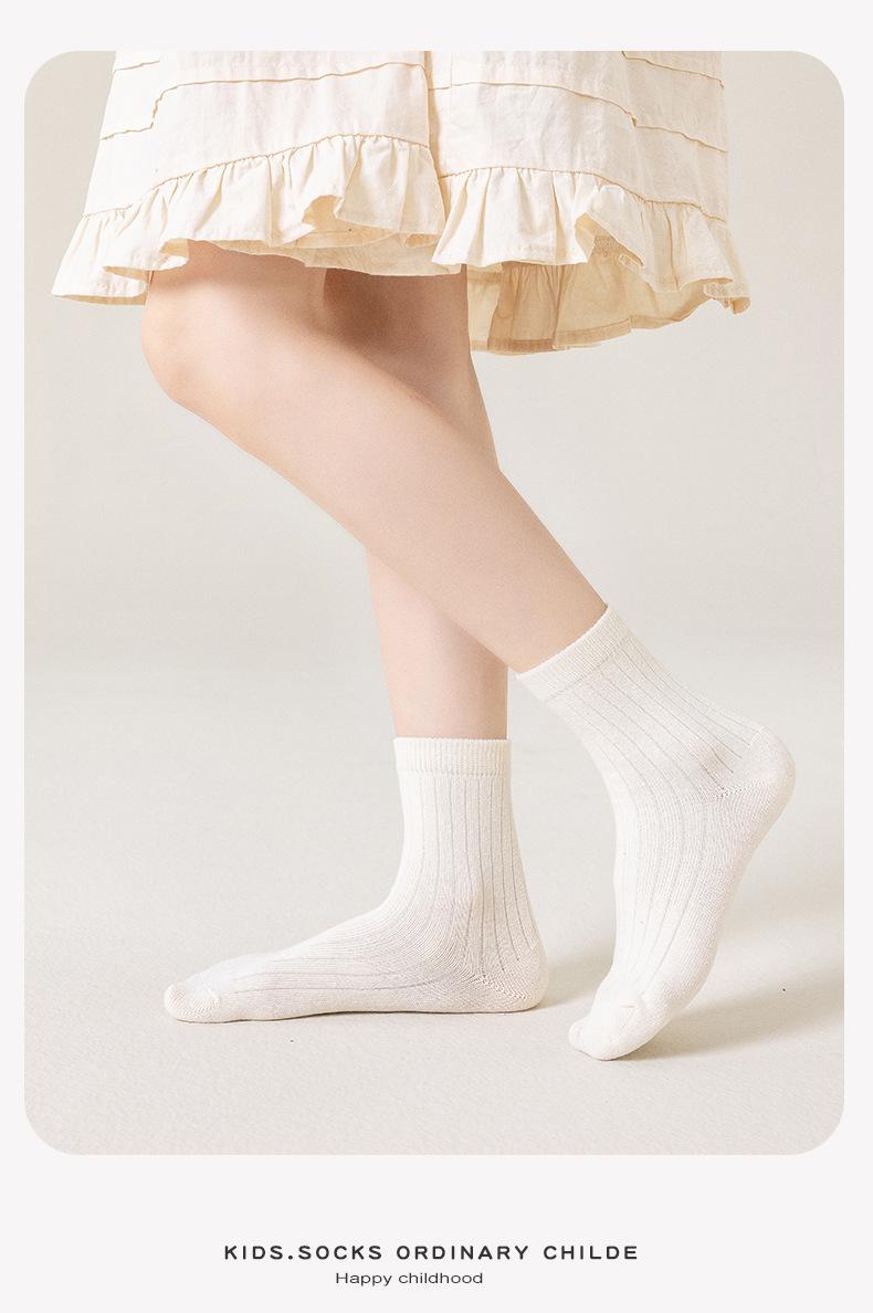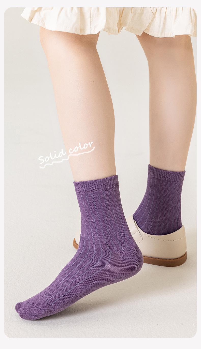 Calcetines para niños 2025 Otoño Doble aguja Doble camino Medianos y Grandes Niñas Calcetines de Algodón Peinado Color Sólido Estudiante Media Caña Calcetines al por mayor