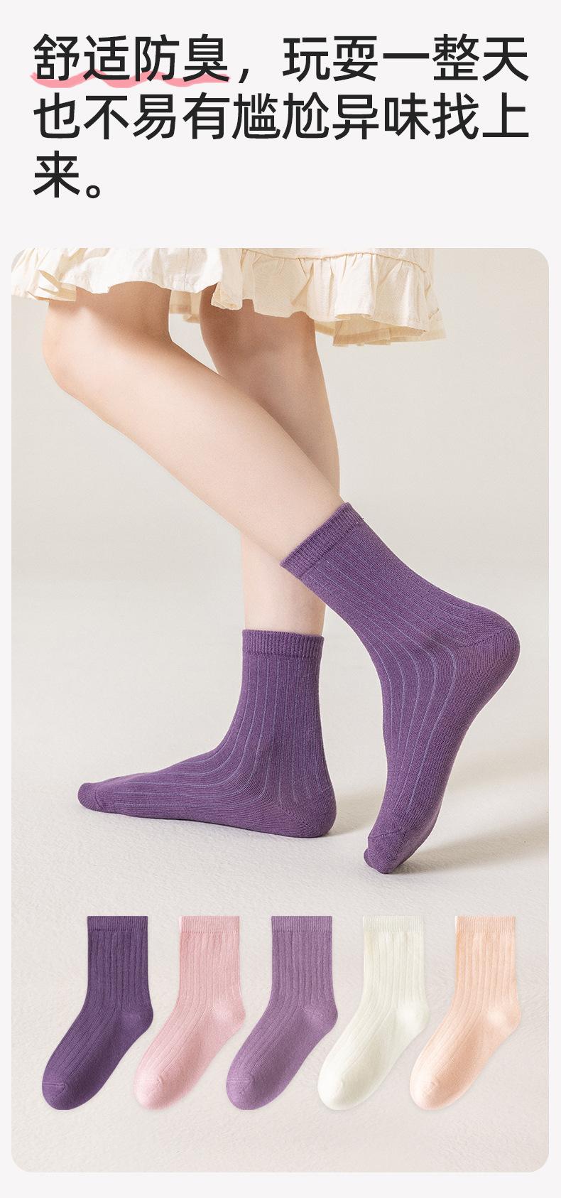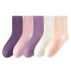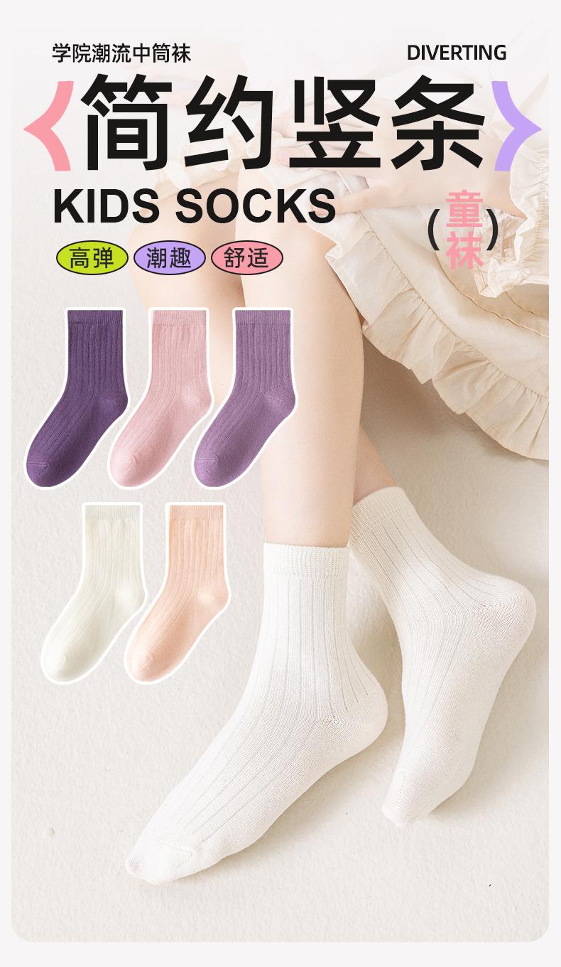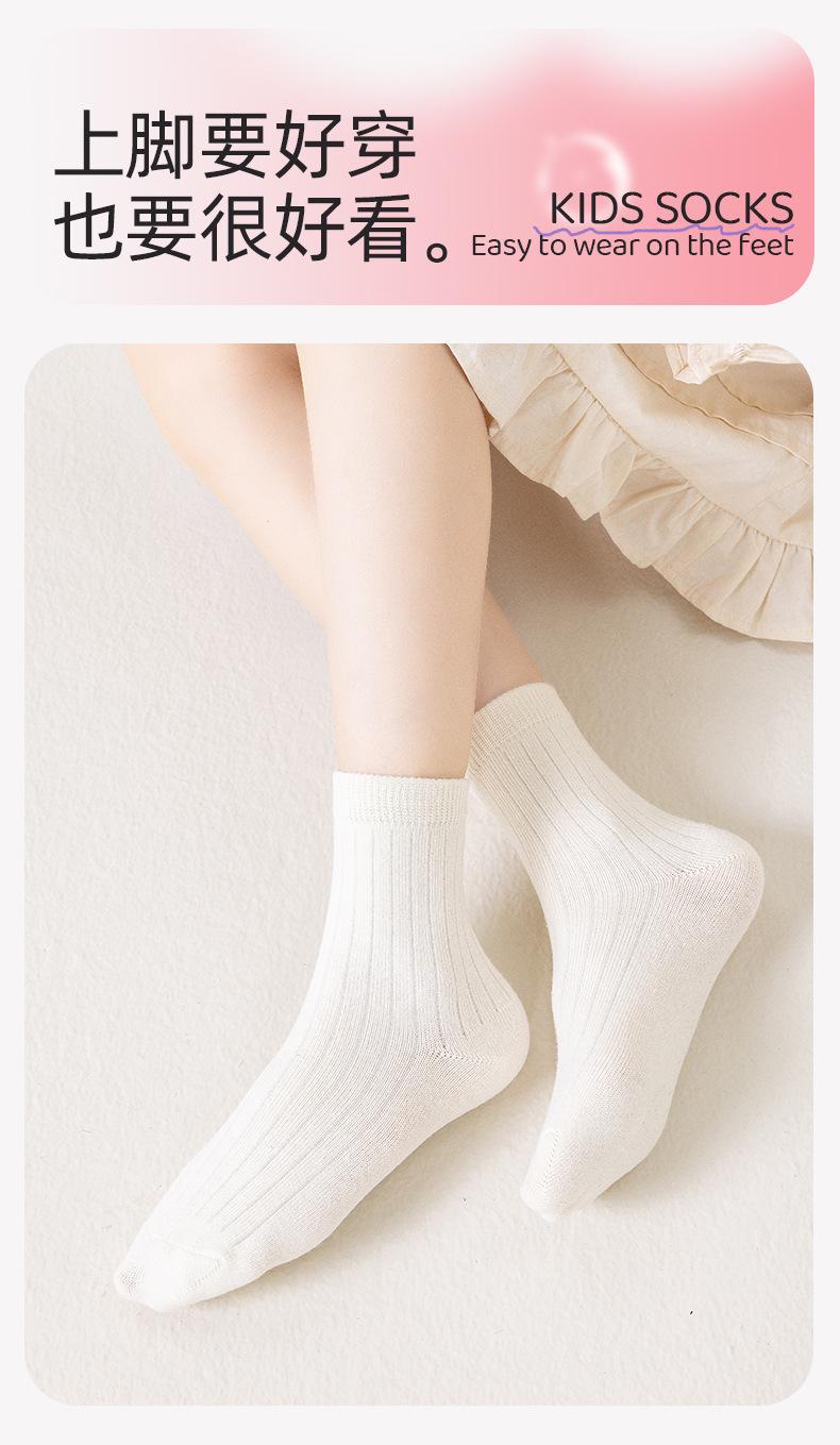 Calcetines para niños 2025 Otoño Doble aguja Doble camino Medianos y Grandes Niñas Calcetines de Algodón Peinado Color Sólido Estudiante Media Caña Calcetines al por mayor