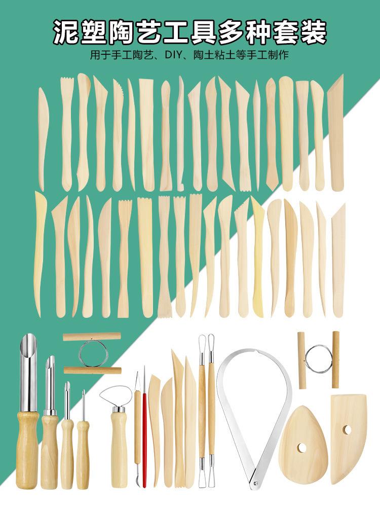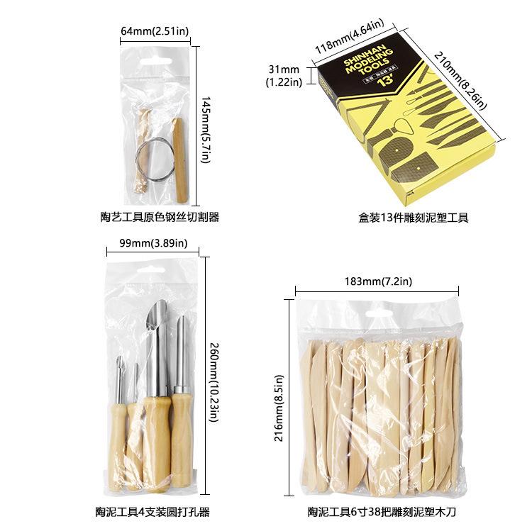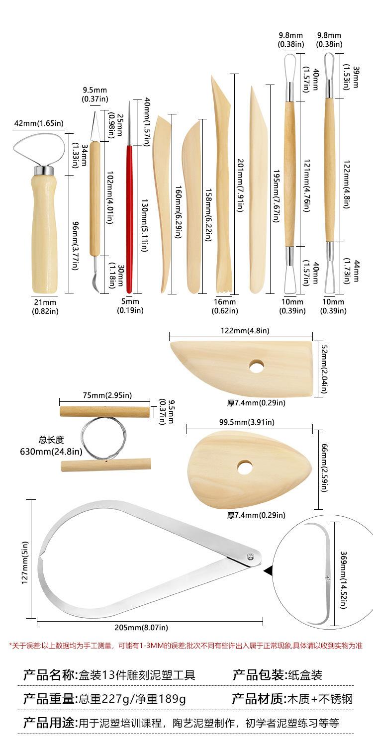 Primary color steel wire cutter, 6 inch 38 carved clay wooden knife, Boxed 13 Pieces Carving Clay Sculpture Tools