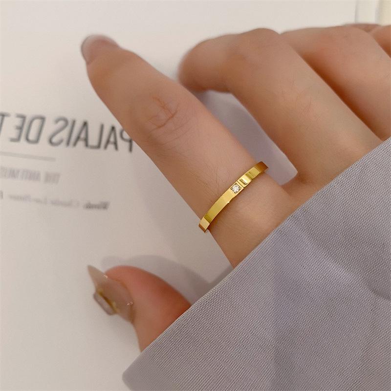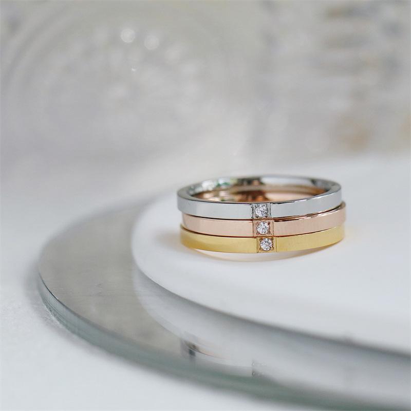 Nuevo anillo de diamantes de moda con un solo diamante, anillo de acero de titanio Joker para hombres coreanos, anillo fino para mujeres, venta al por mayor