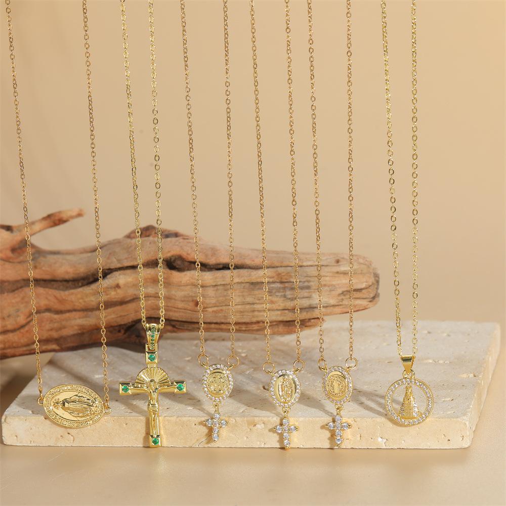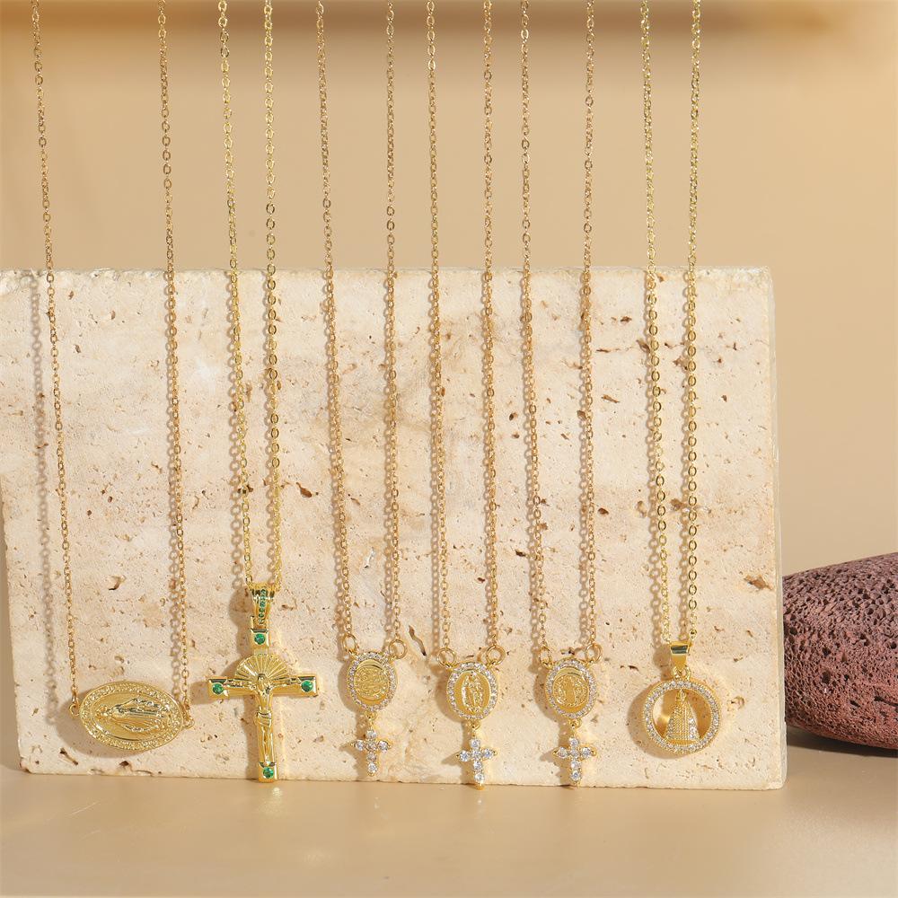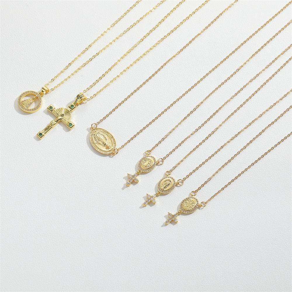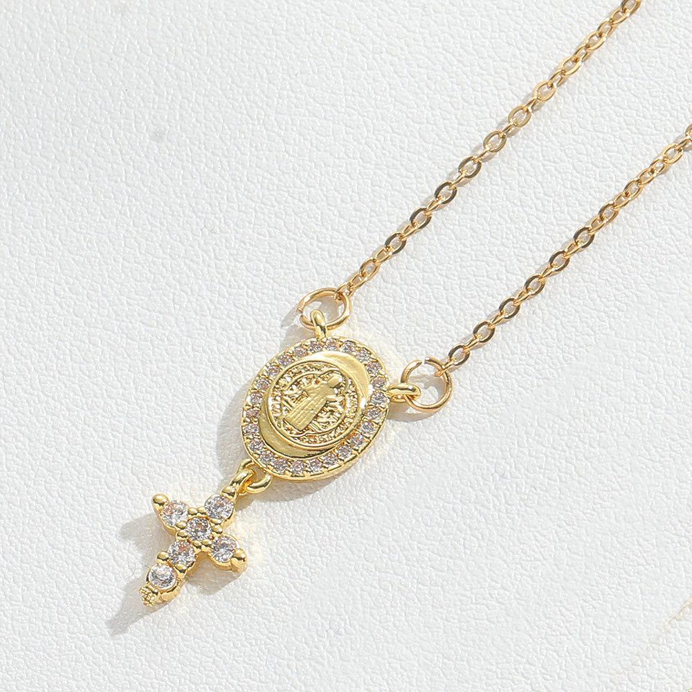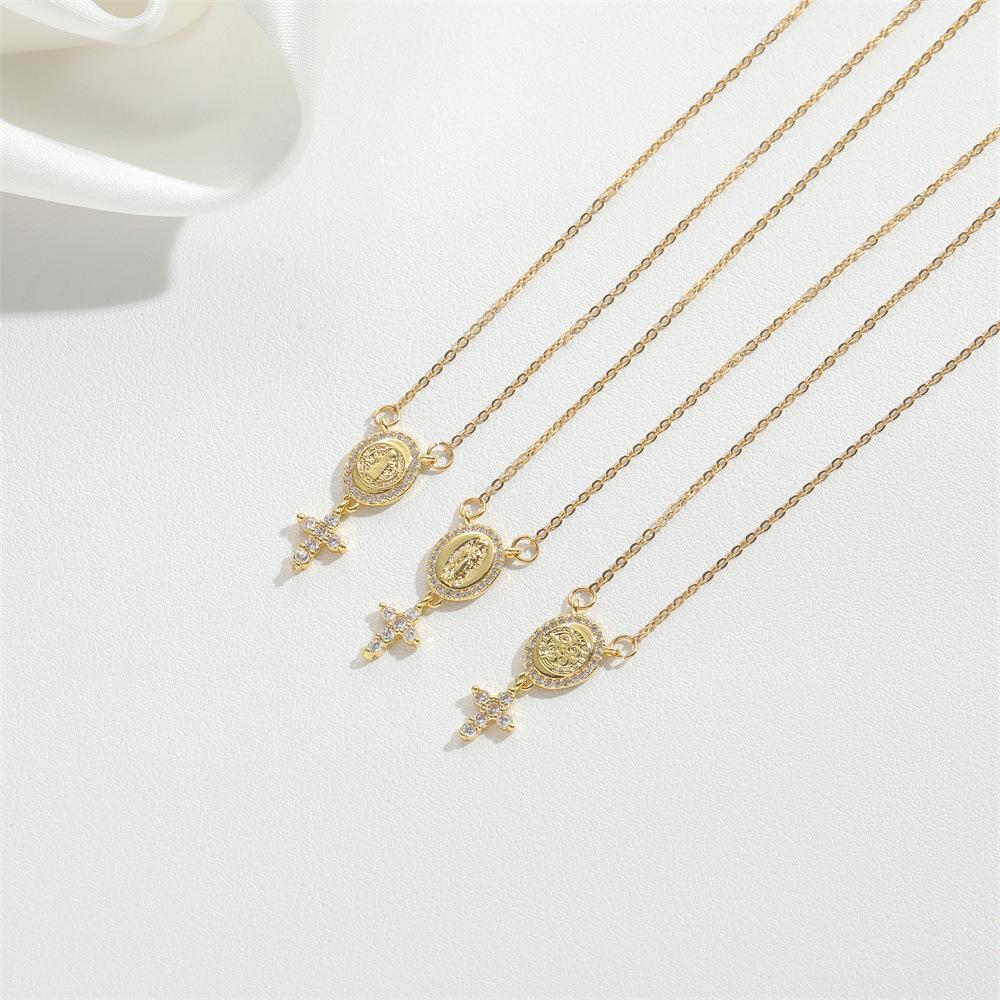 [Nombre del Producto] Collar de cadena para clavícula con colgante de diseño simple retro de cruz superventas europeo y americano, chapado en oro real, joyería de collar estilo ins