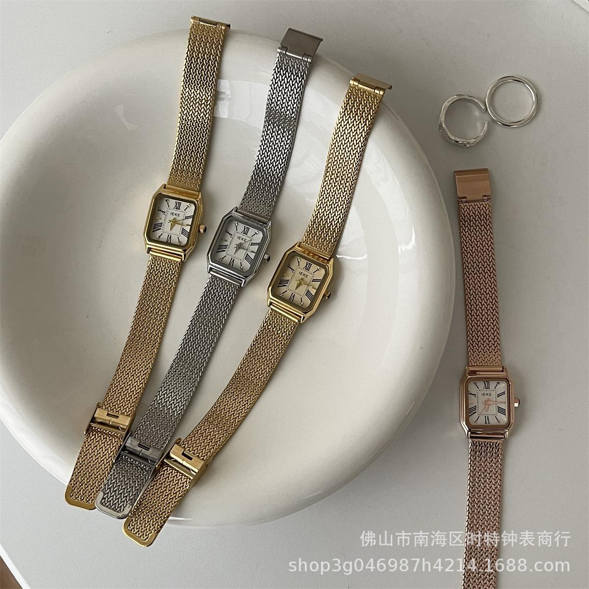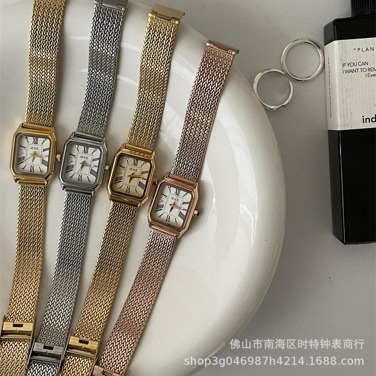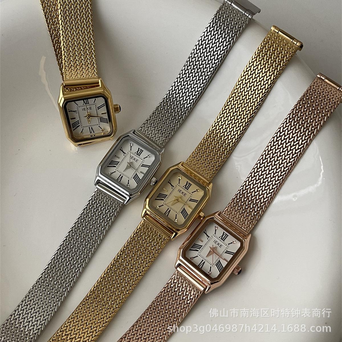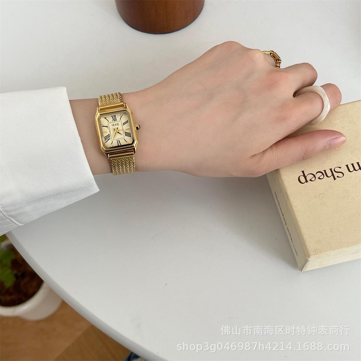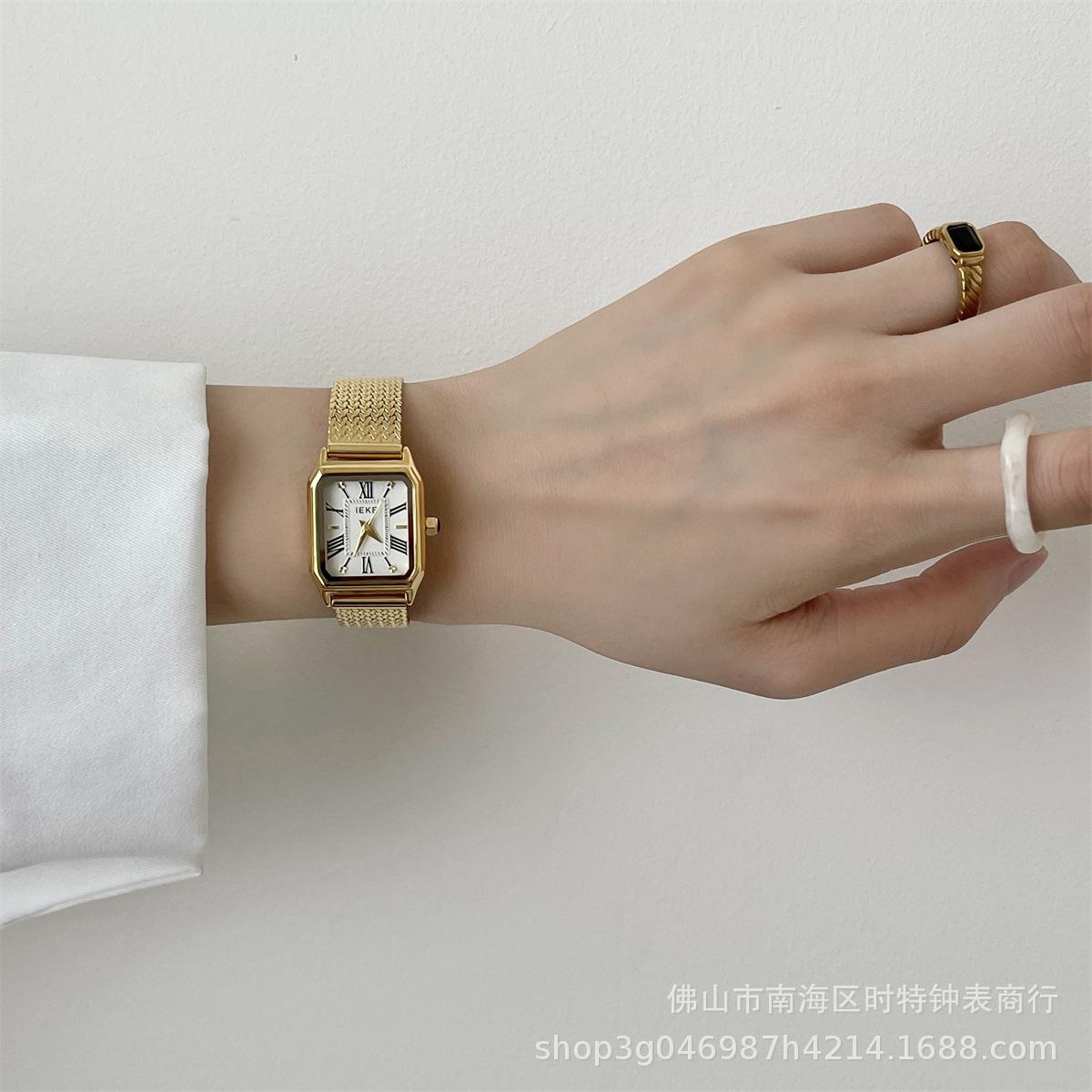 Reloj IEKE de estilo romano francés cuadrado, informal, de nicho medio y antiguo, para mujer estudiante, de temperamento sencillo, para el lugar de trabajo.