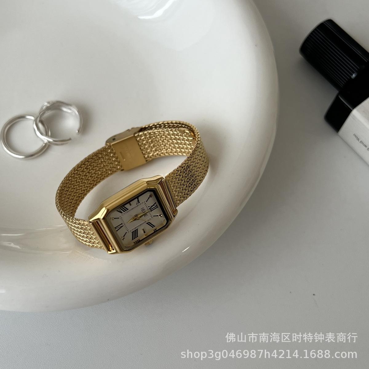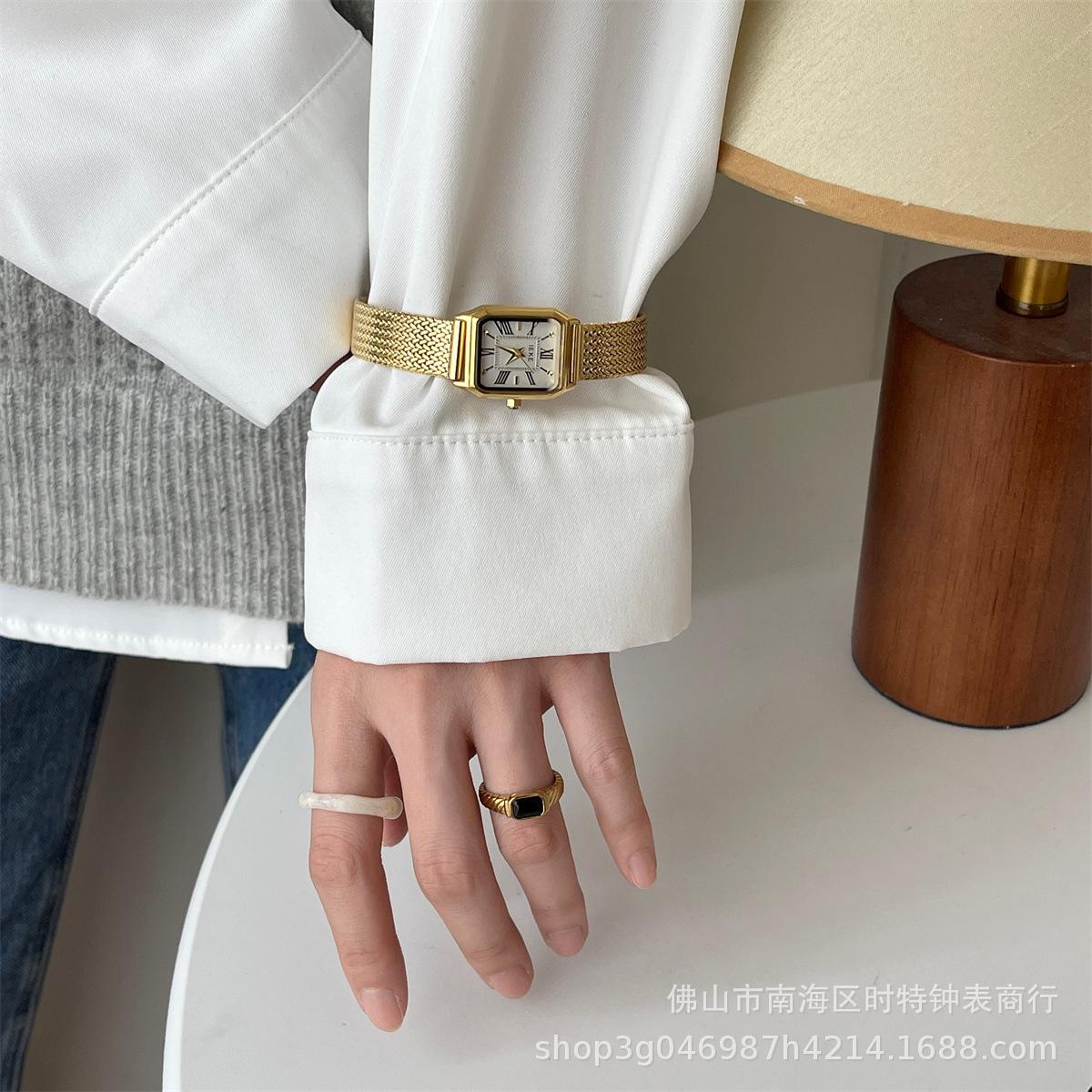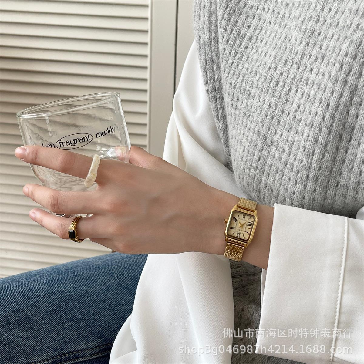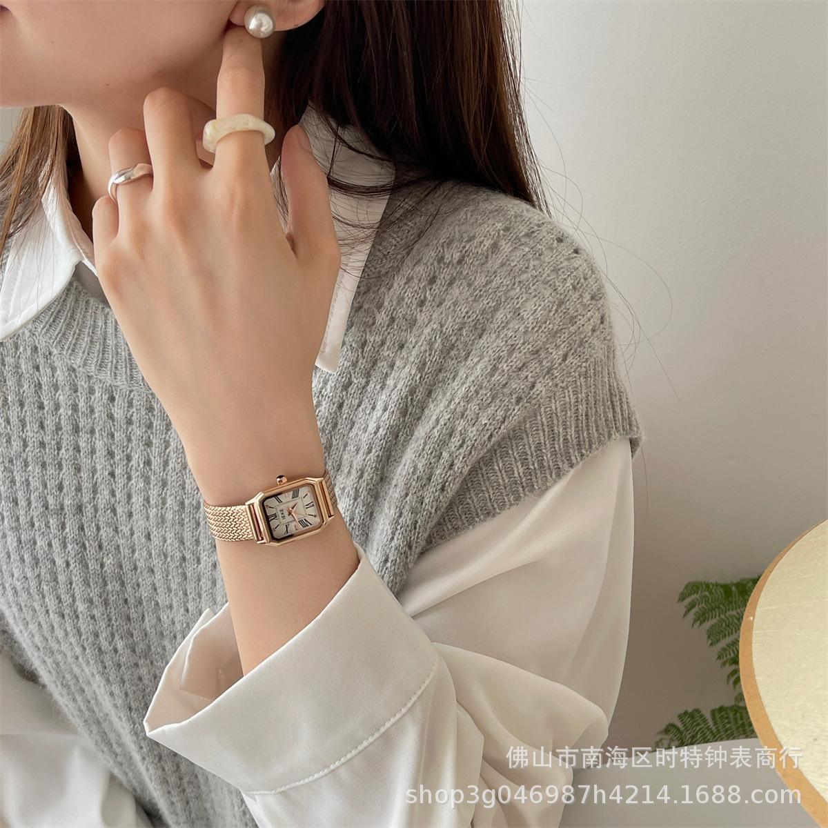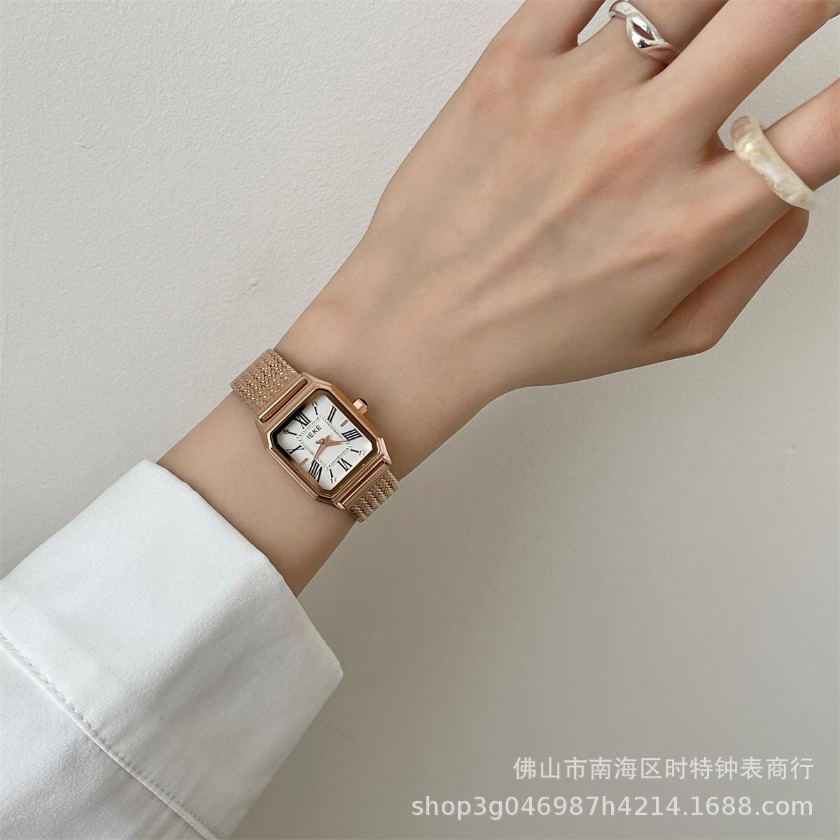 Reloj IEKE de estilo romano francés cuadrado, informal, de nicho medio y antiguo, para mujer estudiante, de temperamento sencillo, para el lugar de trabajo.
