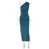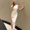 Ropa de Mujer Otoño 2025 Nueva Temperamento Europeo y Americano Un Hombro Color Sólido Manga Larga Ajustado Sexy Bodycon Fruncido Vestido