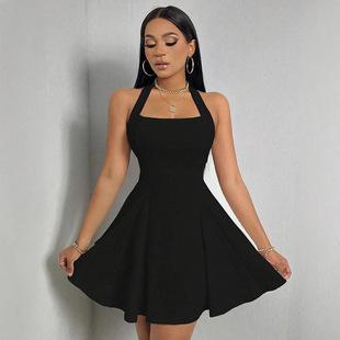 Ropa de mujer transfronteriza estilo INS europeo y americano 2025 nuevo artículo caliente sexy halter sin espalda falda corta línea A vestido al por mayor mujer