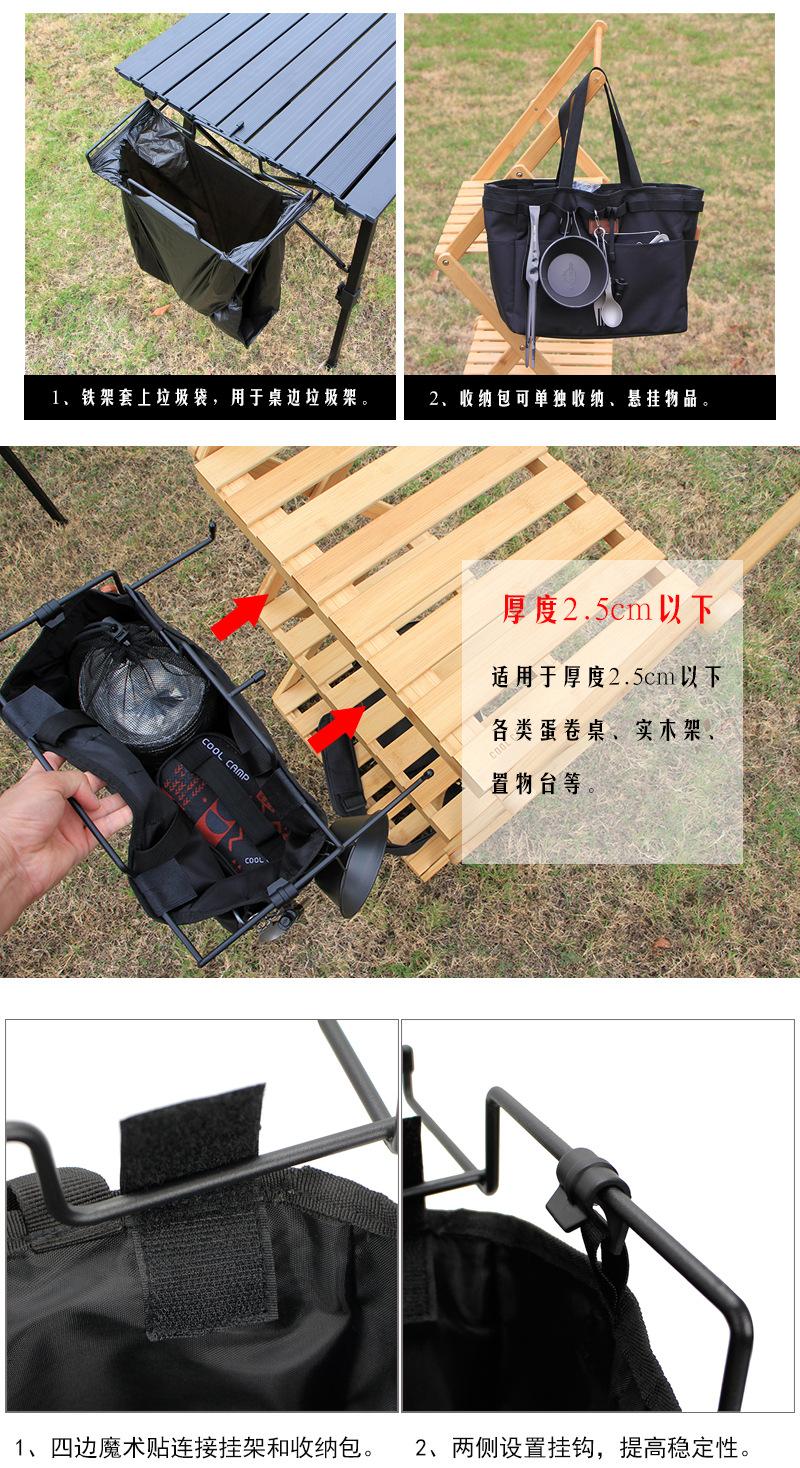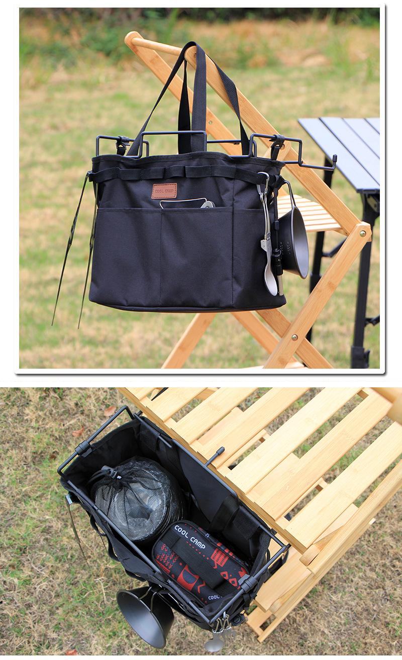 Bolsa de almacenamiento para acampar al aire libre COOLCAMP, percha para acampar, mesa de almacenamiento, estante lateral, bolsa de almacenamiento, bolso, estante para bolsas de basura