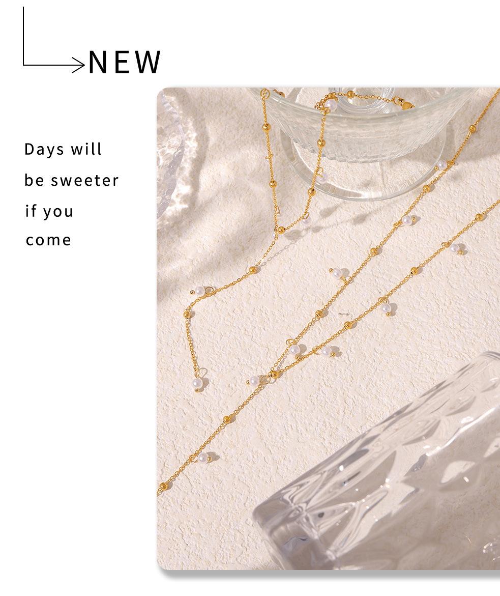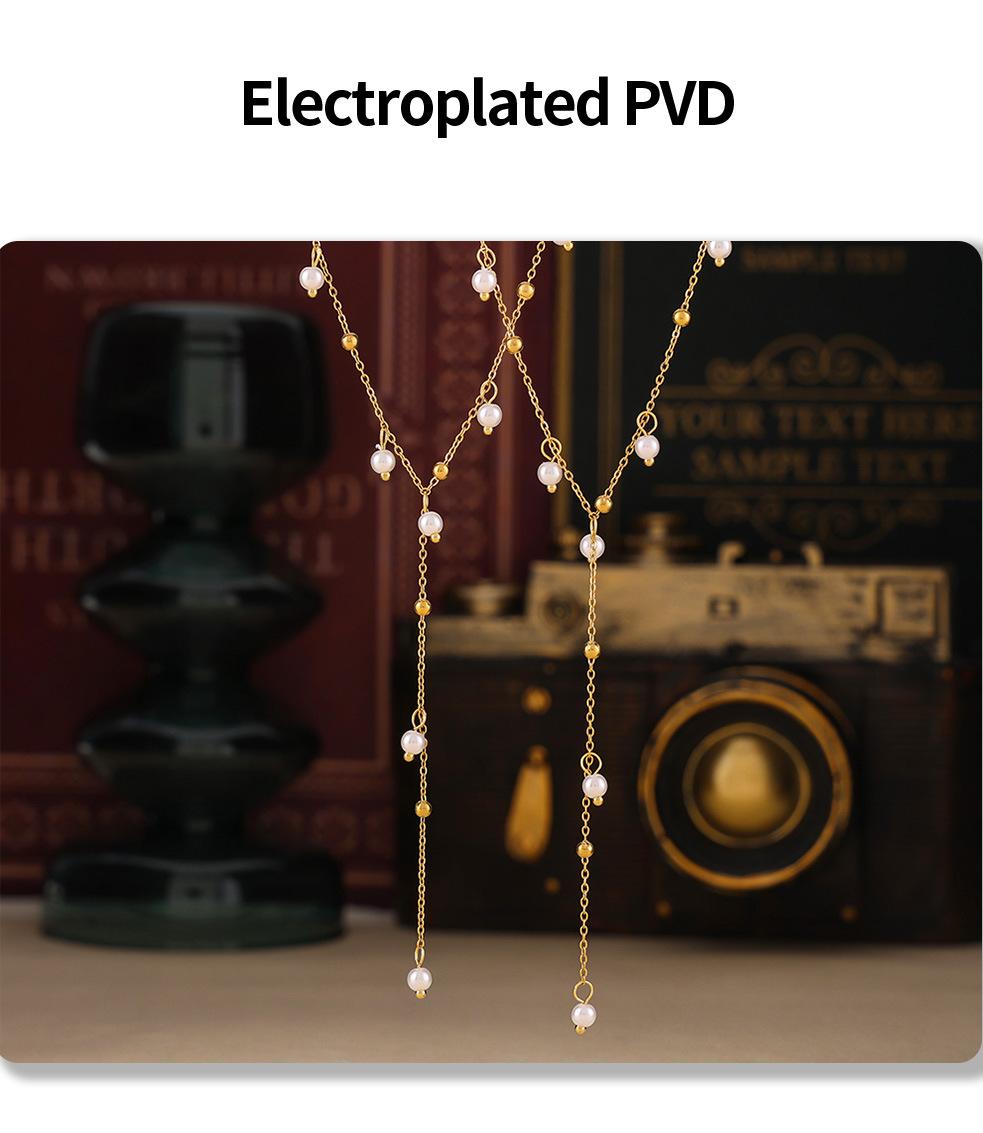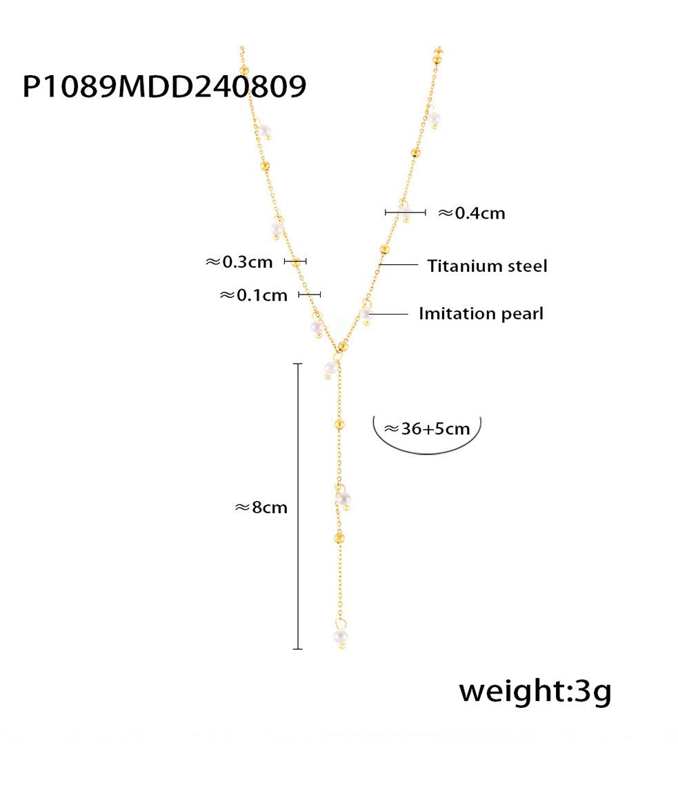 Collar de Borlas de Moda Transfronteriza, Collar con Colgante de Perla de Imitación, Estilo Simple y Dulce, Joyería de Acero de Titanio Chapado en Oro de 18K