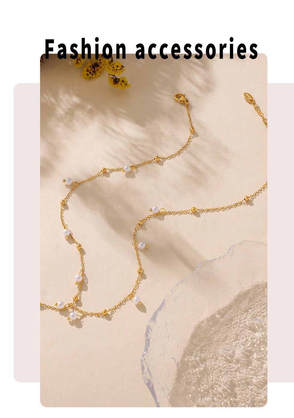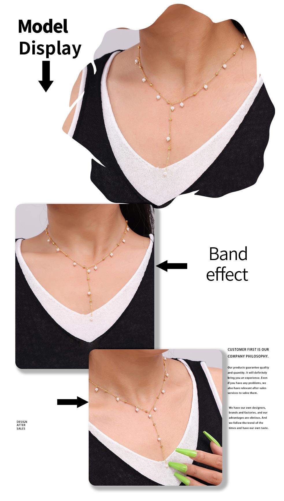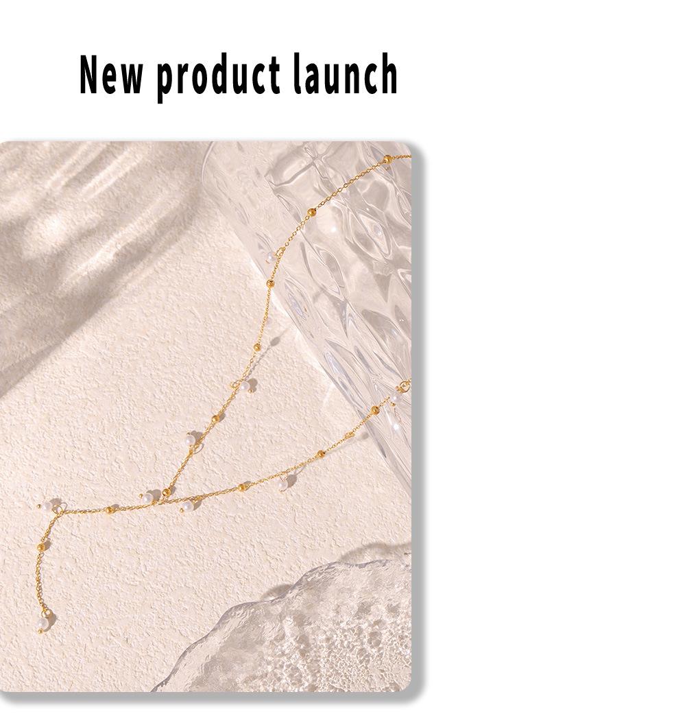 Collar de Borlas de Moda Transfronteriza, Collar con Colgante de Perla de Imitación, Estilo Simple y Dulce, Joyería de Acero de Titanio Chapado en Oro de 18K