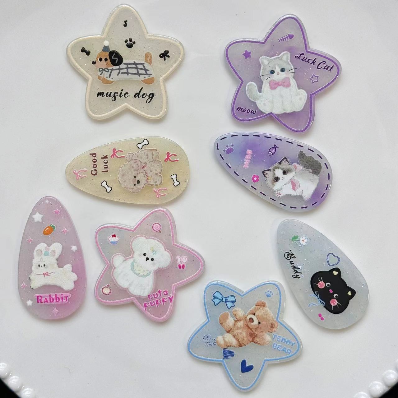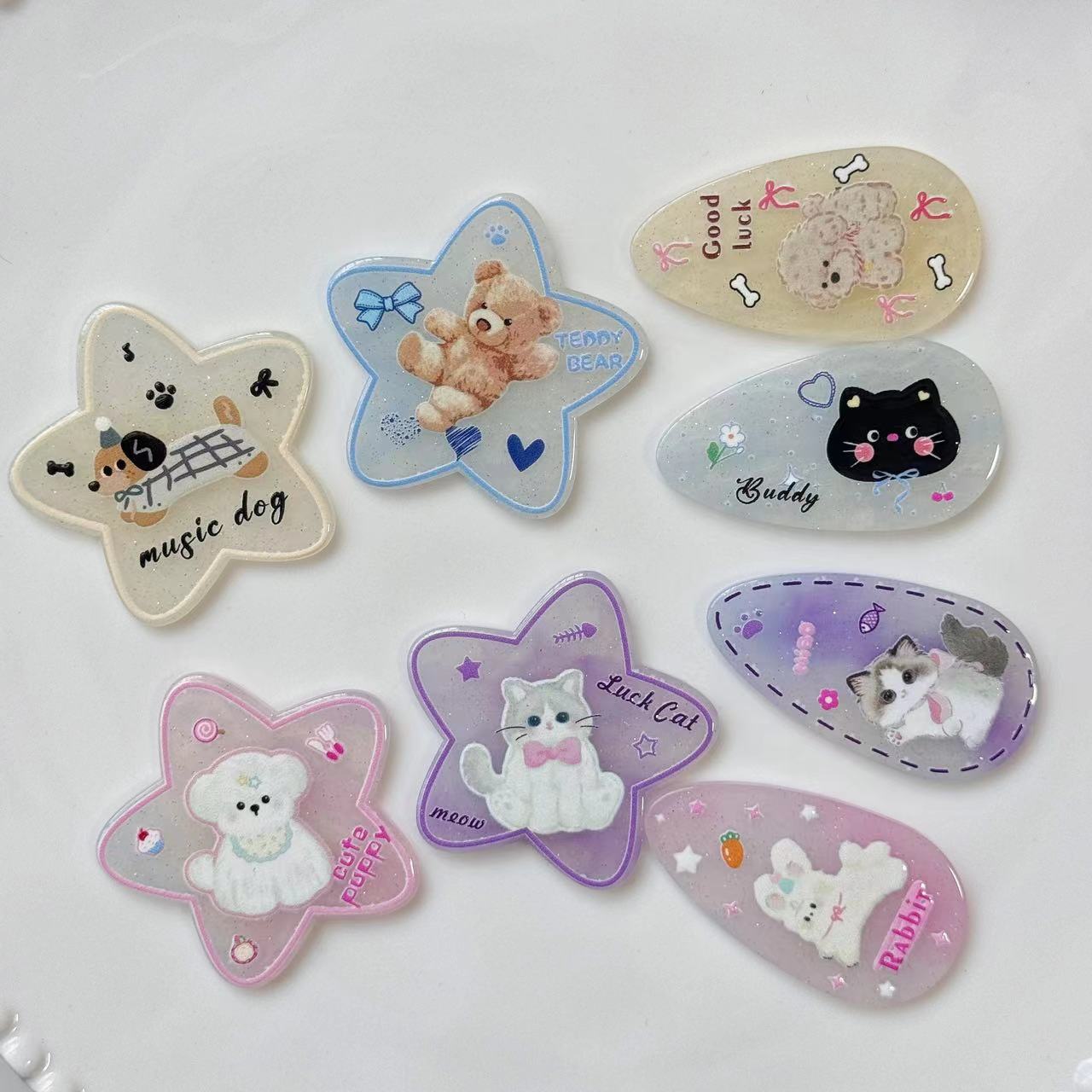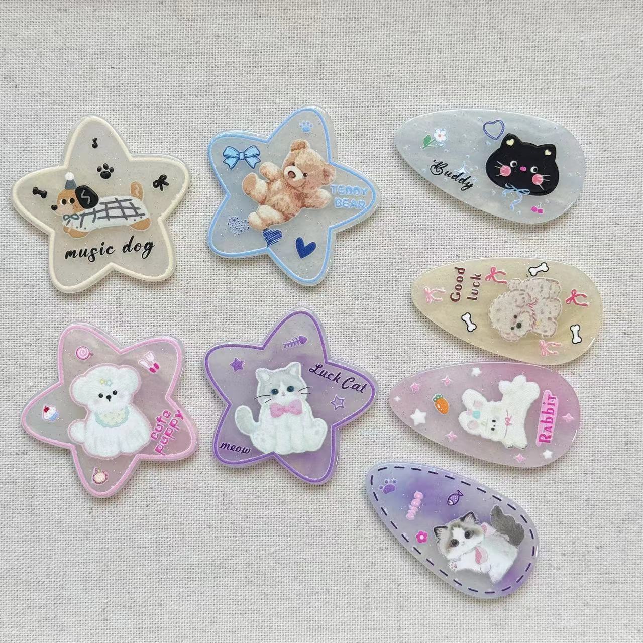 Estrella gota de agua cachorro gatito accesorios acrílicos nuevo diy hecho a mano bolsa de materiales accesorios parche de dibujos animados zapatos