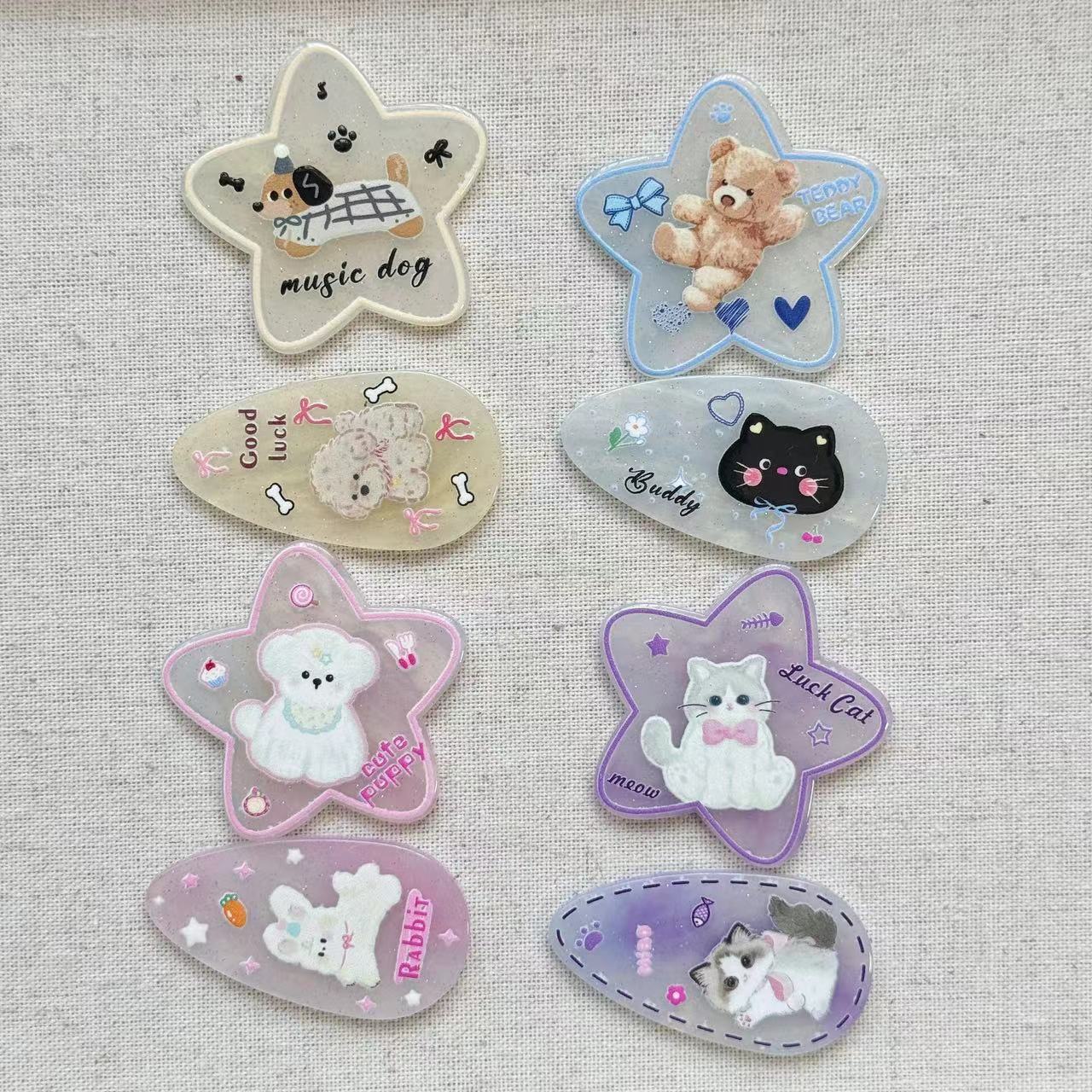 Pink Star Puppy, Purple Star Kitten, Beige Star Puppy, Blue Star Bear, Pink Water Drop Rabbit, Purple Drop Kit...