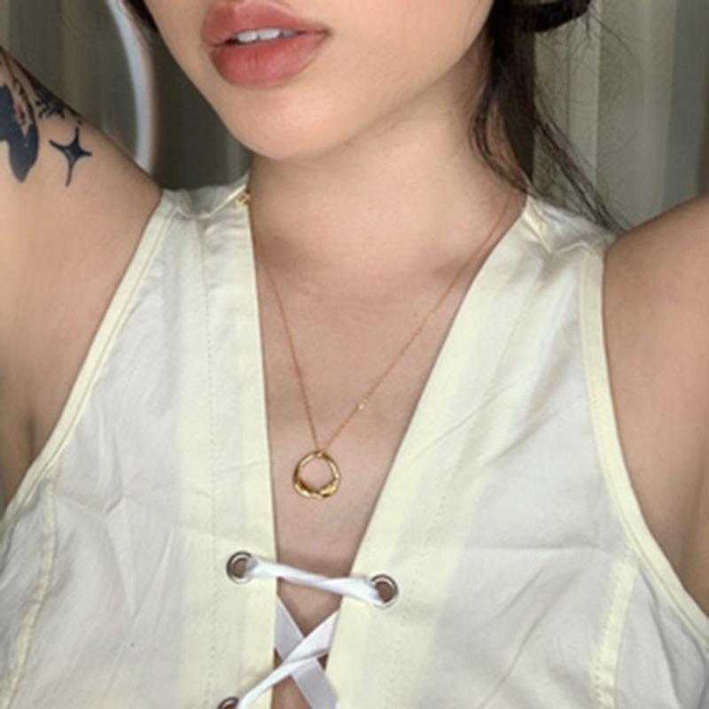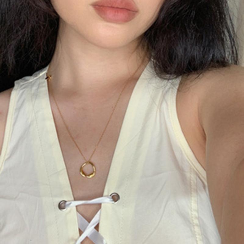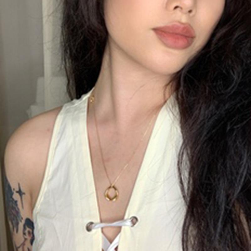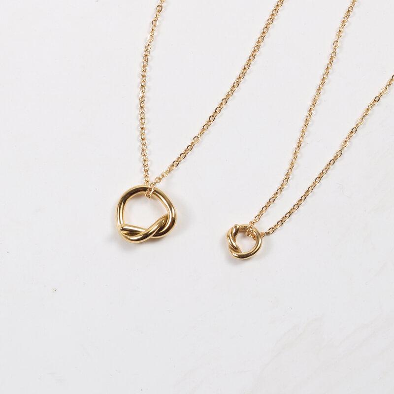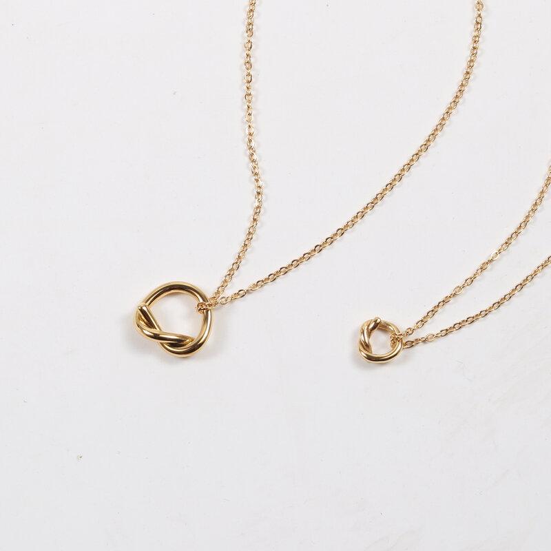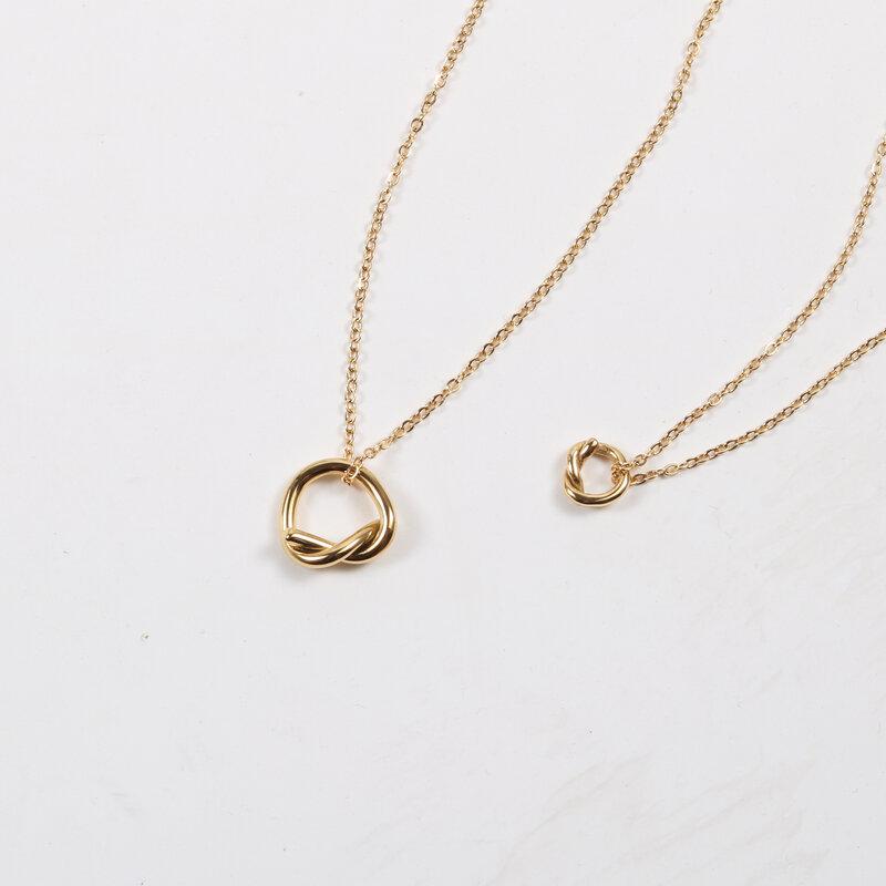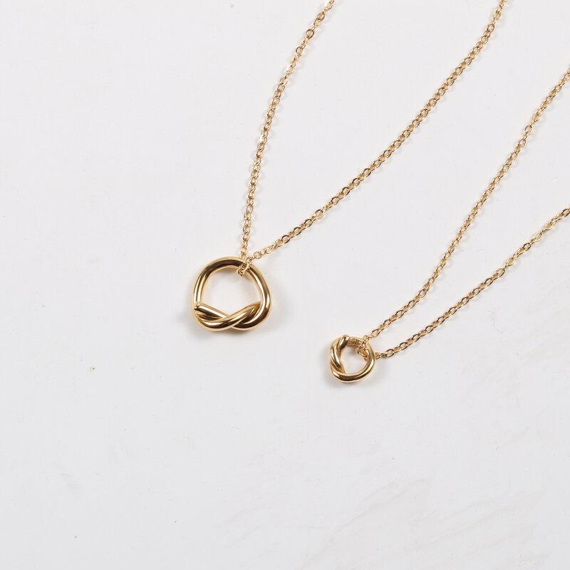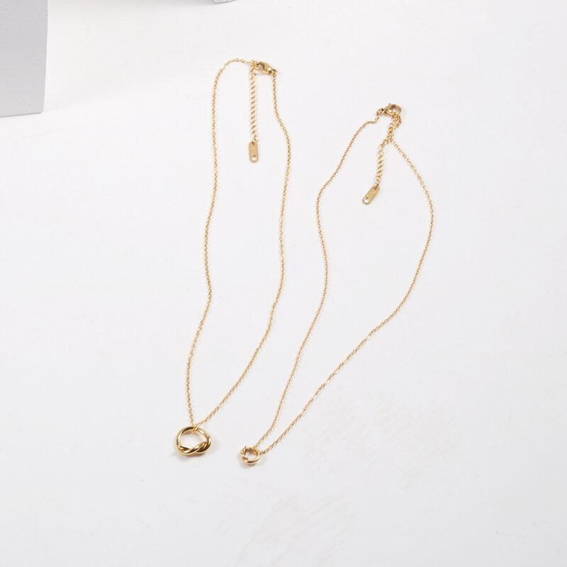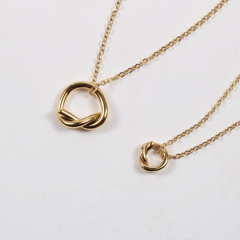 Collar de diseño clásico, cadena de clavícula de diseñador francés, acero de titanio chapado en oro de 18 quilates anudado.