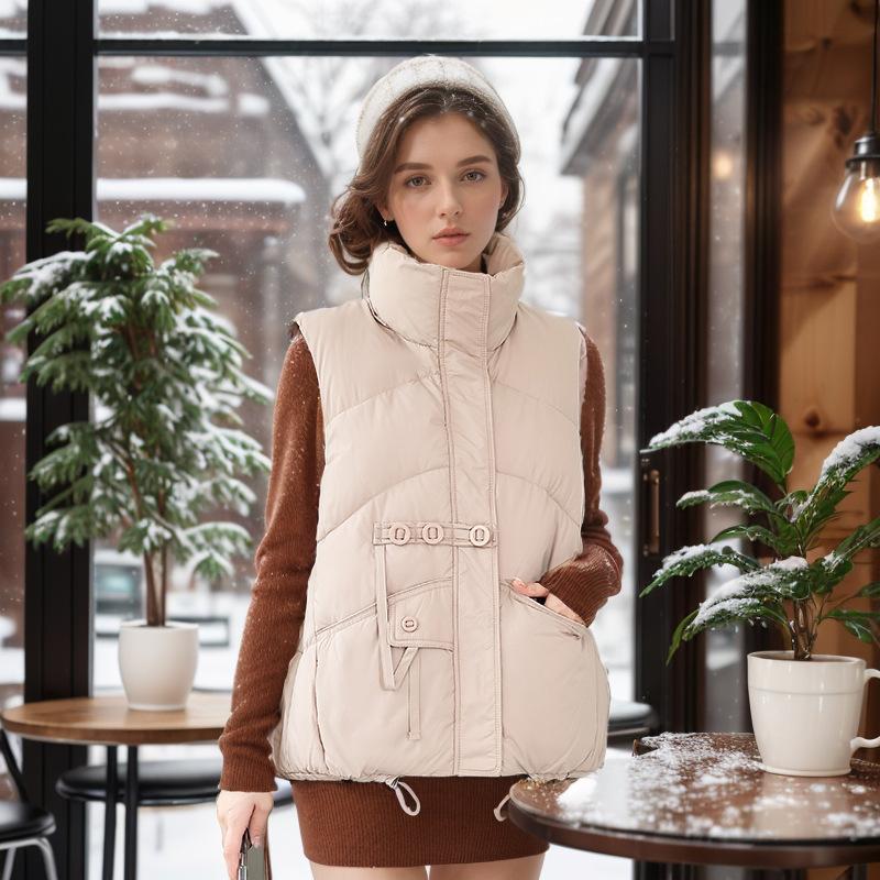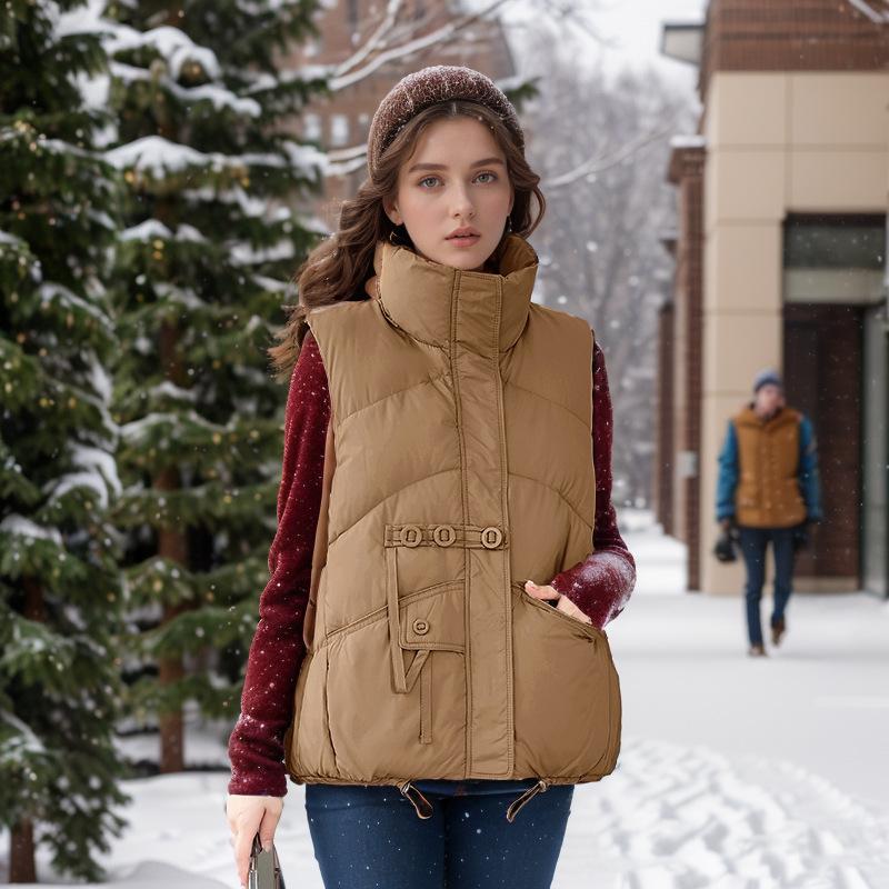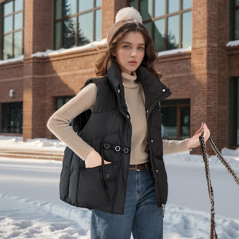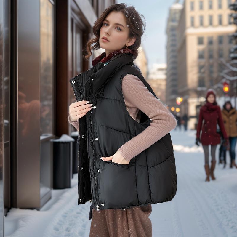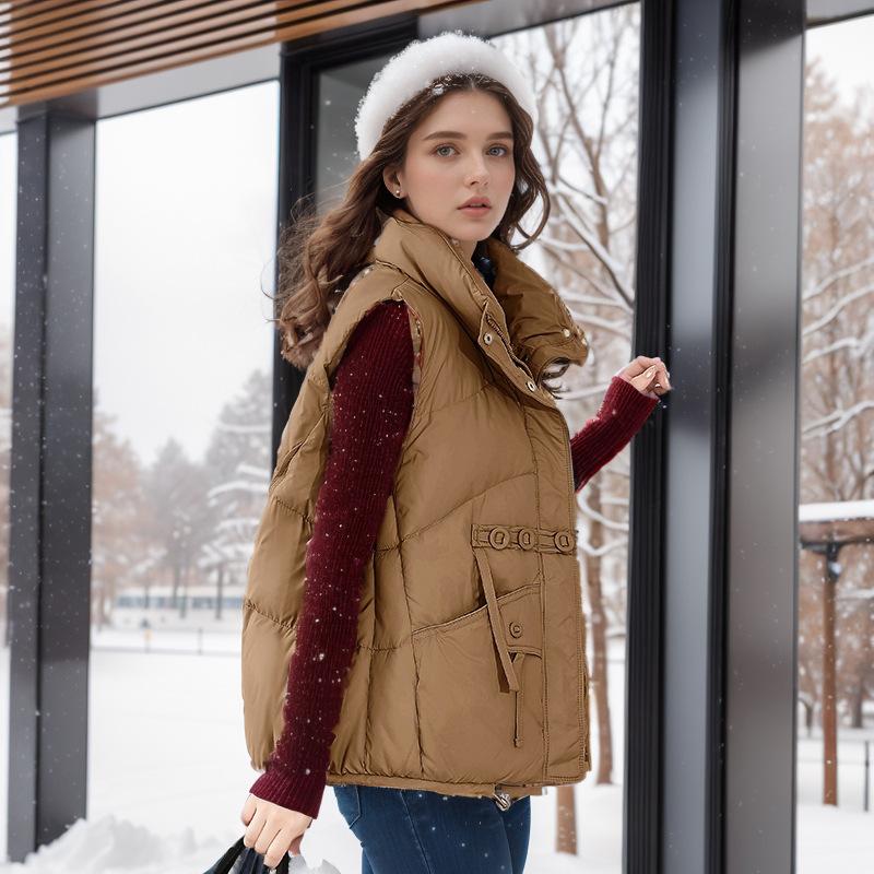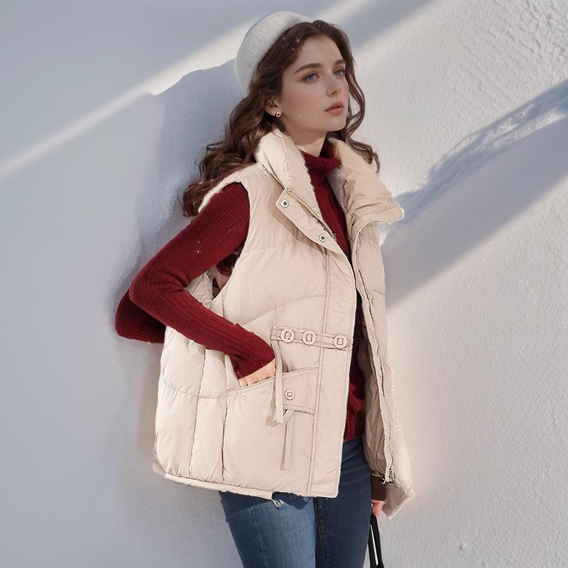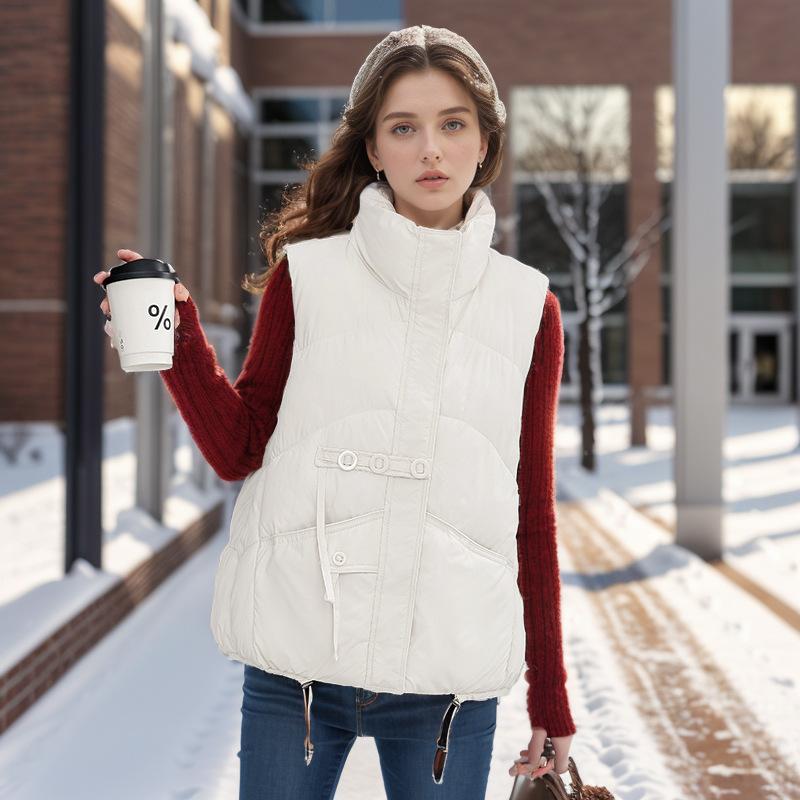 Chaleco de algodón de plumón transfronterizo europeo y americano para mujer, nuevo chaleco corto estilo coreano 2024, chaqueta acolchada de algodón sin mangas para mujer