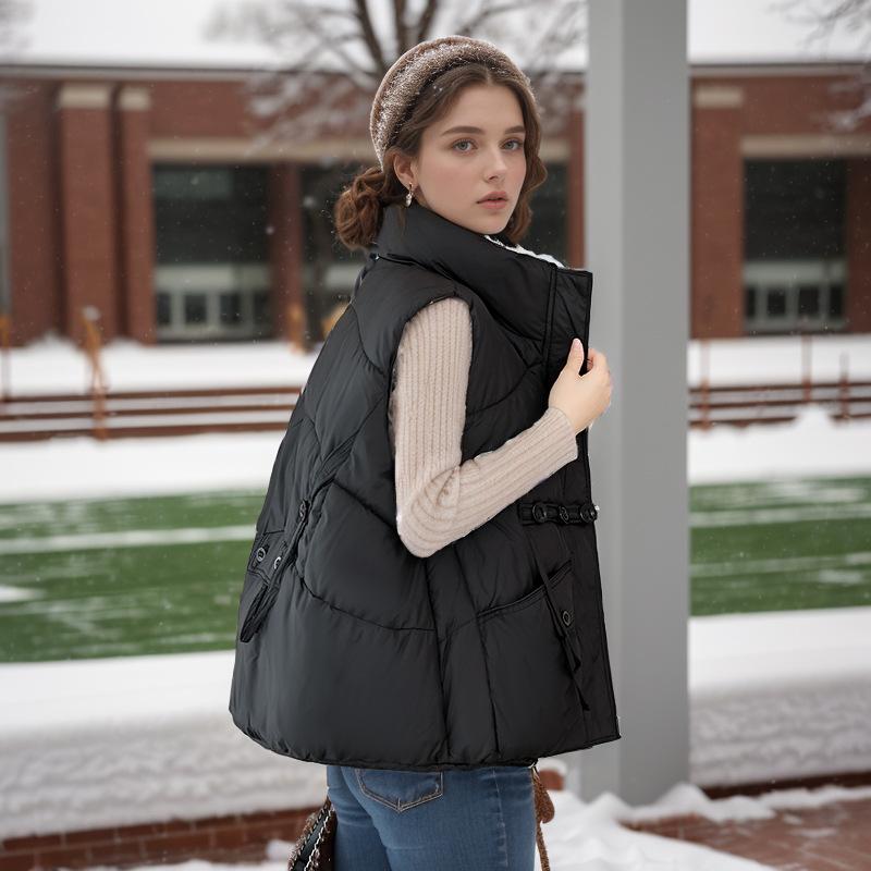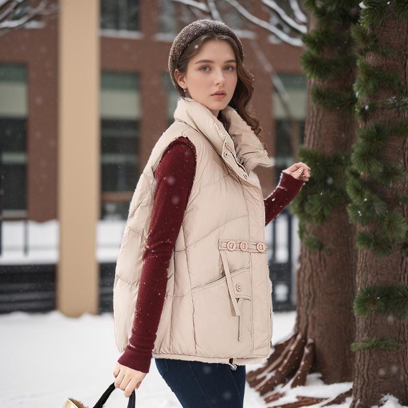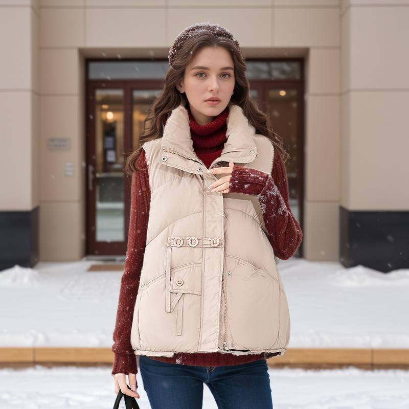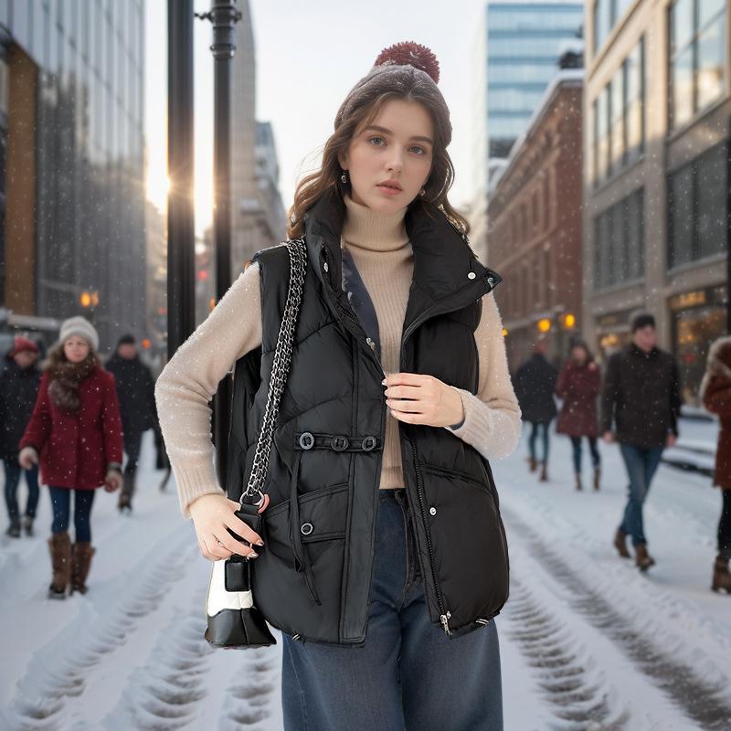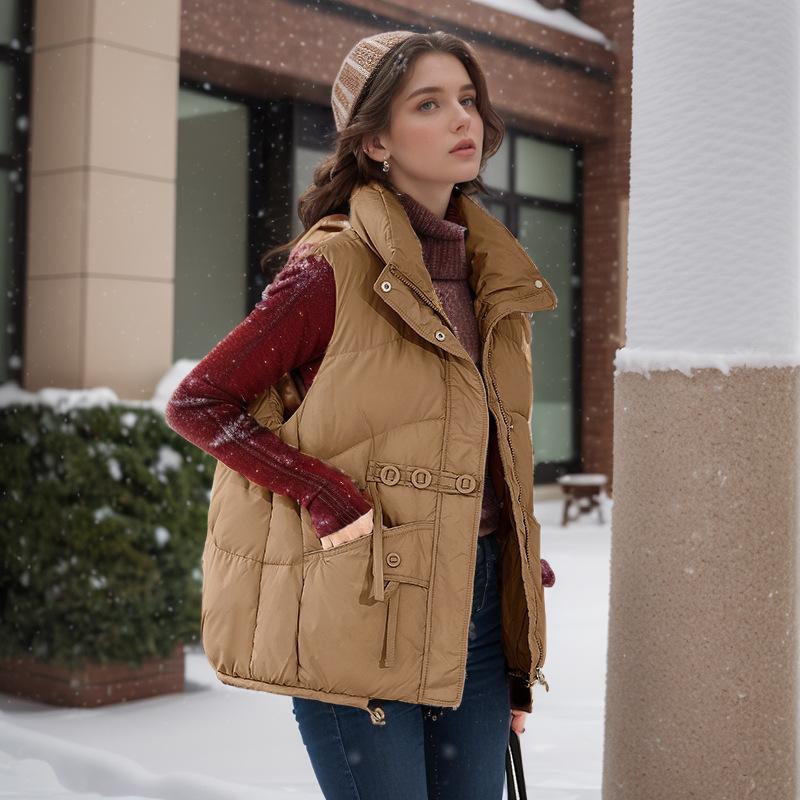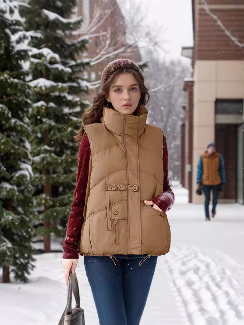 Chaleco de algodón de plumón transfronterizo europeo y americano para mujer, nuevo chaleco corto estilo coreano 2024, chaqueta acolchada de algodón sin mangas para mujer