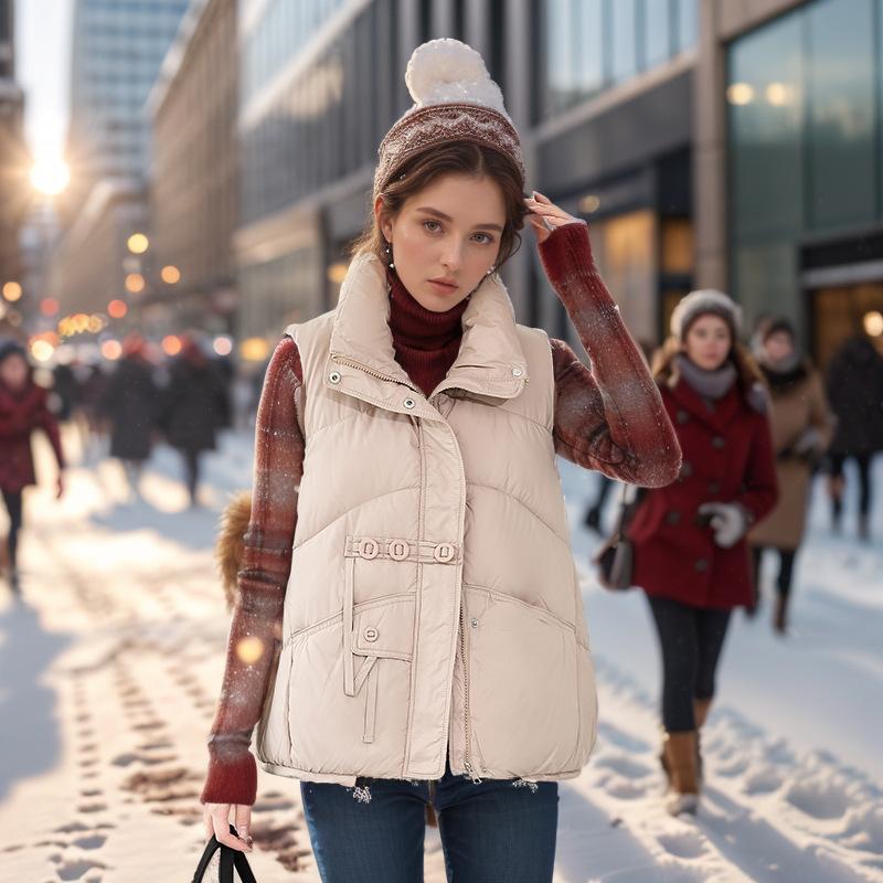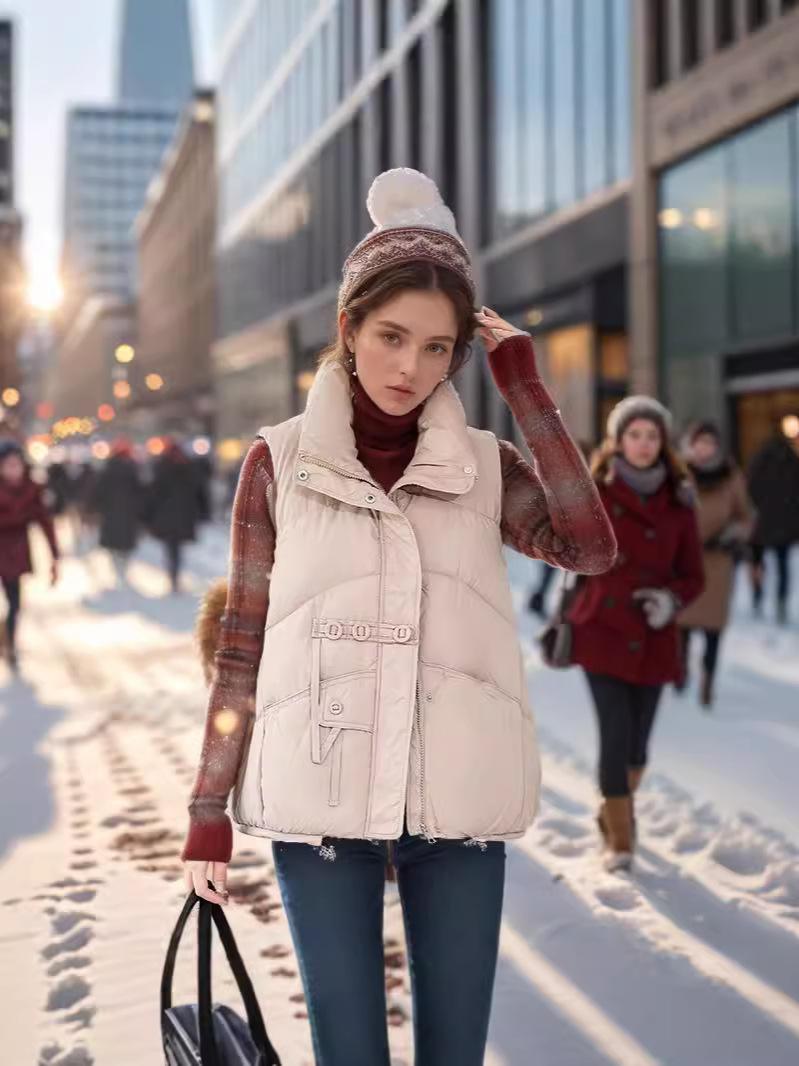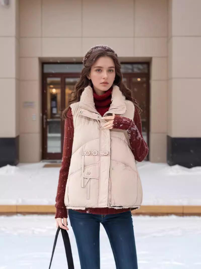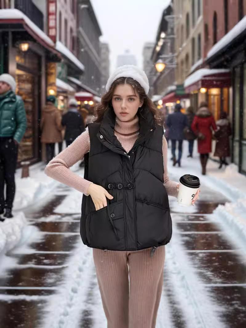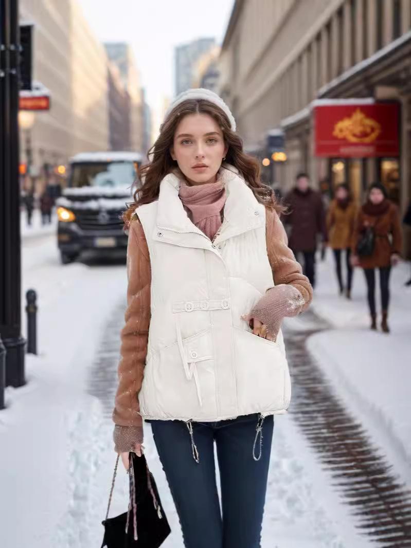 Chaleco de algodón de plumón transfronterizo europeo y americano para mujer, nuevo chaleco corto estilo coreano 2024, chaqueta acolchada de algodón sin mangas para mujer