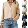 Amazon transfronterizo TEMU nuevo top de manga larga para mujer otoño e invierno con tres botones, camiseta sencilla de moda con cuello en V