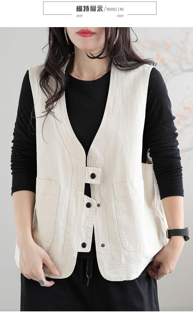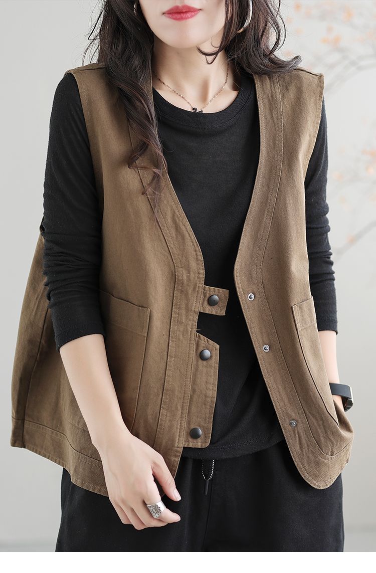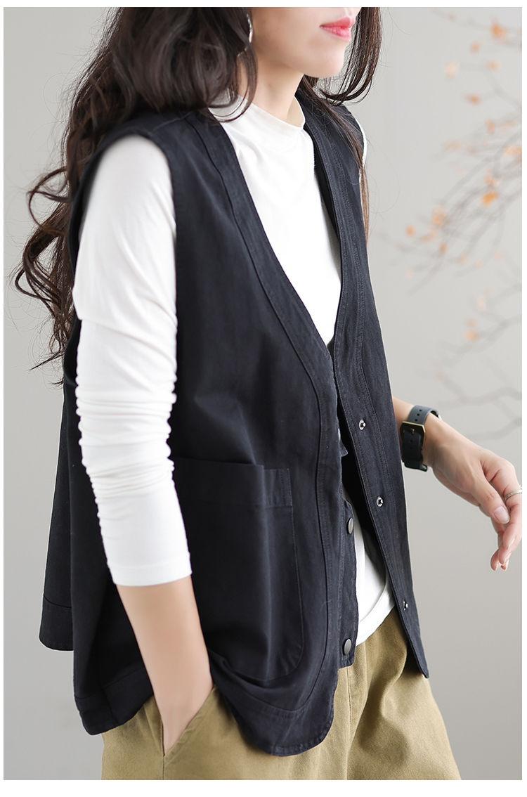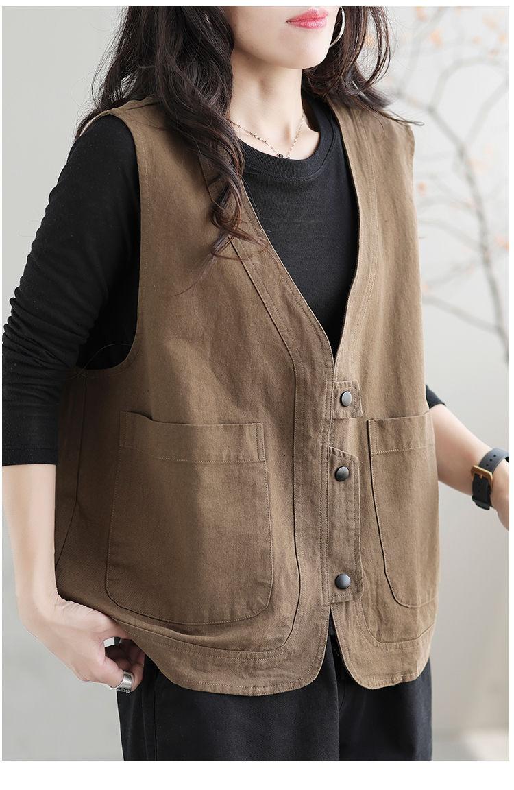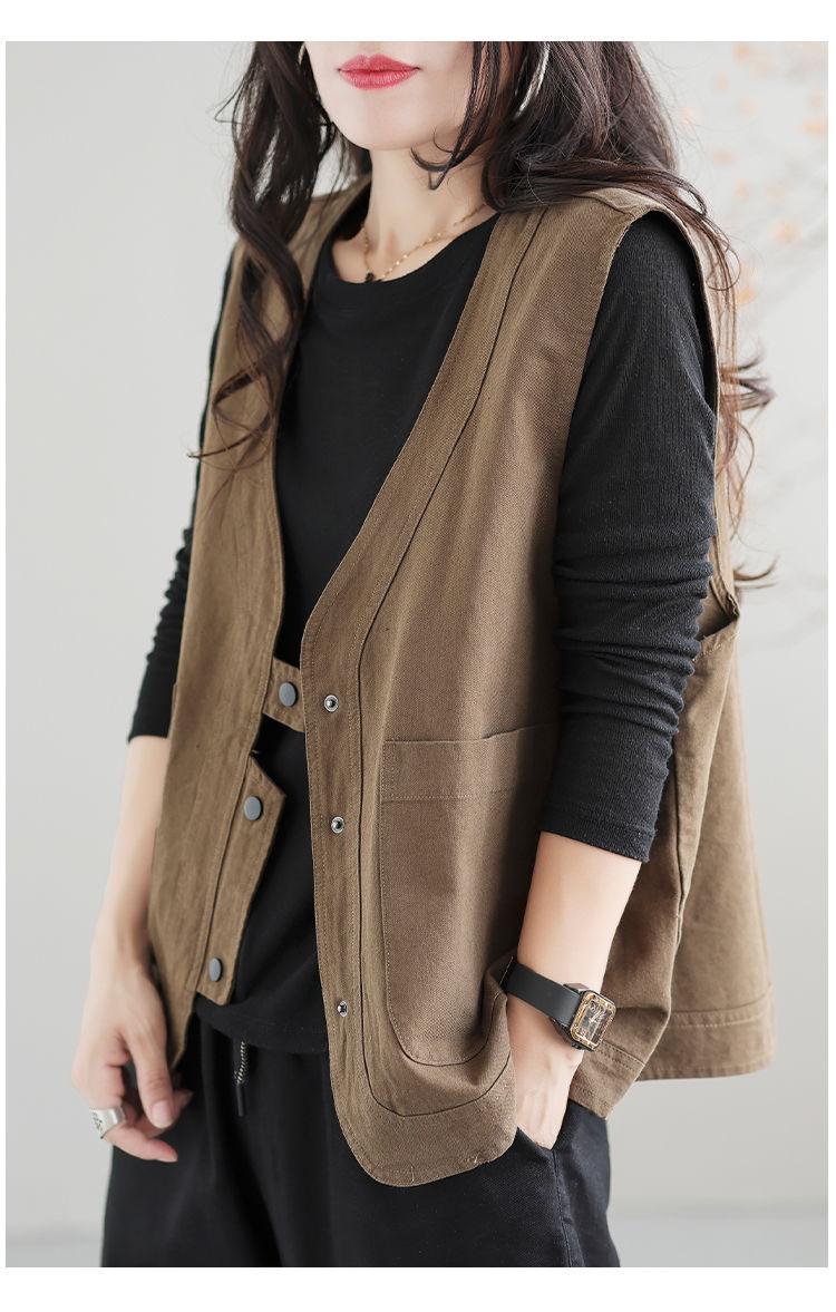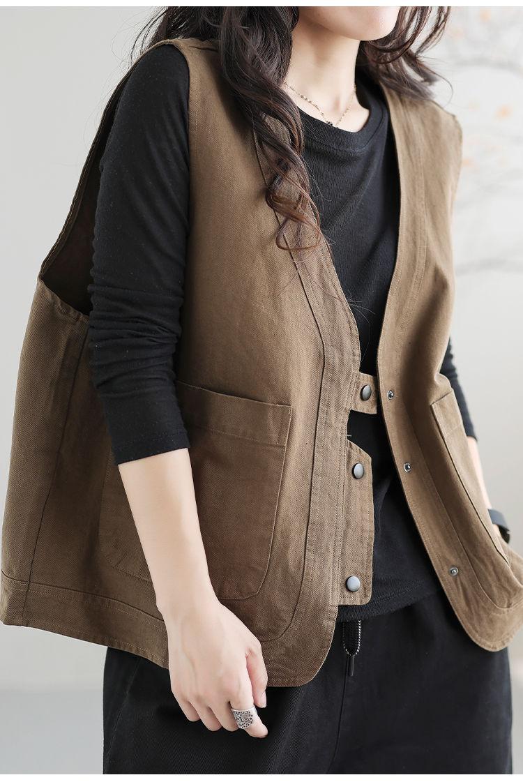 Chaleco de trabajo retro literario japonés de exportación de comercio exterior transfronterizo, chaleco holgado y ajustado con cuello en V para mujer