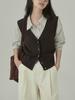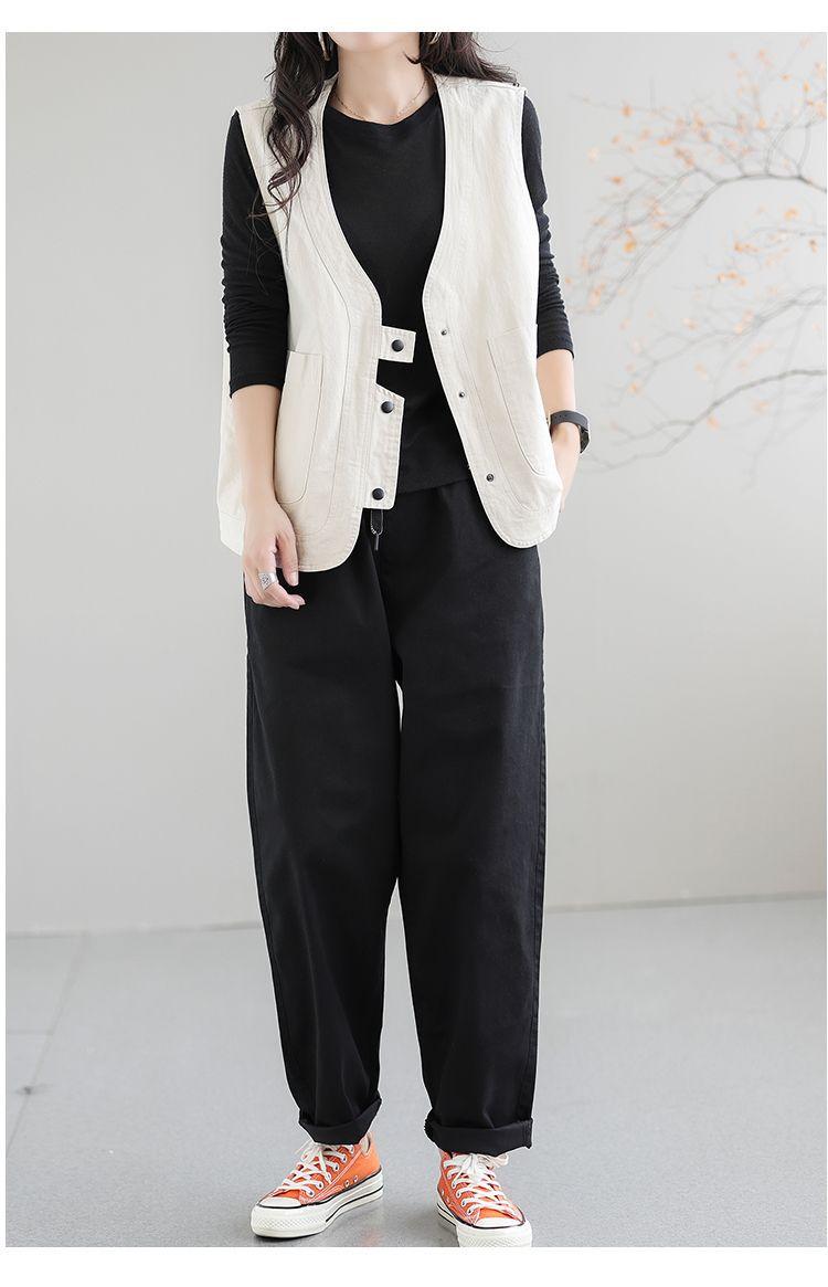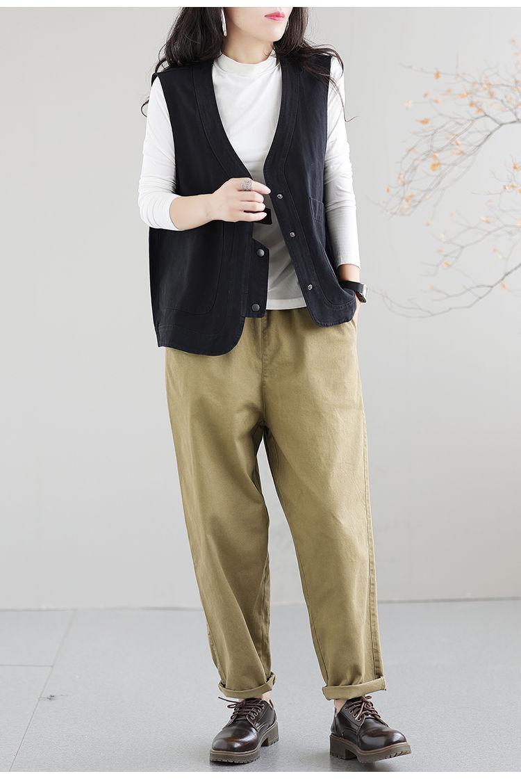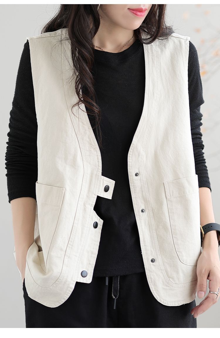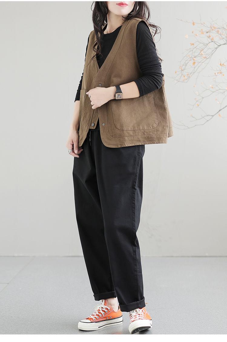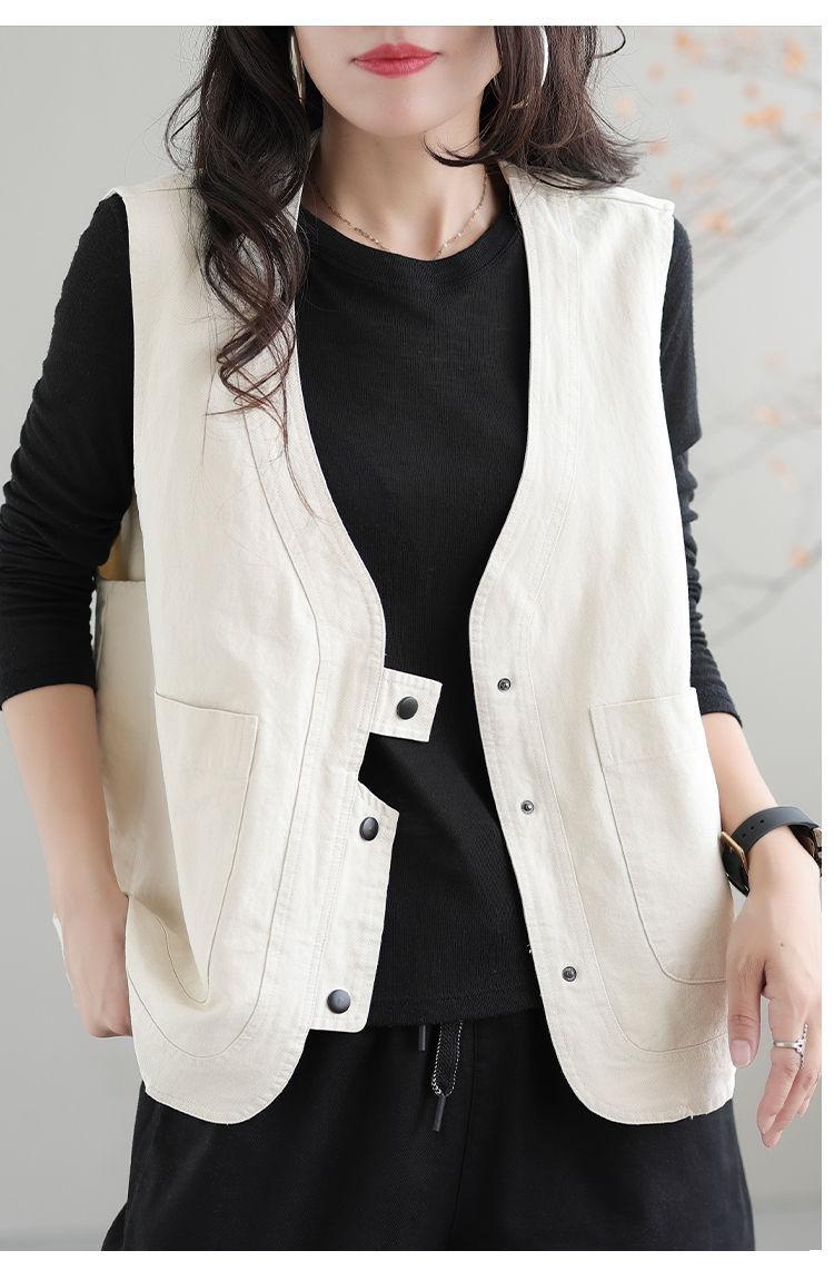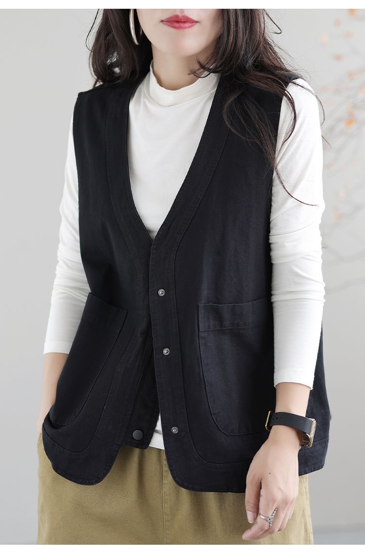 Chaleco de trabajo retro literario japonés de exportación de comercio exterior transfronterizo, chaleco holgado y ajustado con cuello en V para mujer