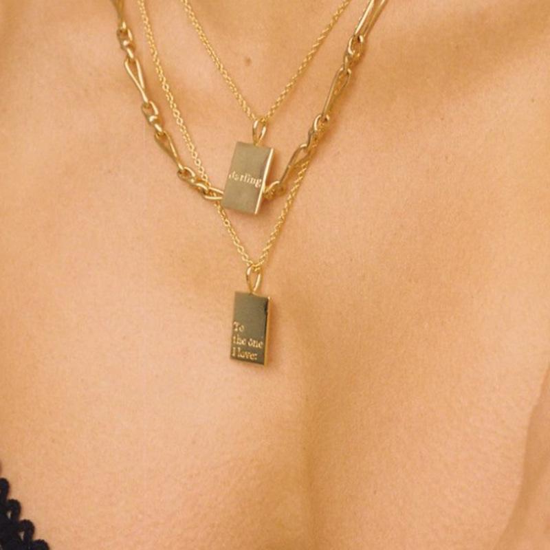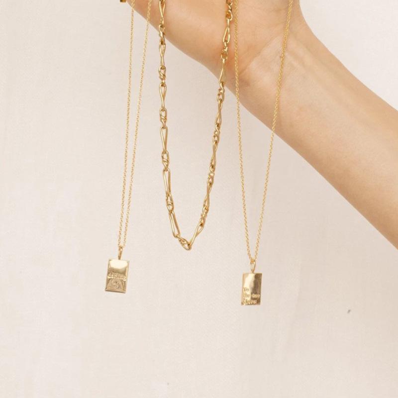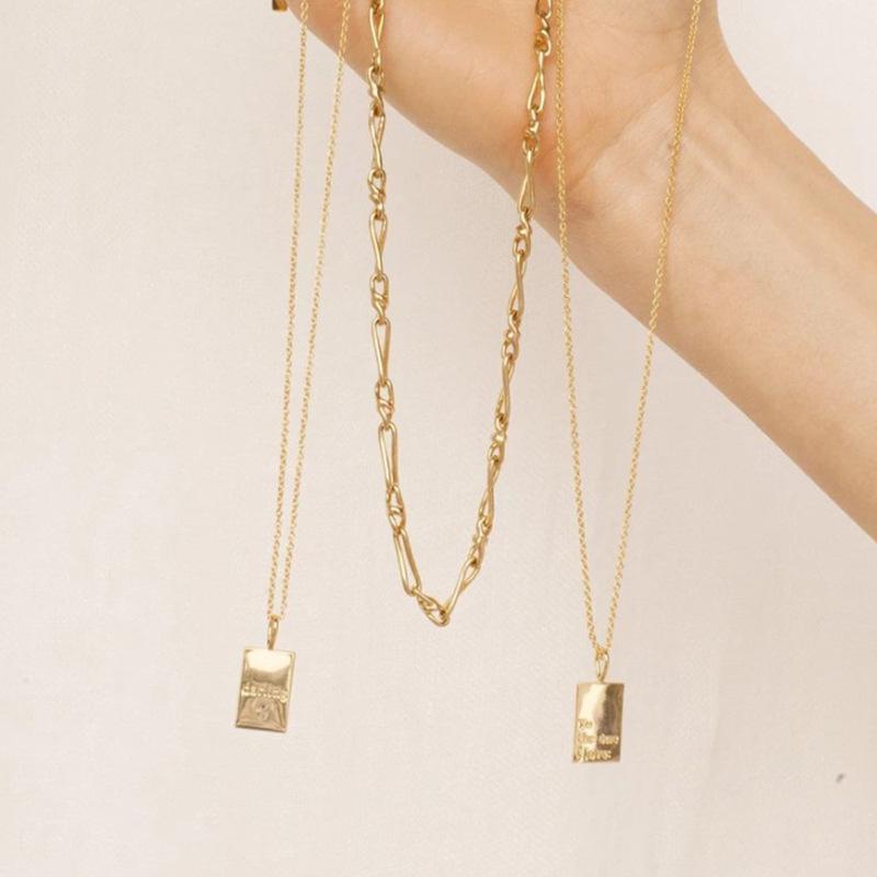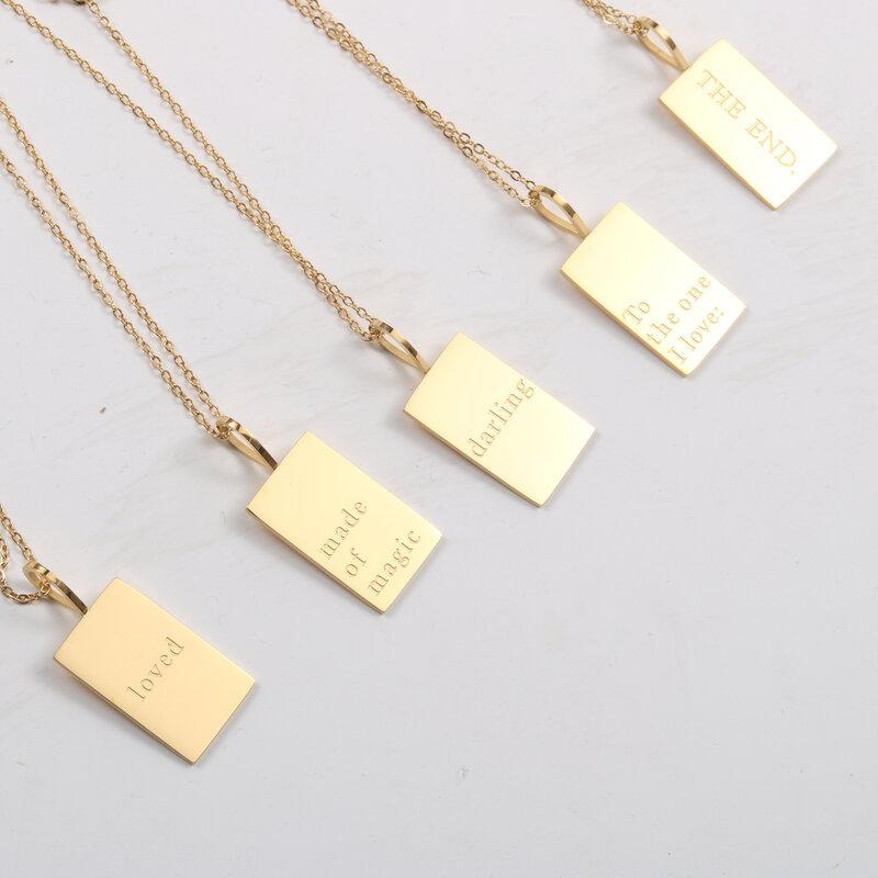 Collar con colgante de acero de titanio con letras de la marca Tag Square, cadena de oro galvanizado, longitud 40,5 cm, colgante de 3 x 1,3 cm.