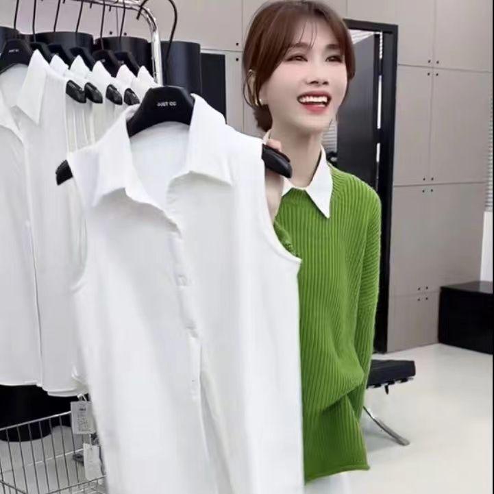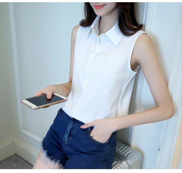 Camisa de estilo coreano para primavera y verano, nueva, para negocios, chaleco sin mangas, camisa de color sólido que combina con todo, camisa de otoño, camisa con base LED
