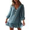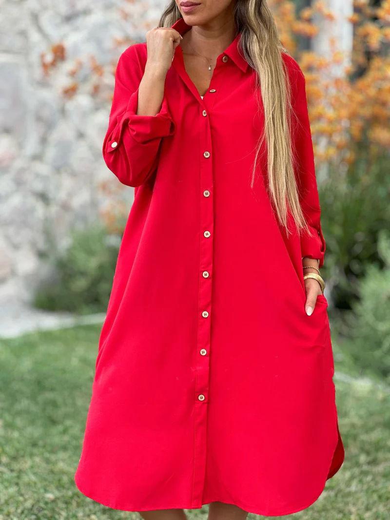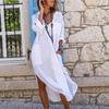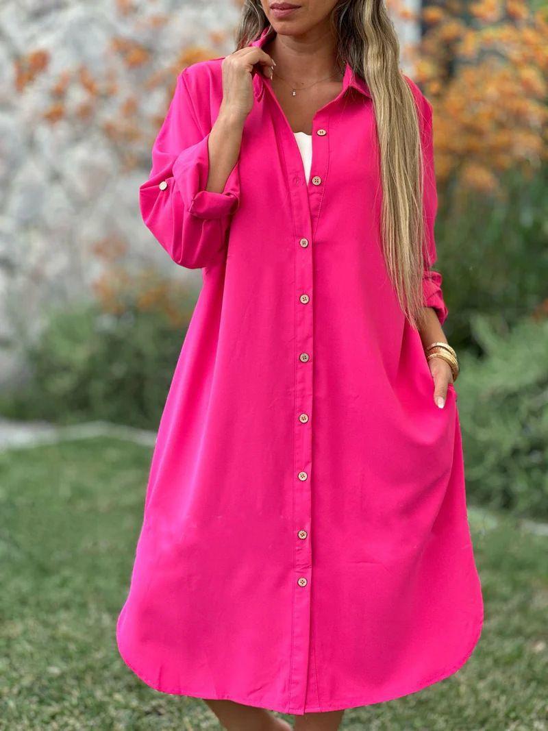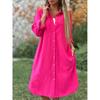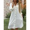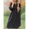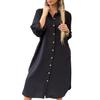 Vestido camisero informal holgado de manga larga con botones para mujer, de algodón y lino, de color liso, para primavera y otoño, de Amazon, Europa y América, transfronterizo