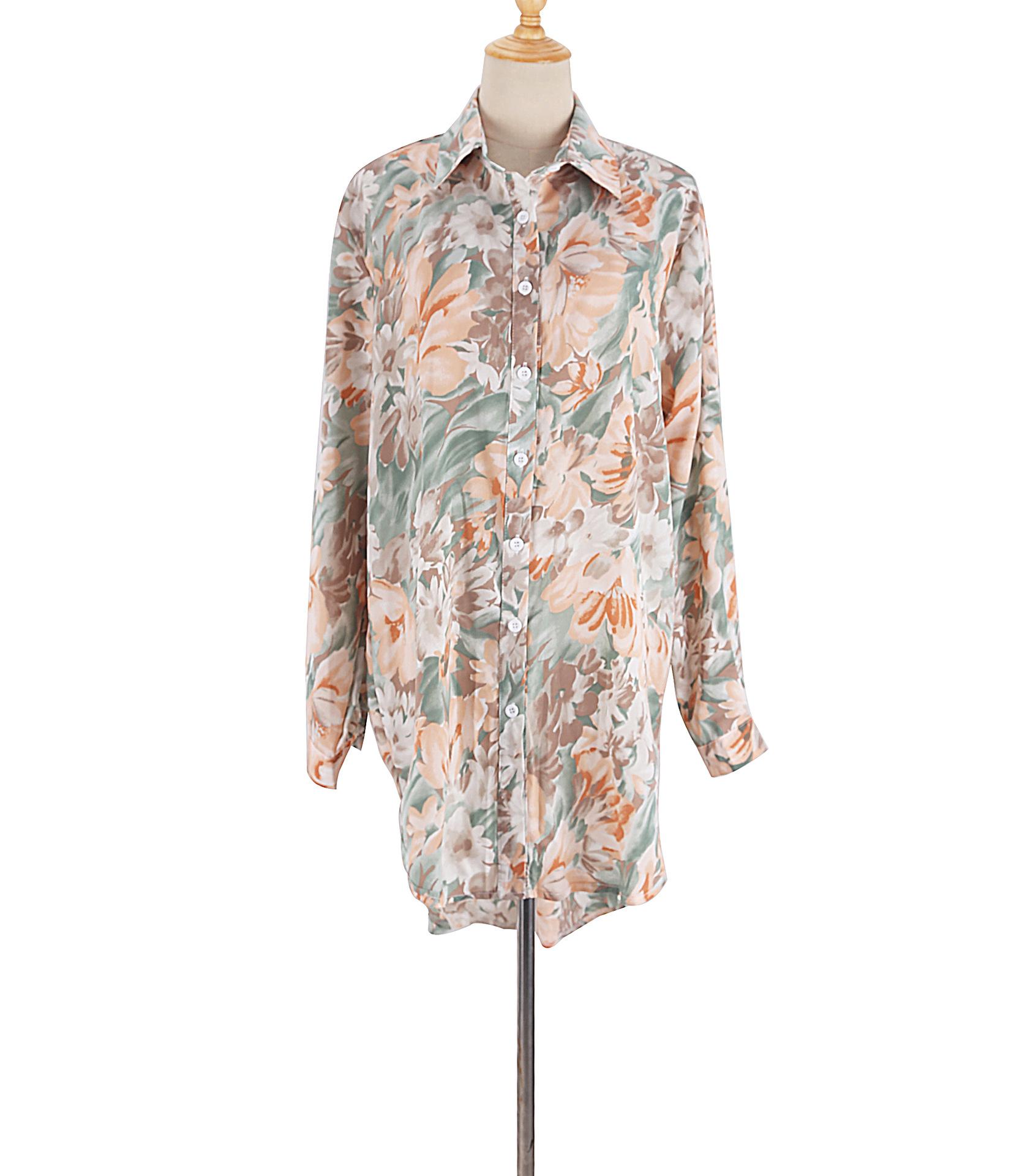 Blusa con estampado de nuevo posicionamiento europeo y americano, falda larga para vacaciones en la playa, blusa holgada, traje de baño, bata, ropa exterior para mujer