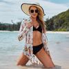 Blusa de algodón estampada nueva europea y americana, falda larga para vacaciones en la playa, traje de baño de bikini holgado, bata, ropa exterior para mujer