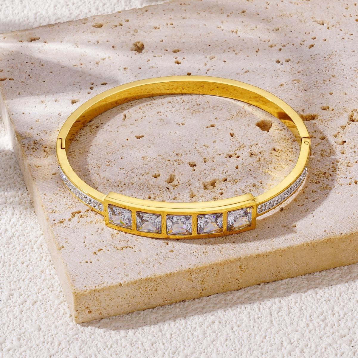 Pulsera retro de acero de titanio estilo INS transfronterizo de Europa y Estados Unidos, pulsera de moda para damas, sentido de diseño de nicho, oro de 18k, acero inoxidable