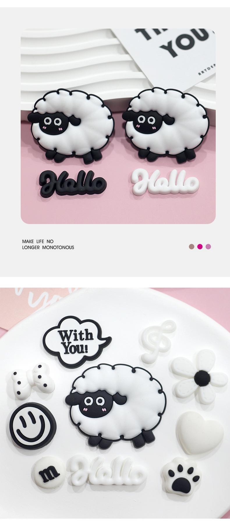 Bonita ovejita de PVC suave con dibujos animados para teléfono móvil, pegatina para refrigerador, taza de agua, estéreo, accesorios para hacer zapatillas con agujeros y hebillas