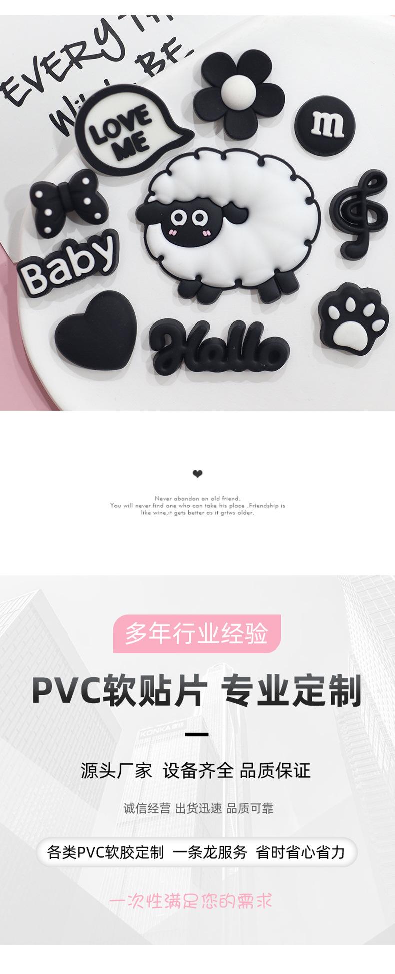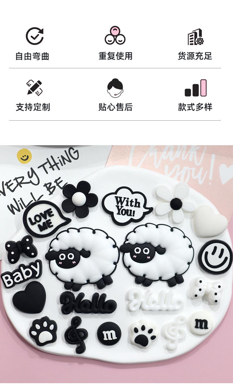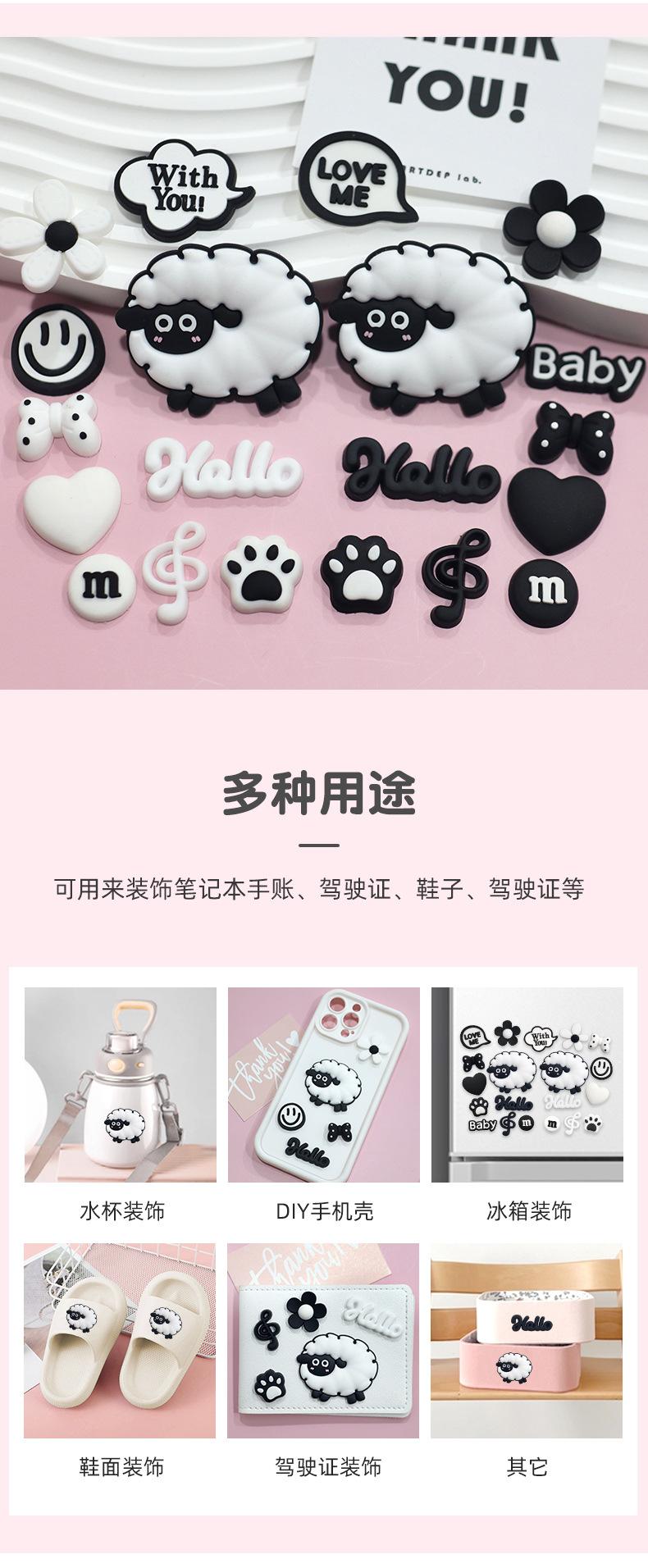Soft glue: sheep [4.2*5cm]], Soft rubber: BABY [1.3*3cm]], Soft rubber: black footprints "2*2cm], Soft rubber:...