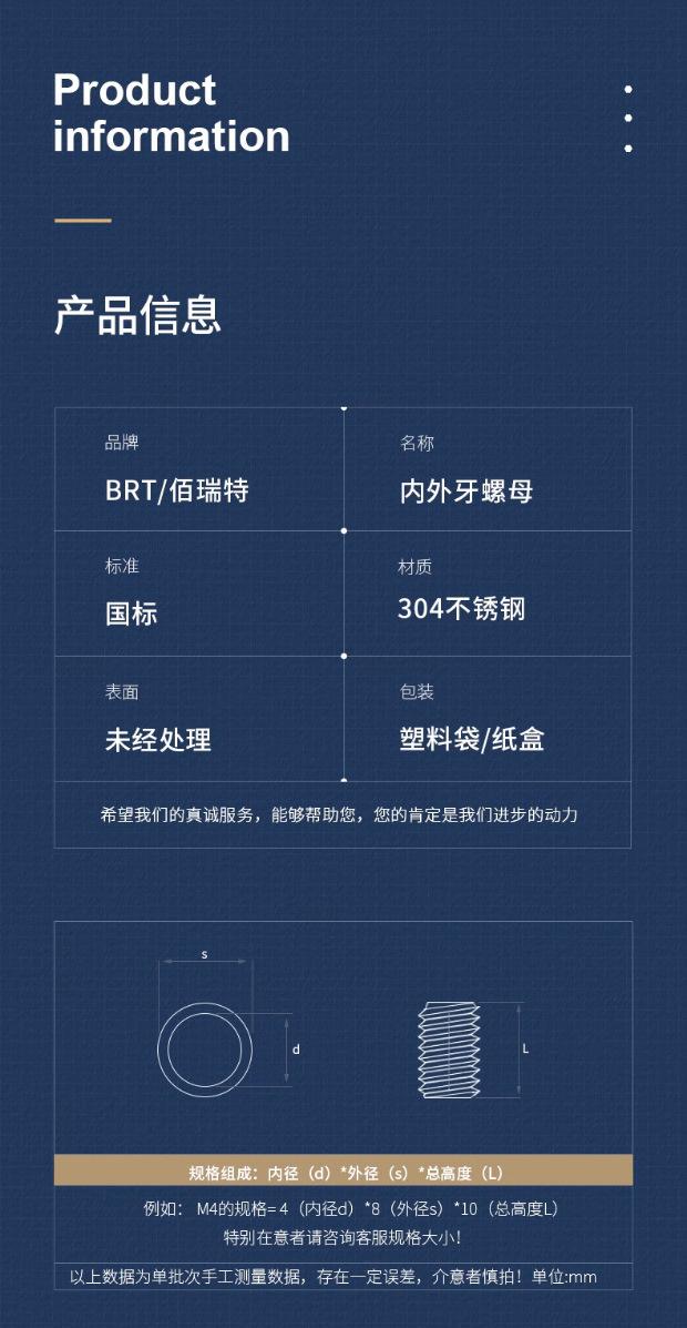 Acero inoxidable 304 tuerca de dientes internos y externos manguito adaptador de rosca recta pasante cabeza de tornillo funda M2M3M4M5M6M10M12