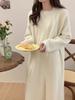 Abrigo Casual de Estilo Transfronterizo para Mujer 2025 Otoño Nuevo Cárdigan de Punto Holgado con Cuello en V Suéter para Mujer de Largo Medio hasta la Rodilla