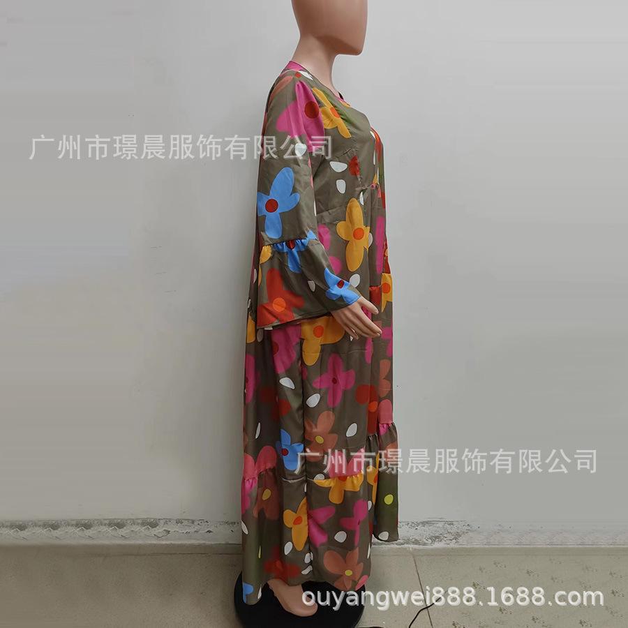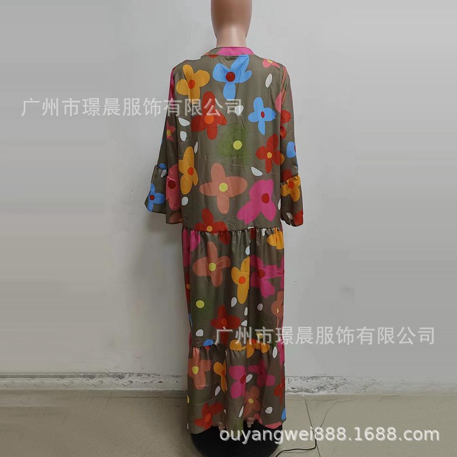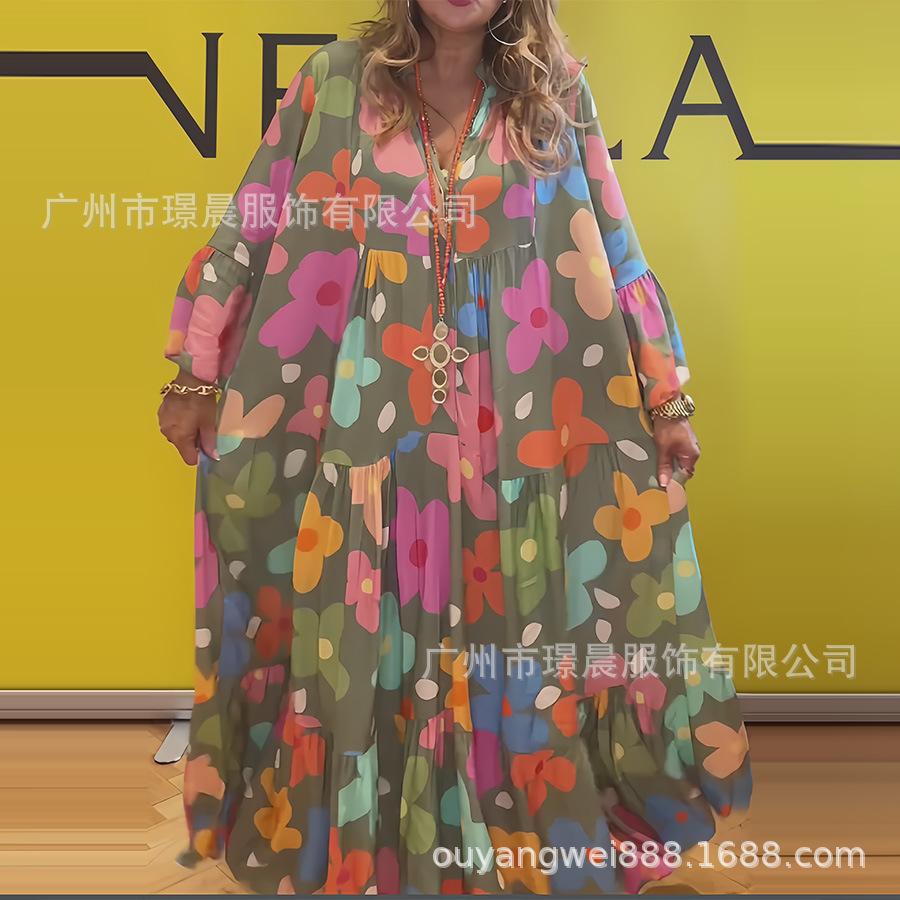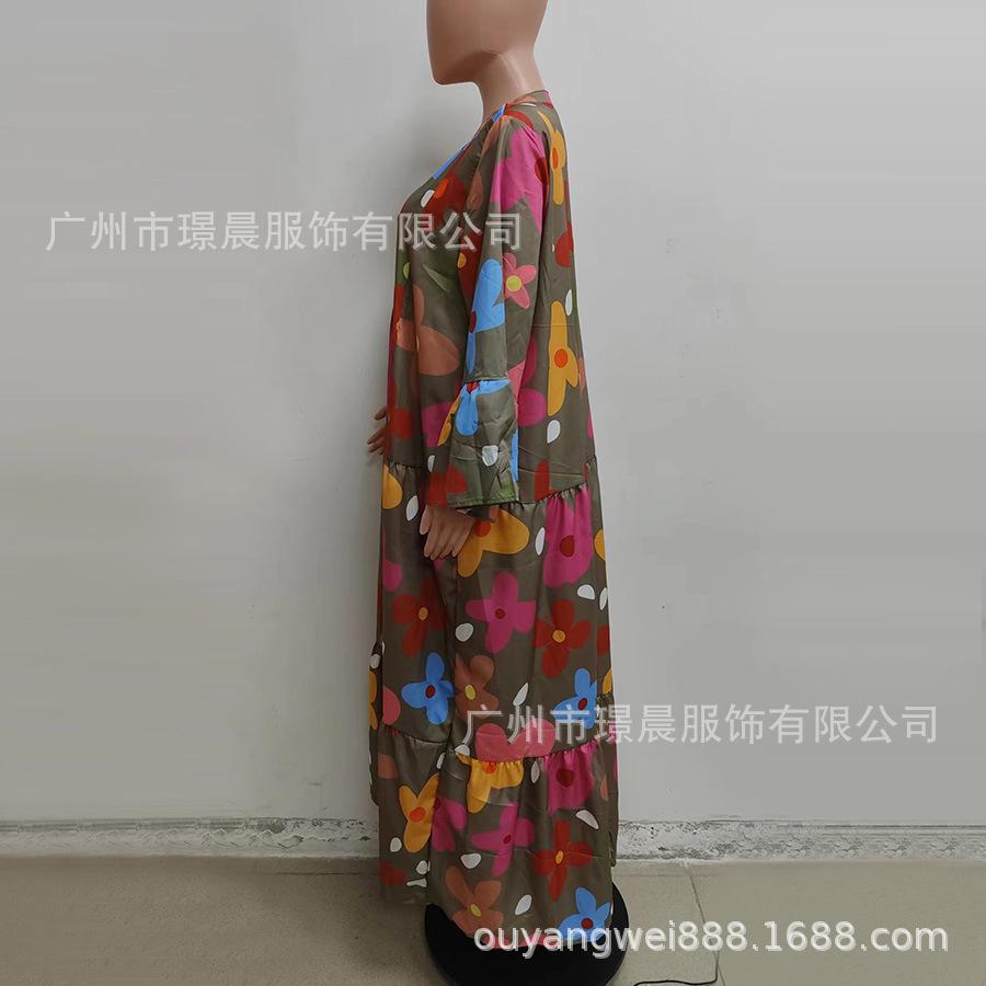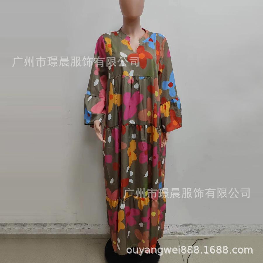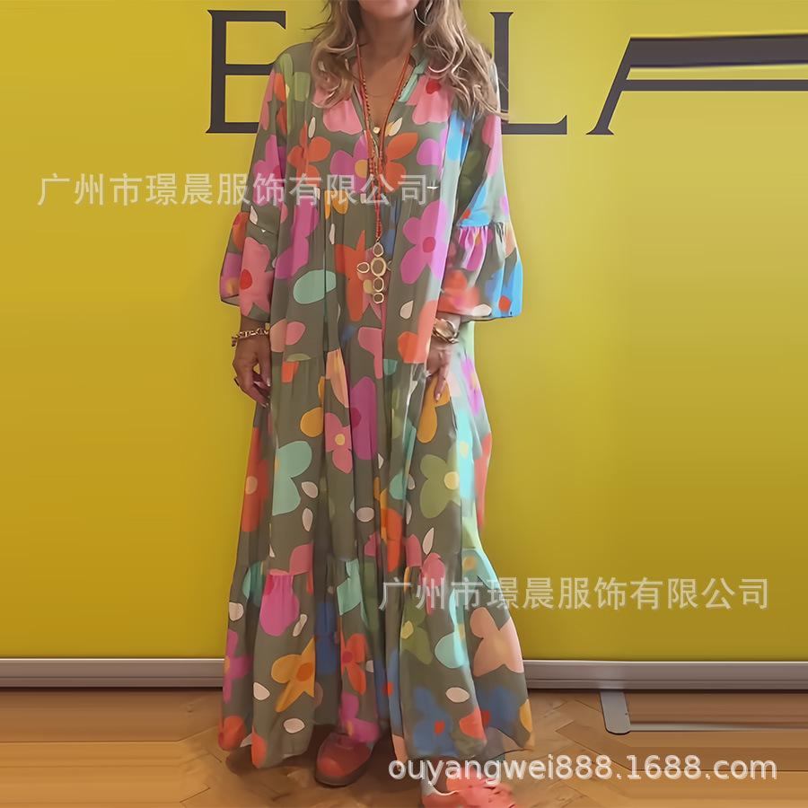 Vestido holgado estampado de verano 2024 de Amazon, moda de comercio exterior transfronterizo, vestido de manga larga para mujer