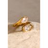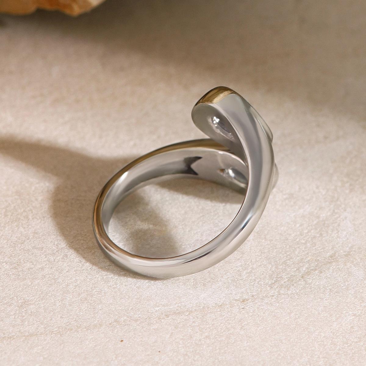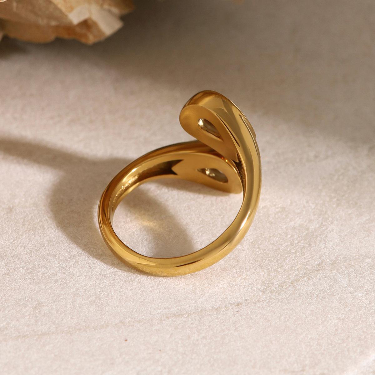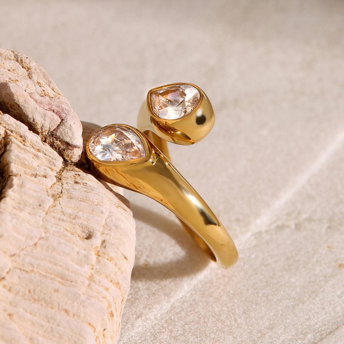 Anillo de acero inoxidable con circonitas en oro de 18 quilates, estilo europeo y americano, con forma de gota asimétrica, sencillo y abierto, de titanio y acero.